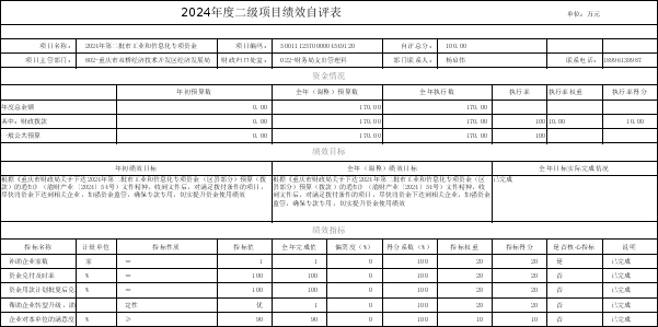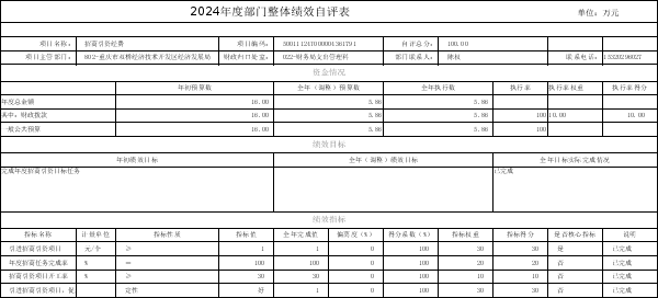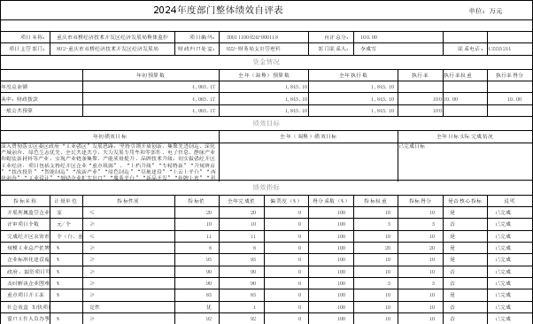 我部门对从评价情况来看,我局对2024年第二批市工业和信息化专项资金,后勤保障服务费,服务企业专项费用,国家级经开区申报、项目咨询及能耗评审费,2024年第一批市工业和信息化专项资金,优化营商环境费用,工业企业统计及标准化建设费用,创文、创卫经费,拨付与清算2023年中央中小企业发展专项资金第四批),企业安全环保专项费用,重点项目管理费用,2024年招商引资费用,论坛、会展等经费,项目咨询及能耗评审等费用,2024 宣传经费等支出16个项目开展了绩效评价,涉及财政拨款项目支出资金4065.17万元。各个项目设置的绩效目标指标的年度指标值,均已经全面完成。无自评未完成年度绩效目标的情况。