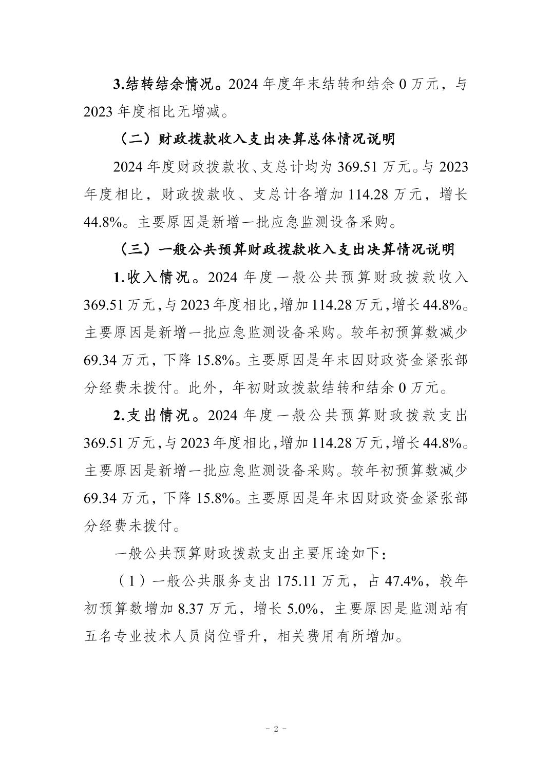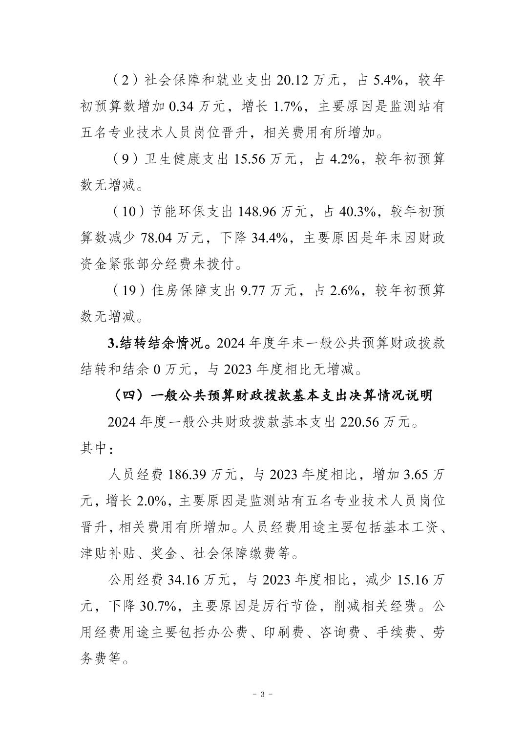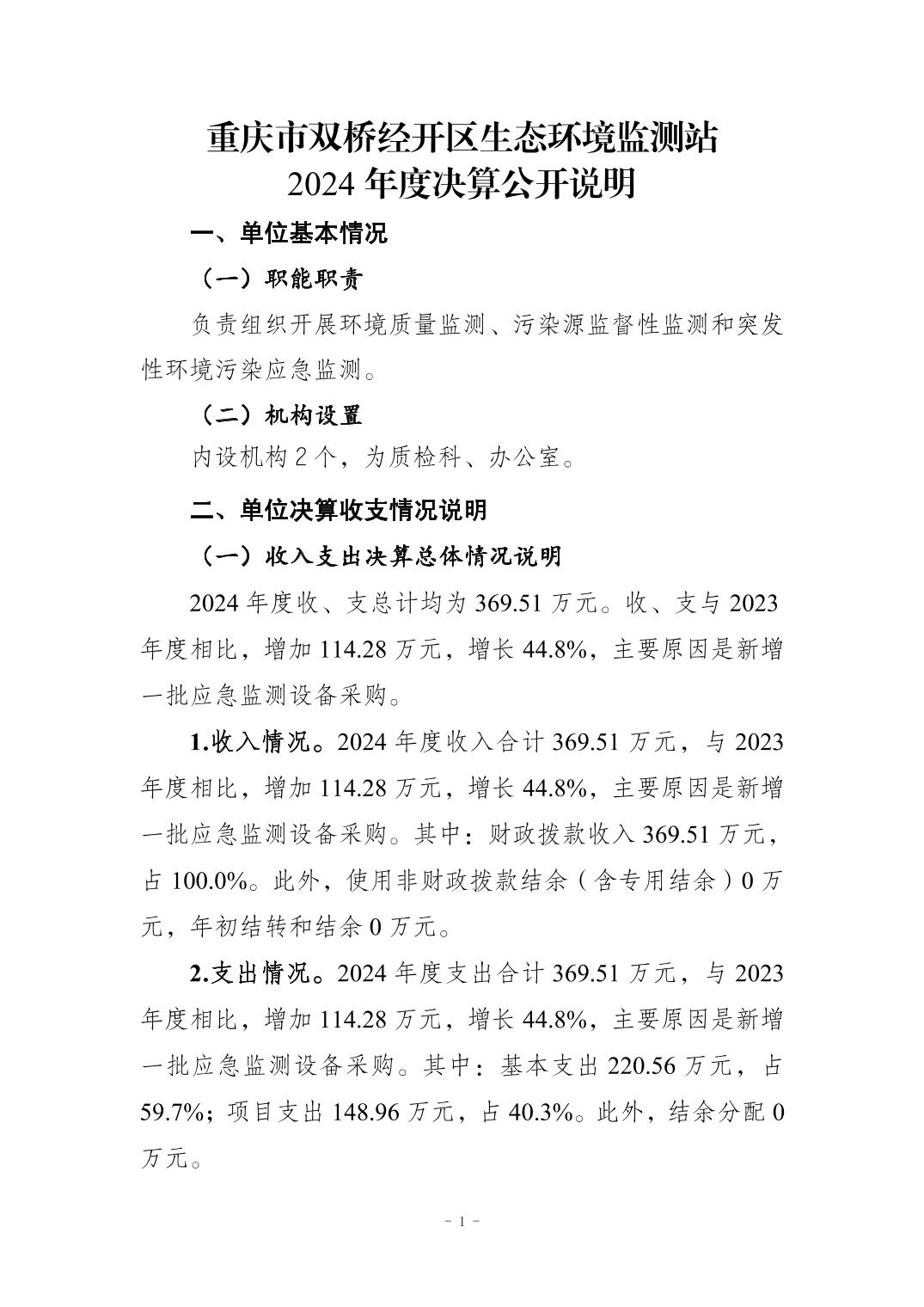 重庆市双桥经开区生态环境监测站2024年度决算公开说明