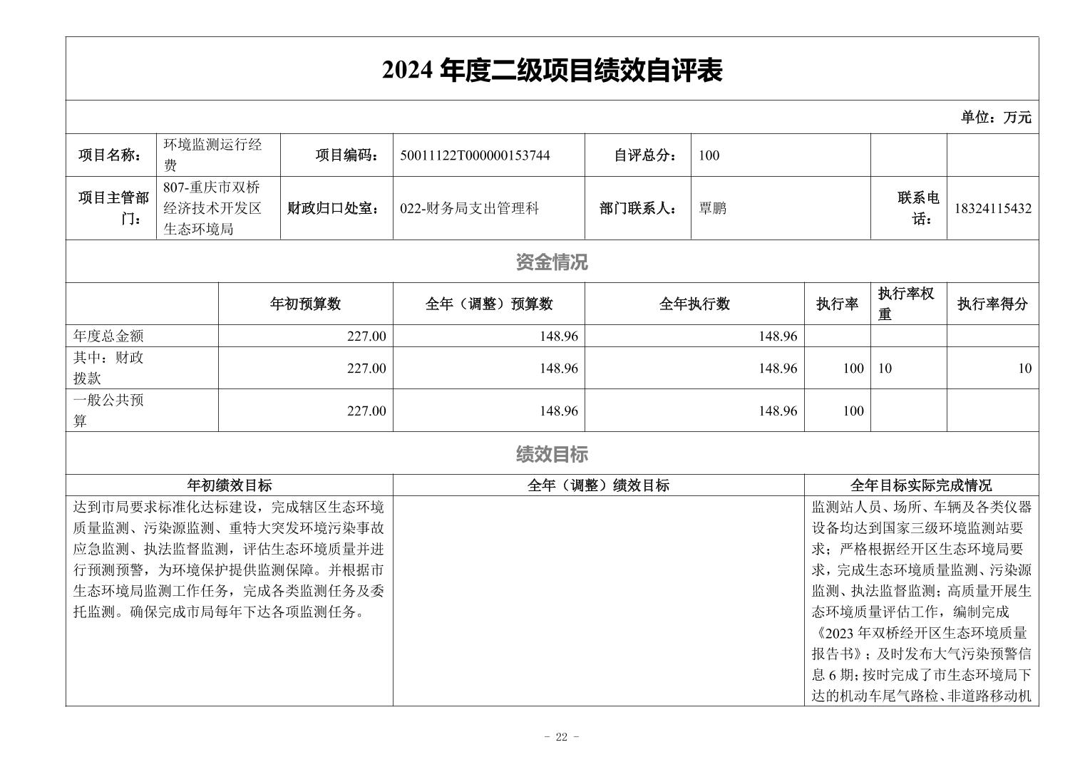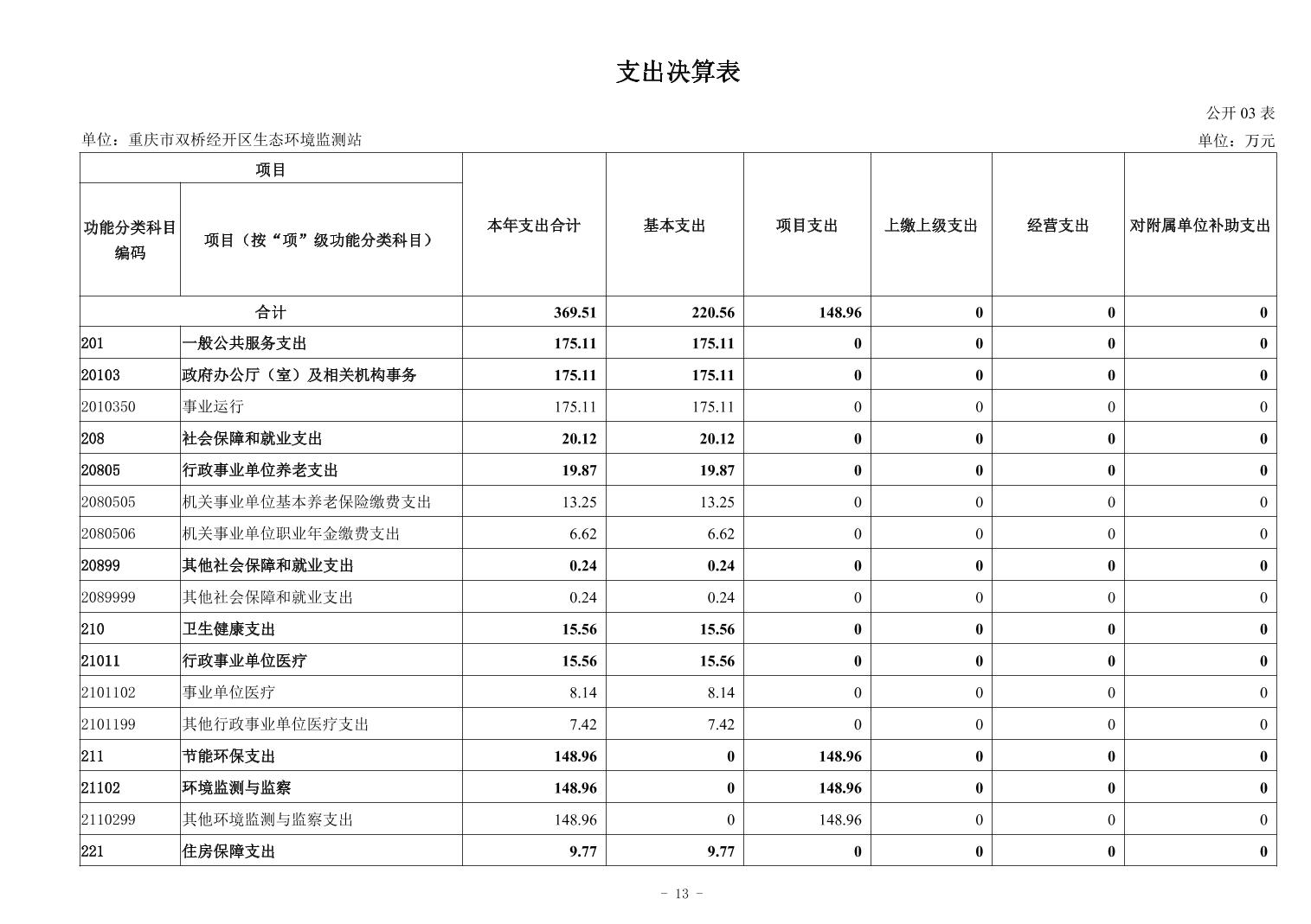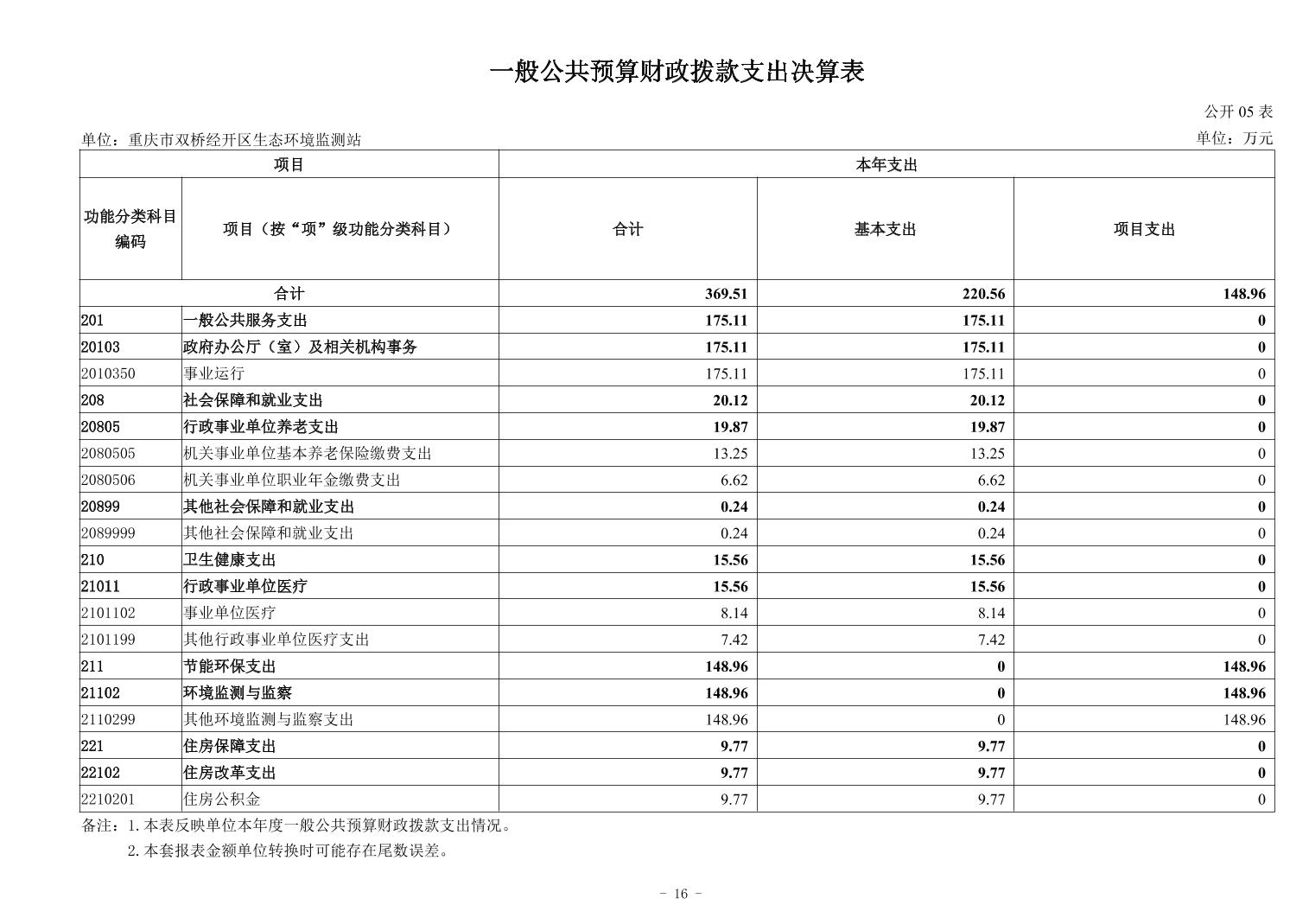 重庆市双桥经开区生态环境监测站2024年度决算公开说明