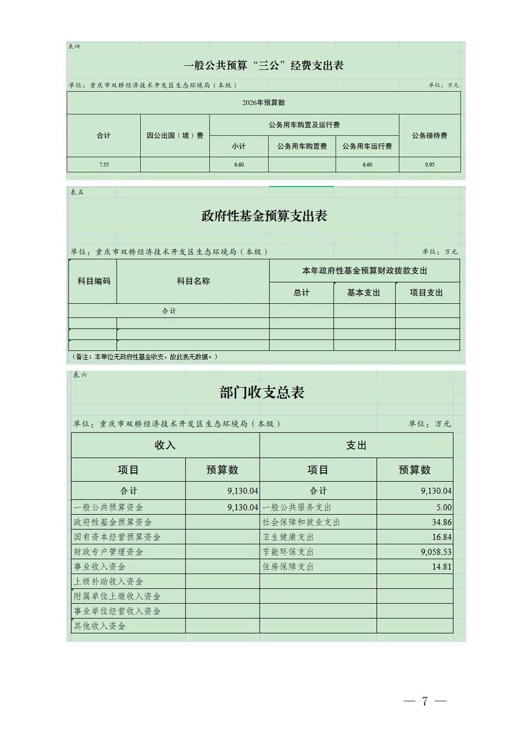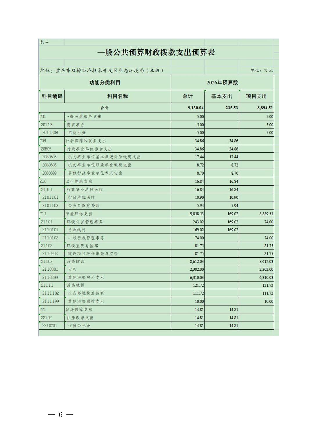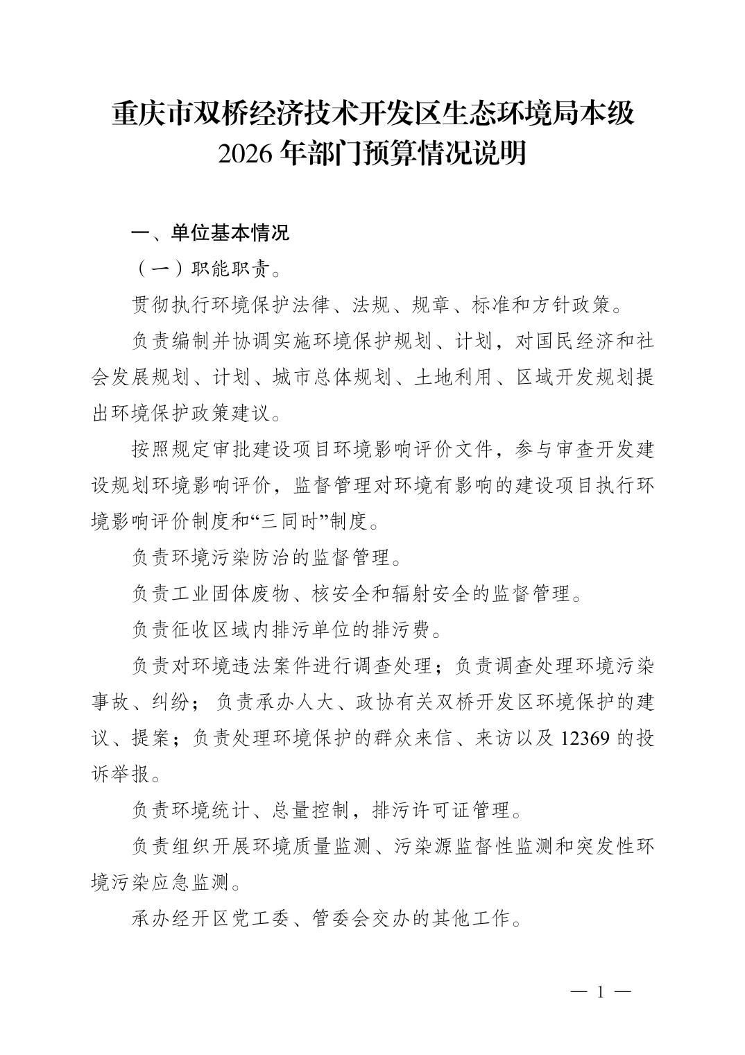重庆市双桥经开区生态环境局本级2026年部门预算情况说明