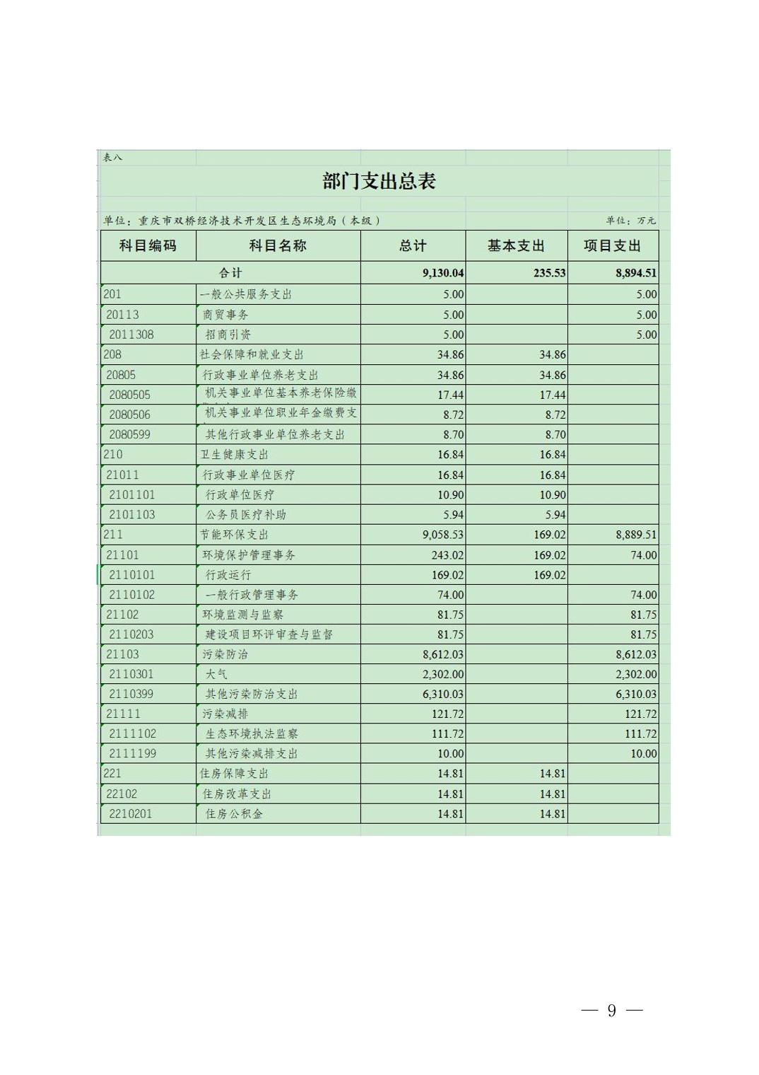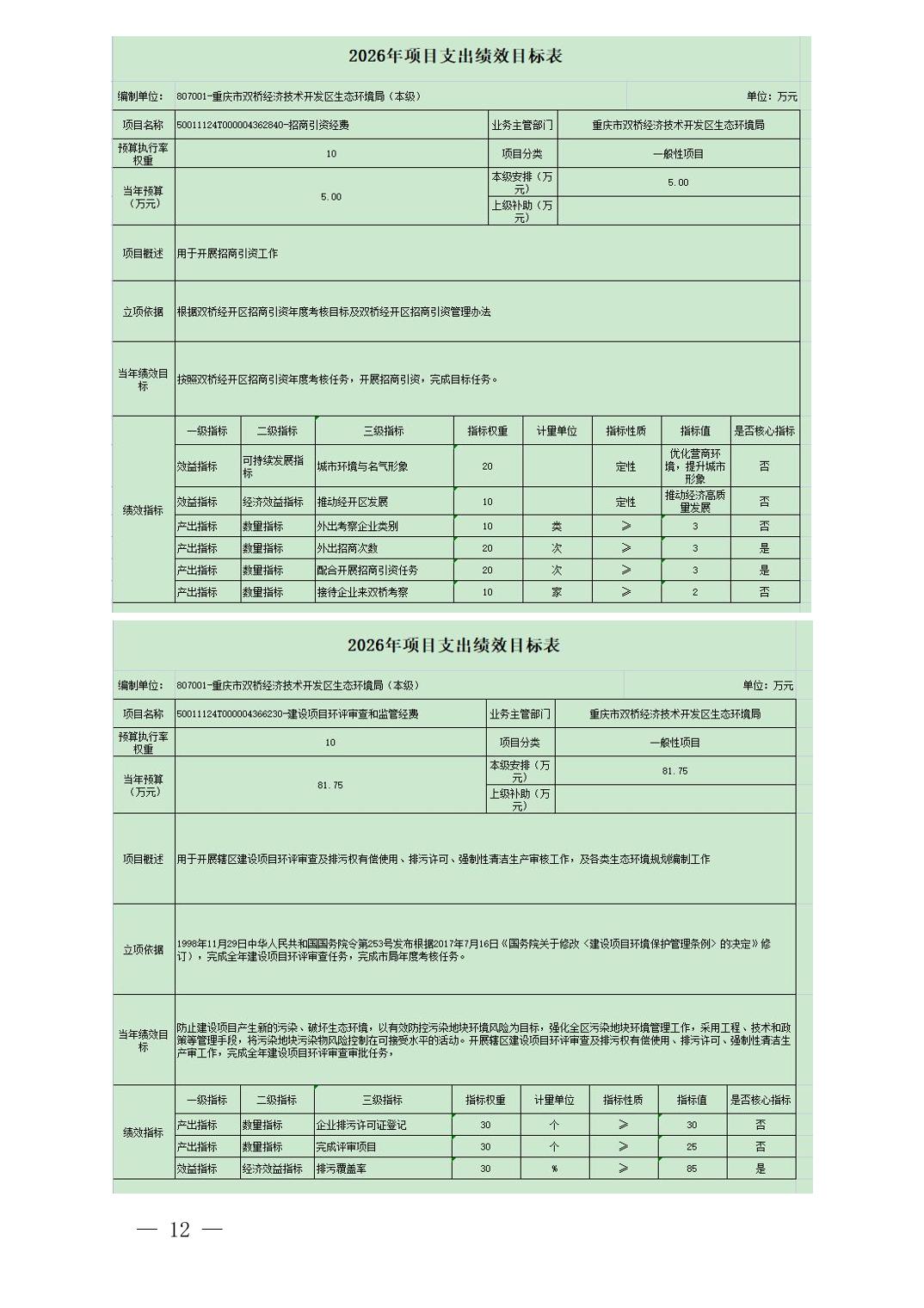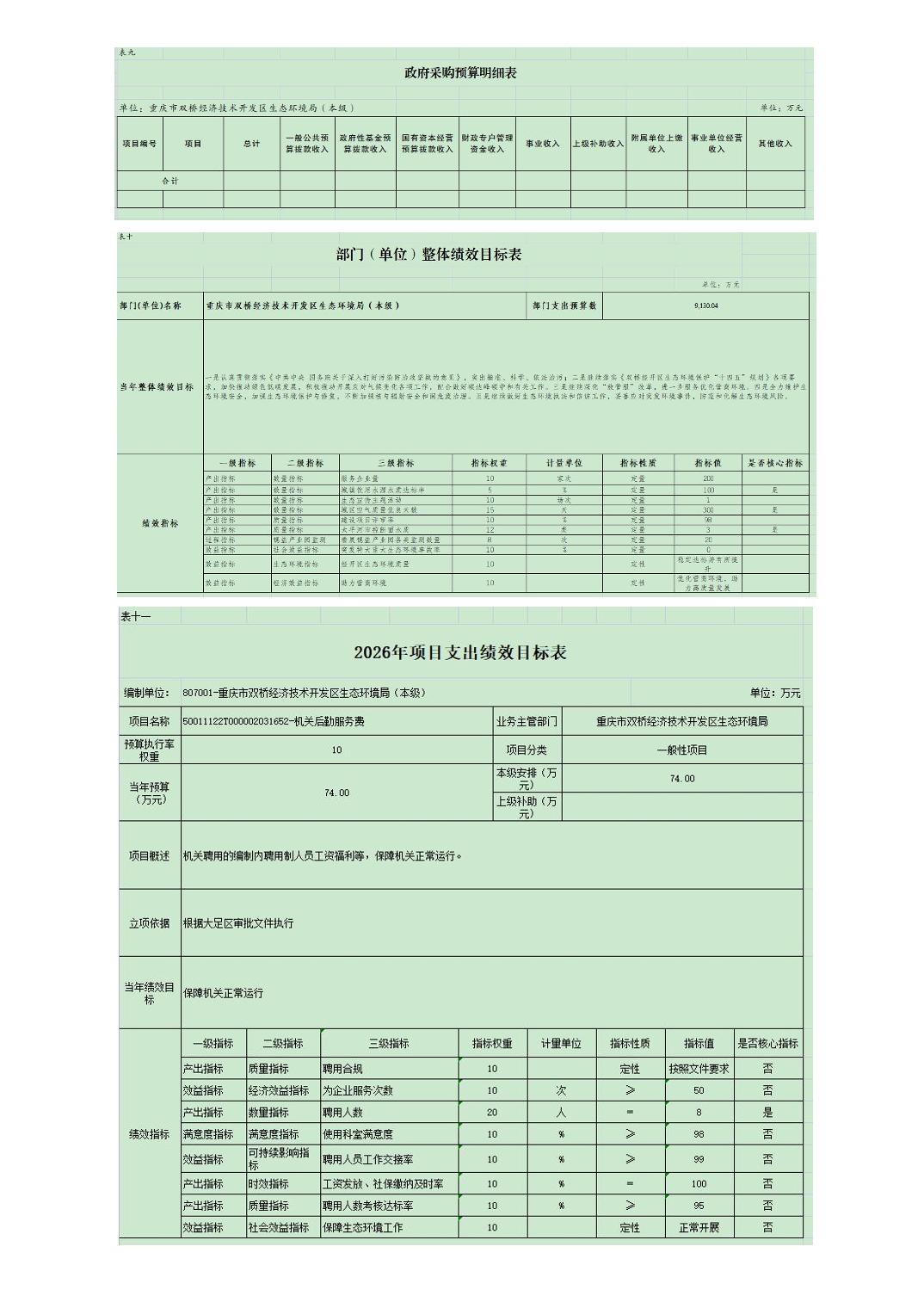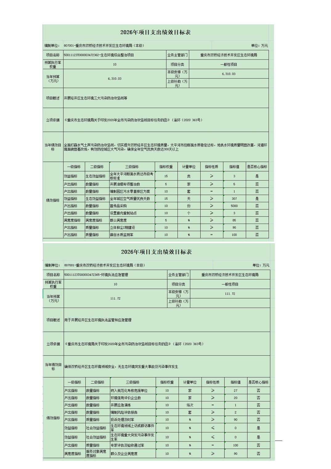 重庆市双桥经开区生态环境局本级2026年部门预算情况说明