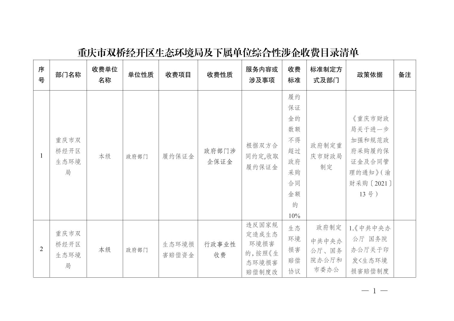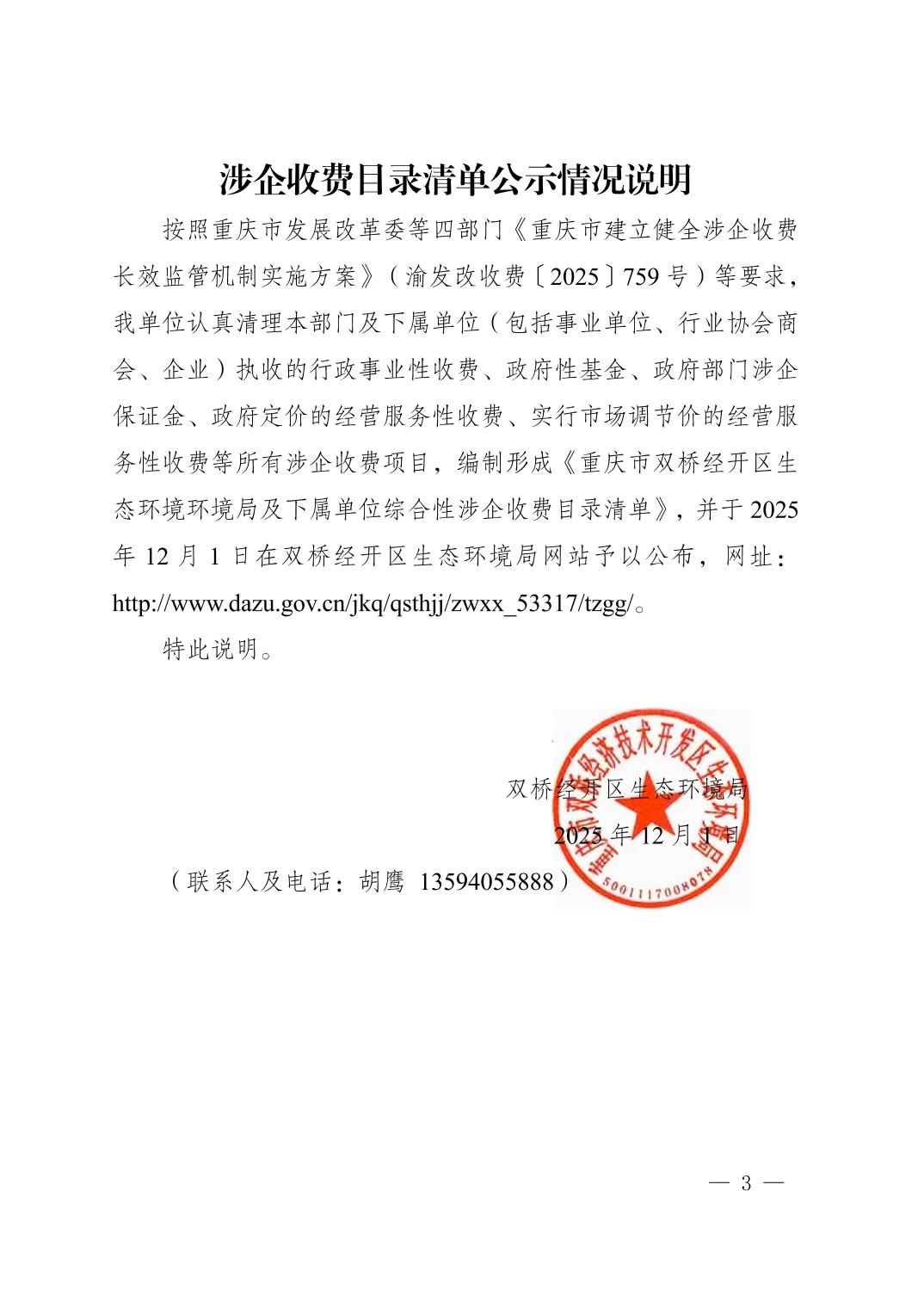重庆市双桥经开区生态环境局及下属单位综合性涉企收费目录清单公示情况说明