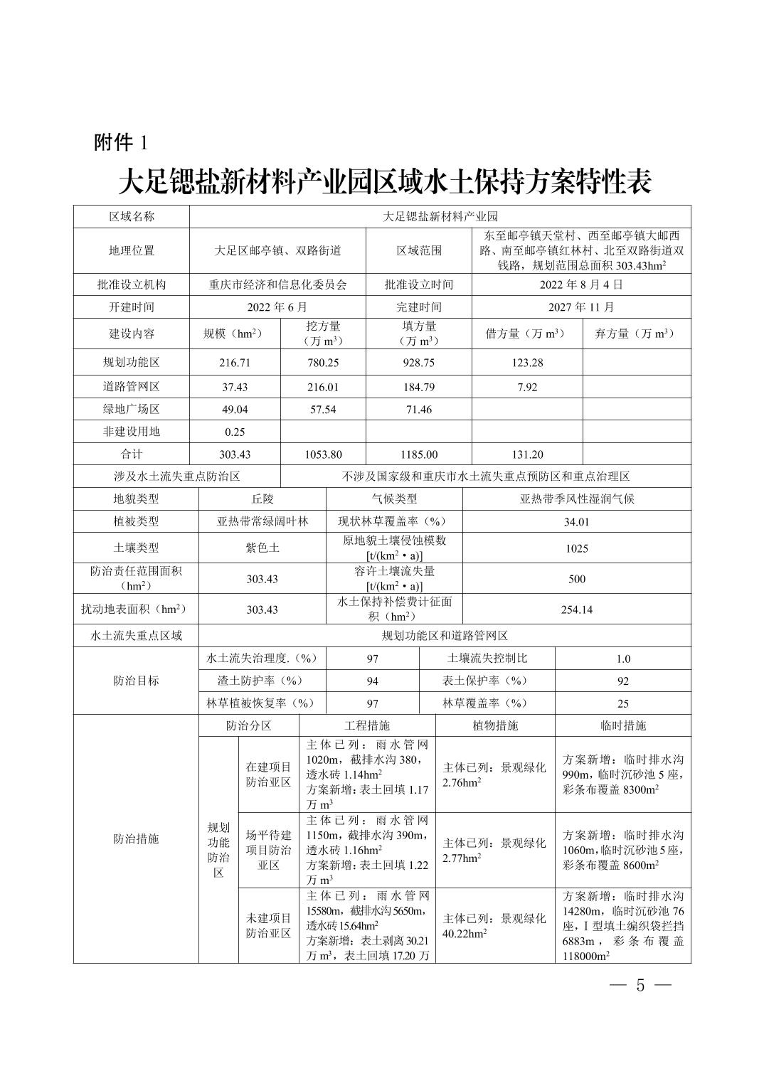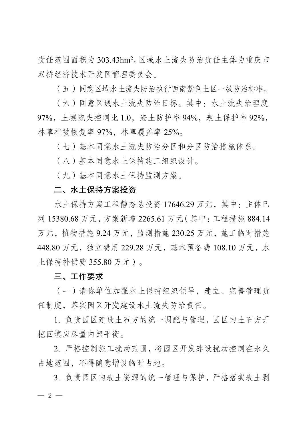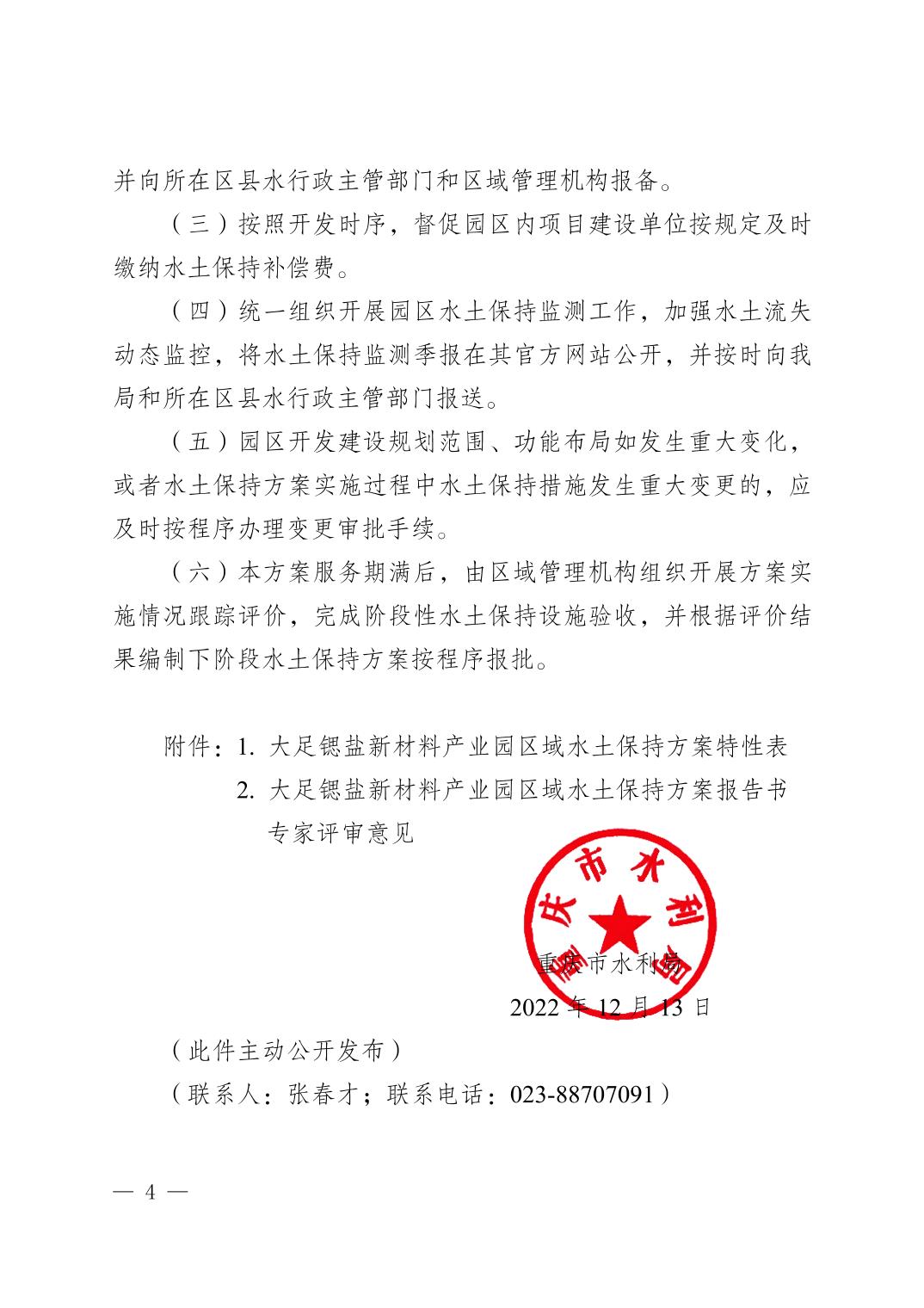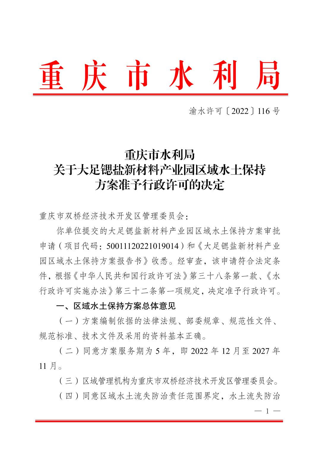 (转发)重庆市水利局 关于大足锶盐新材料产业园区域水土保持 方案准予行政许可的决定