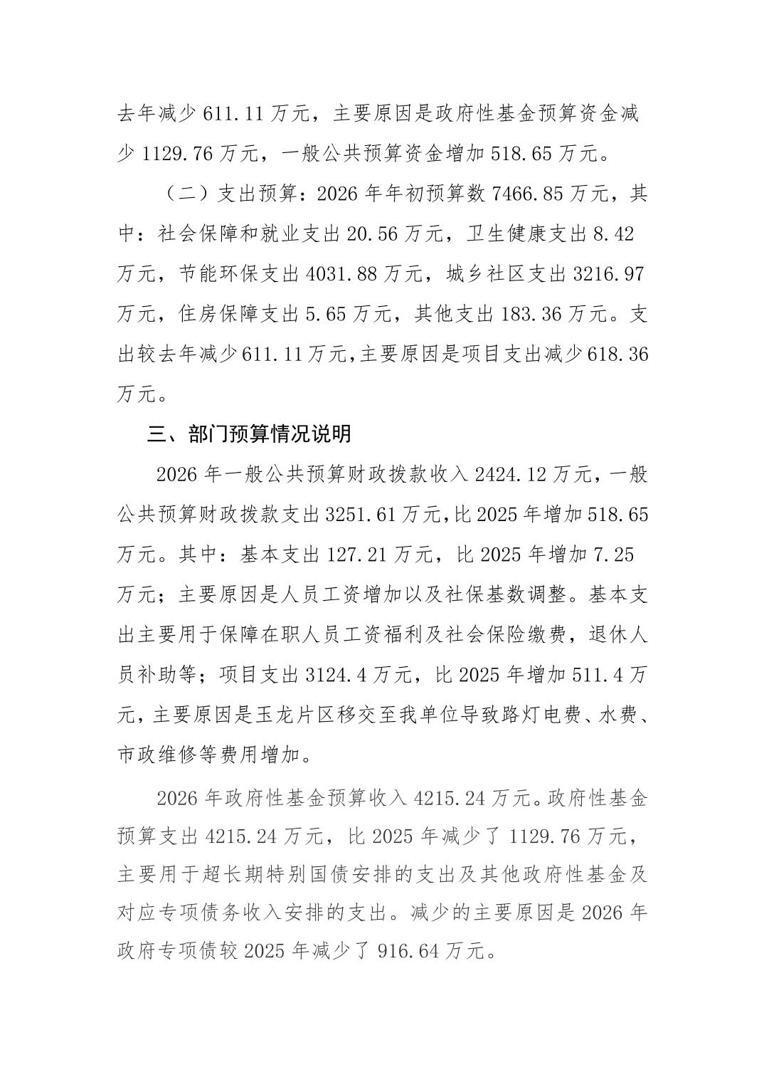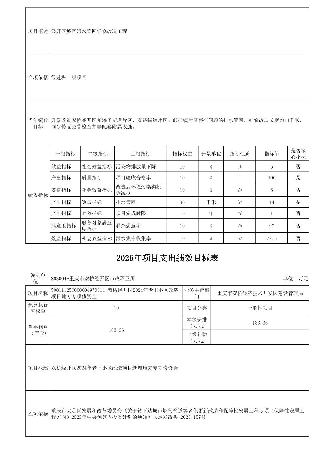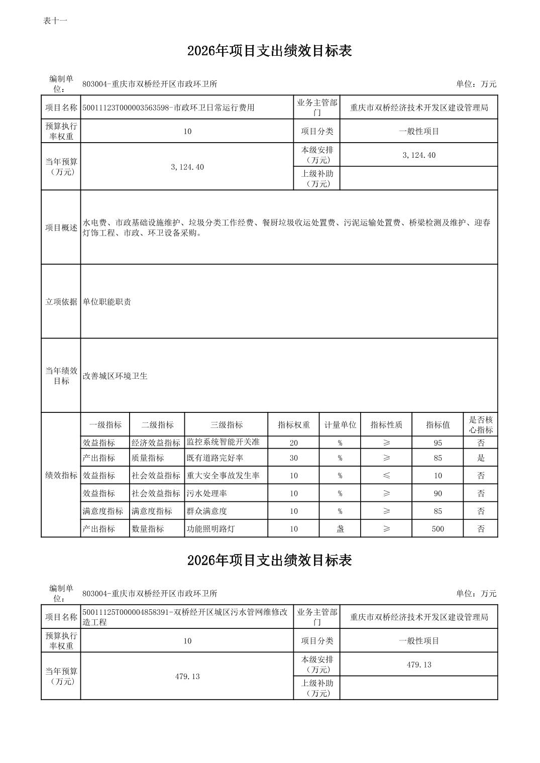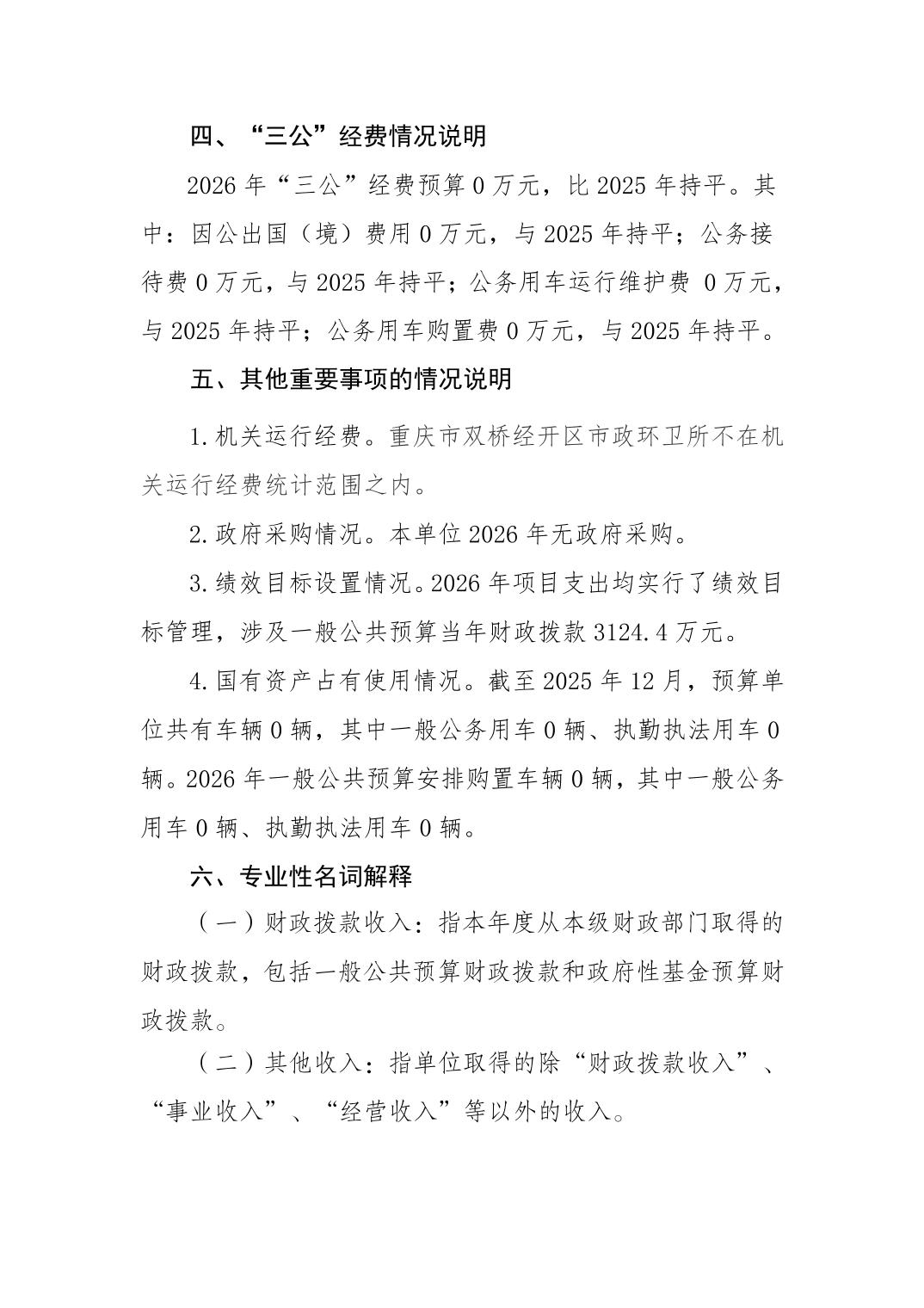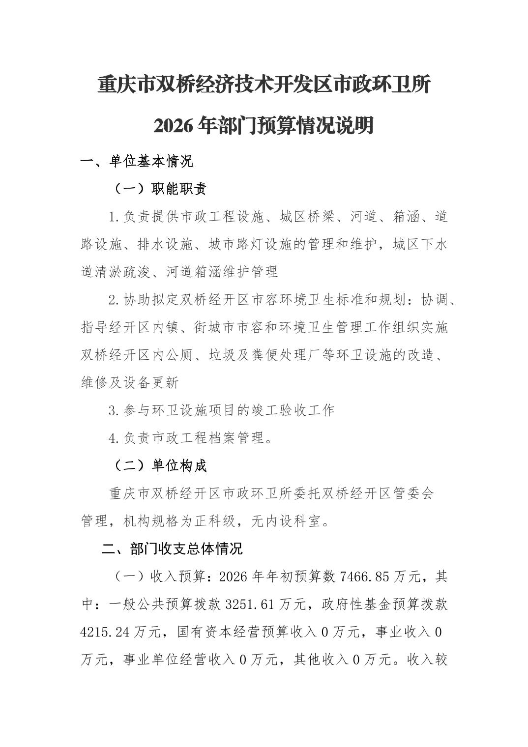 重庆市双桥经济技术开发区市政环卫所 2026年部门预算情况说明