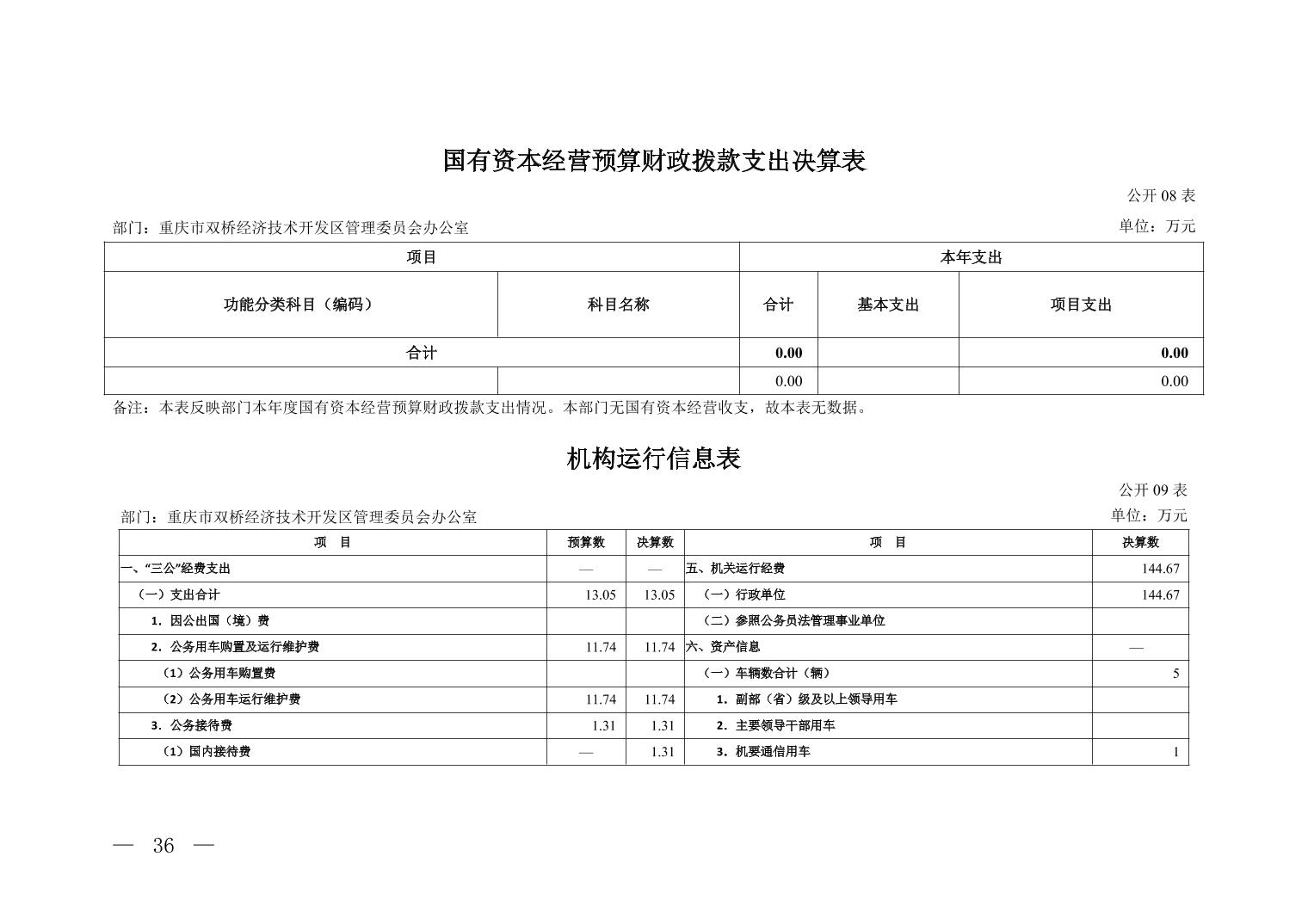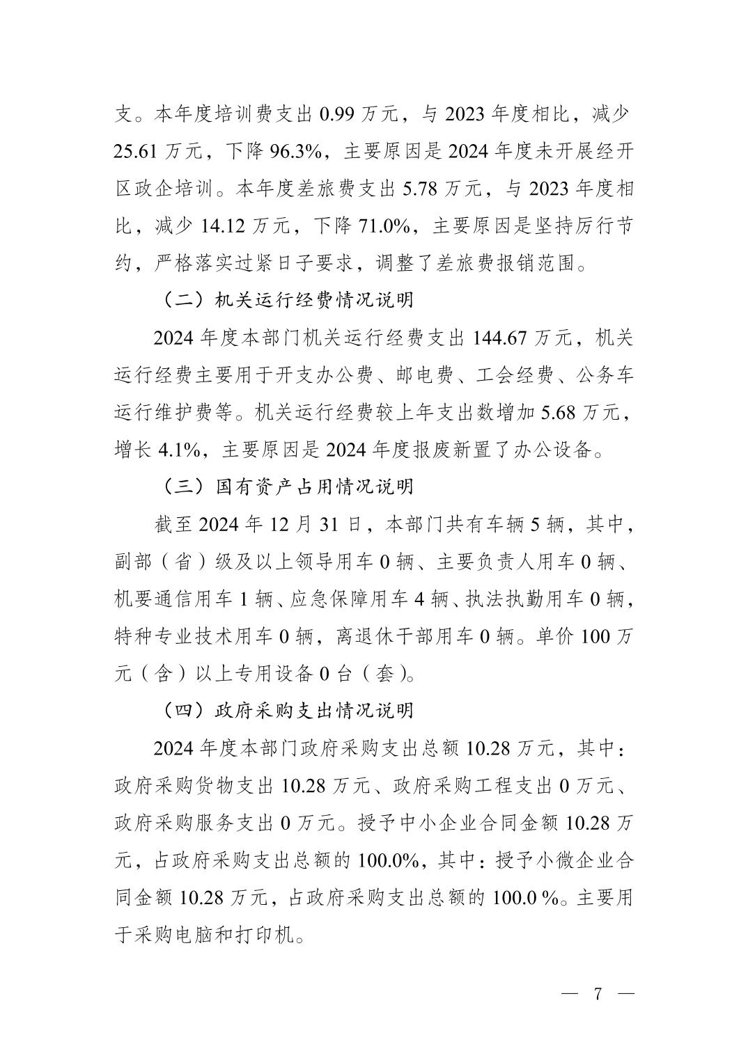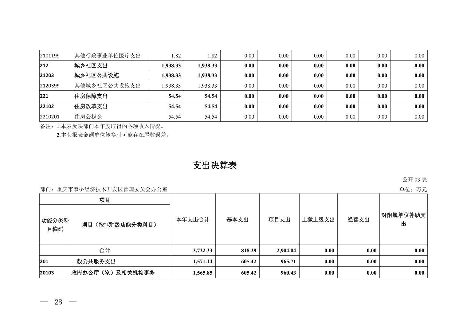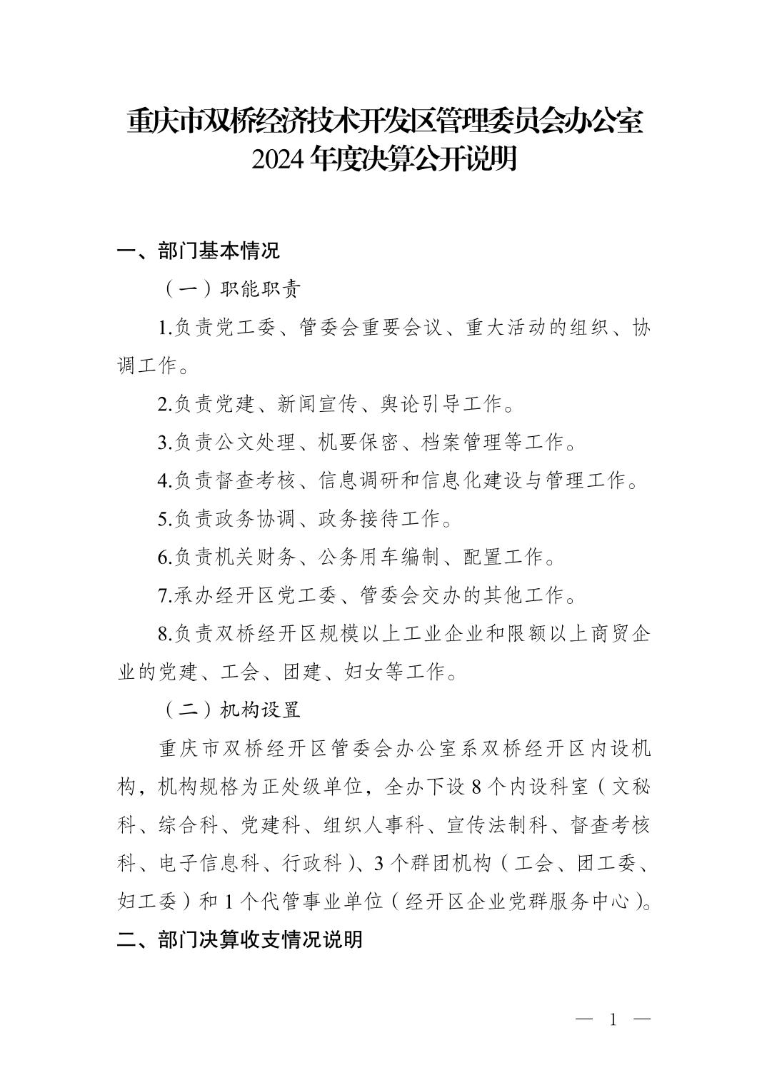 重庆市双桥经济技术开发区管理委员会办公室 2024 年度决算公开说明