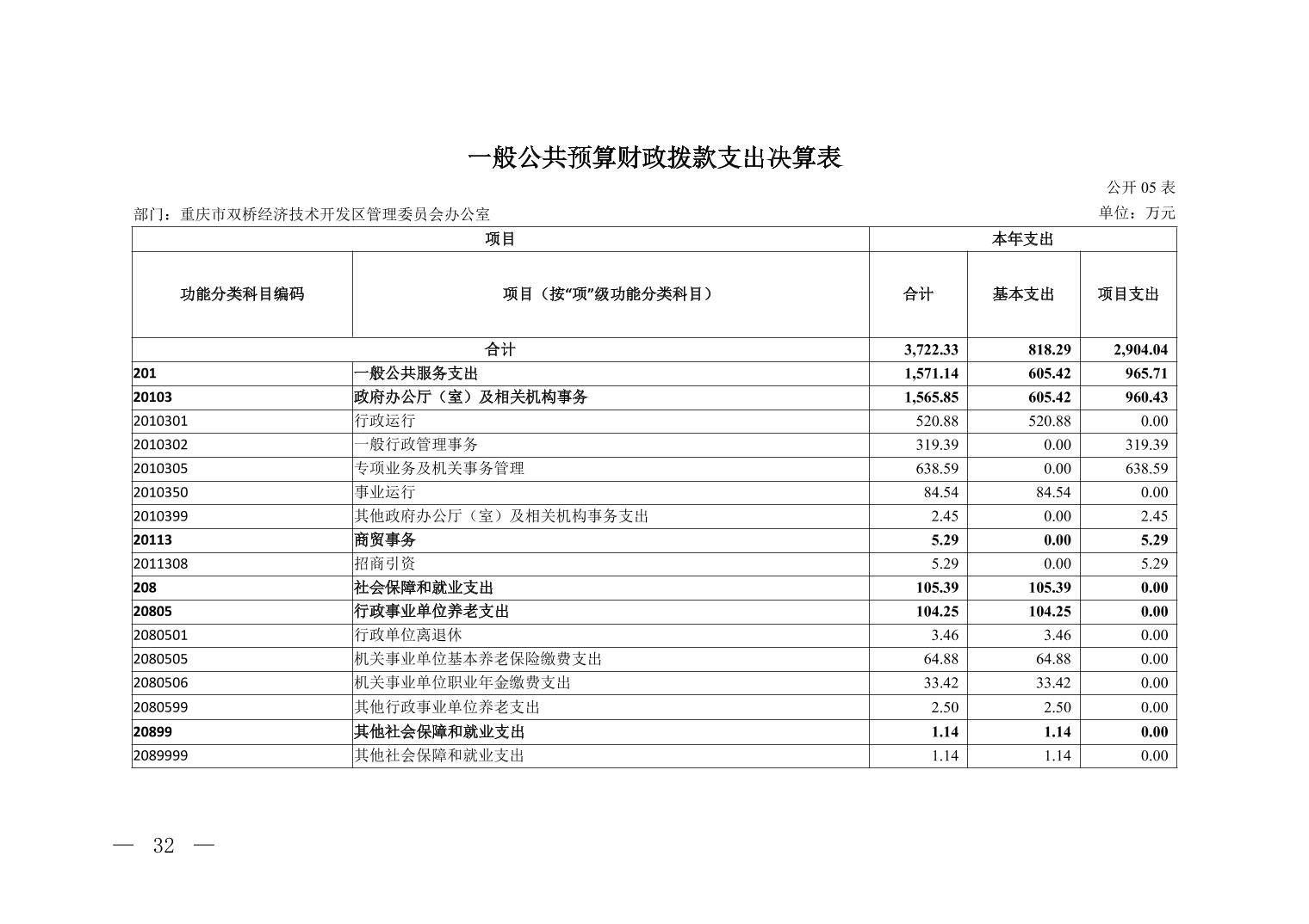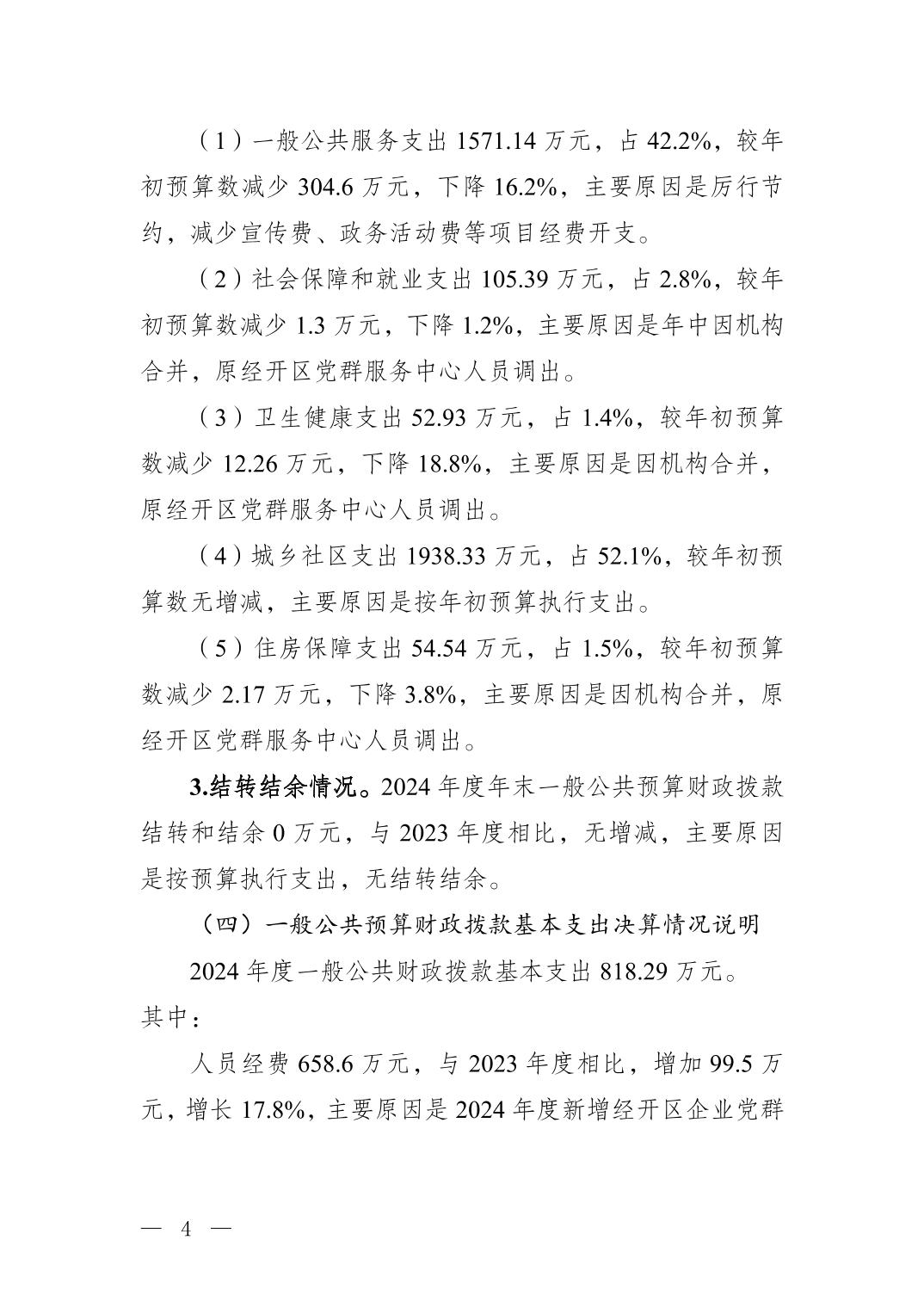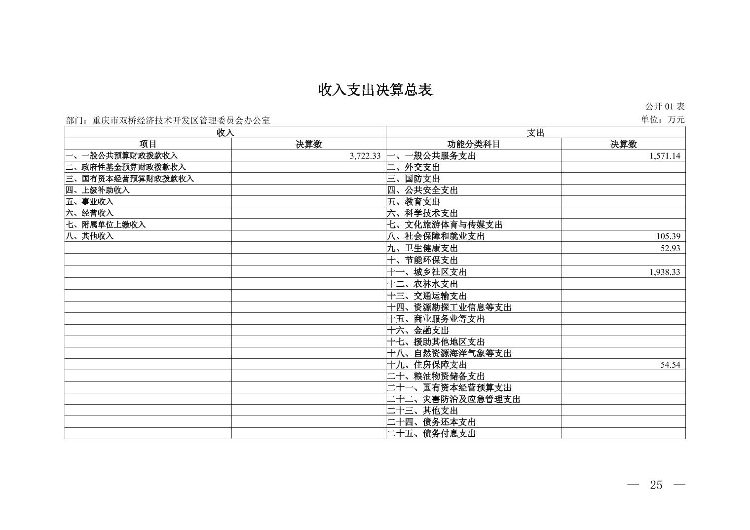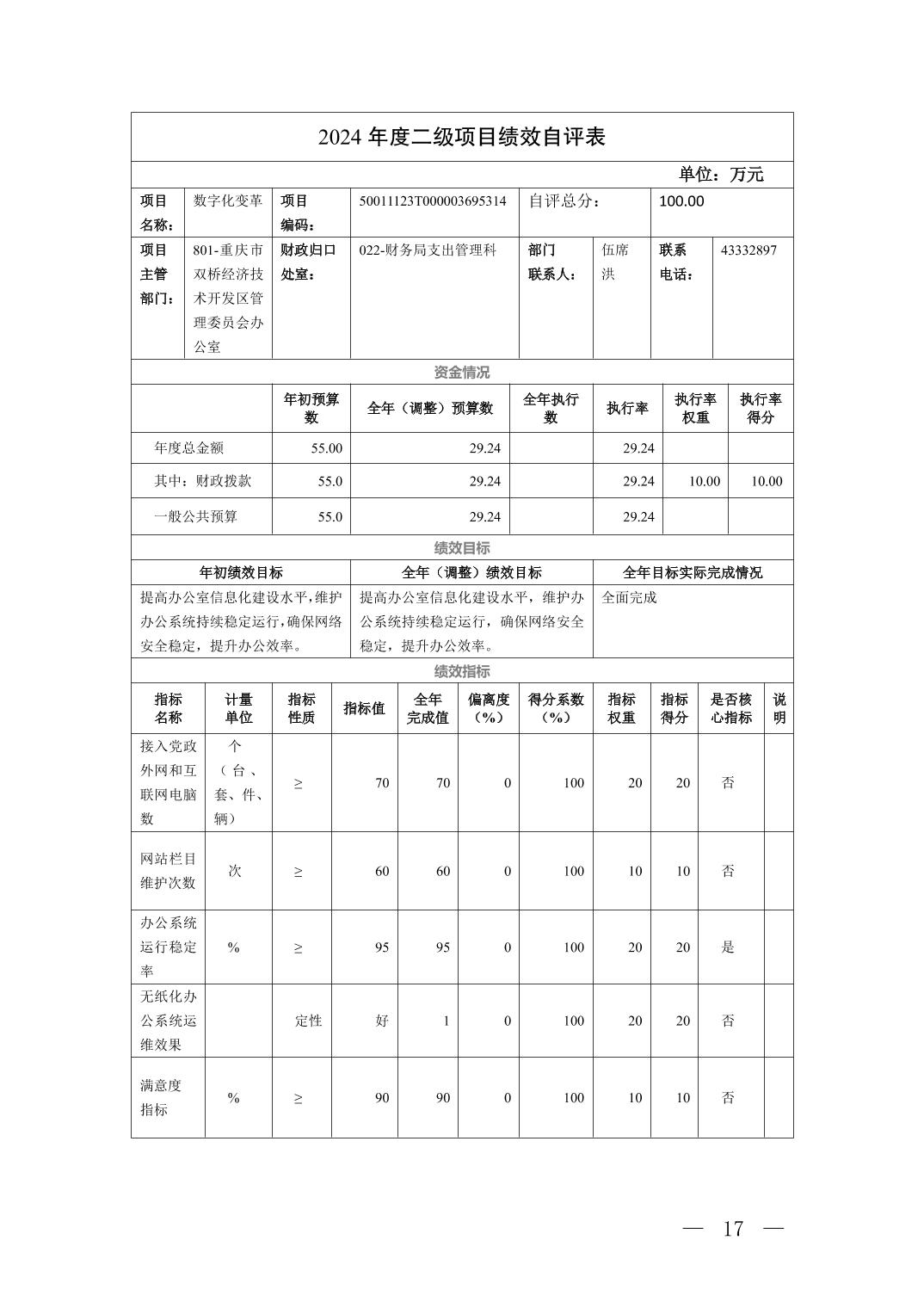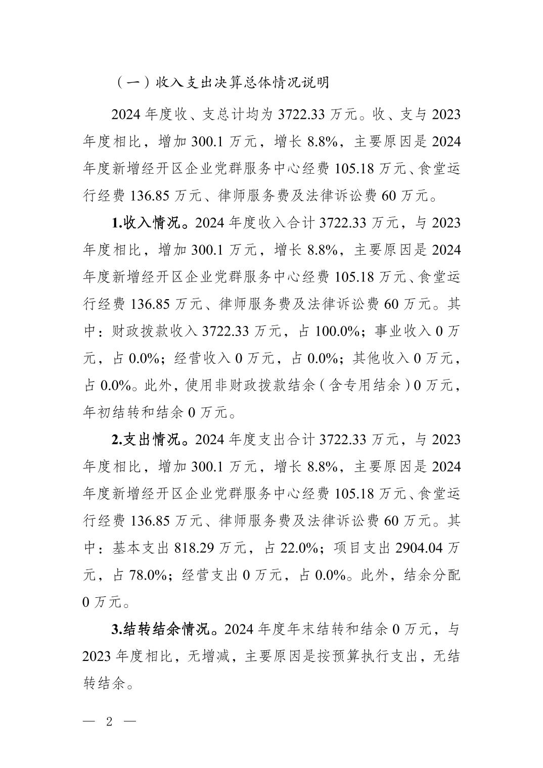 重庆市双桥经济技术开发区管理委员会办公室 2024 年度决算公开说明