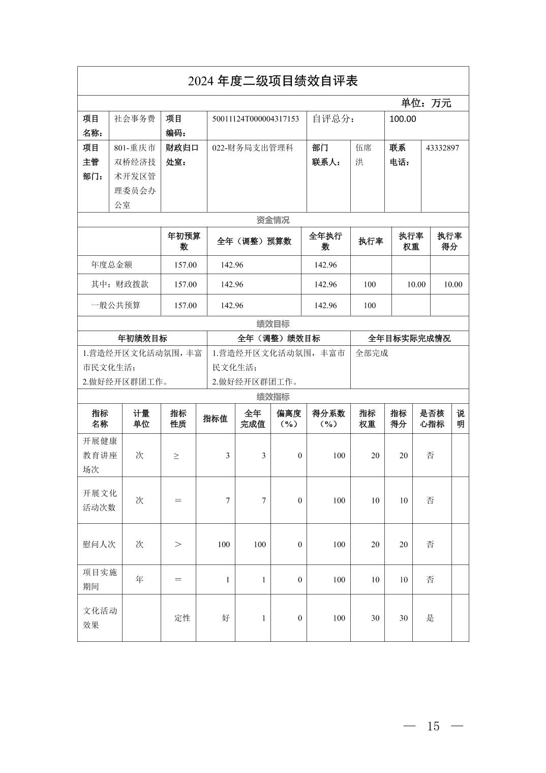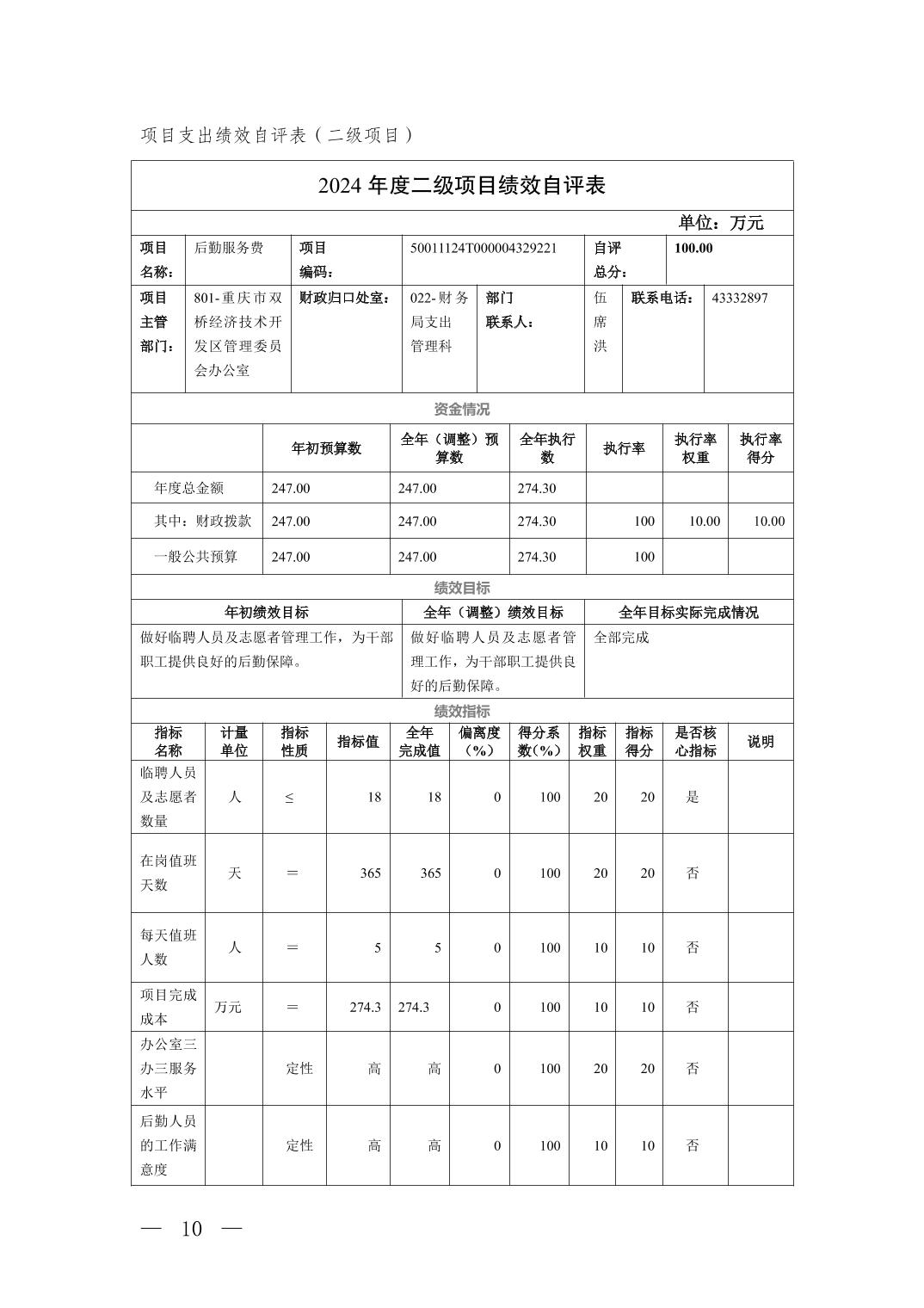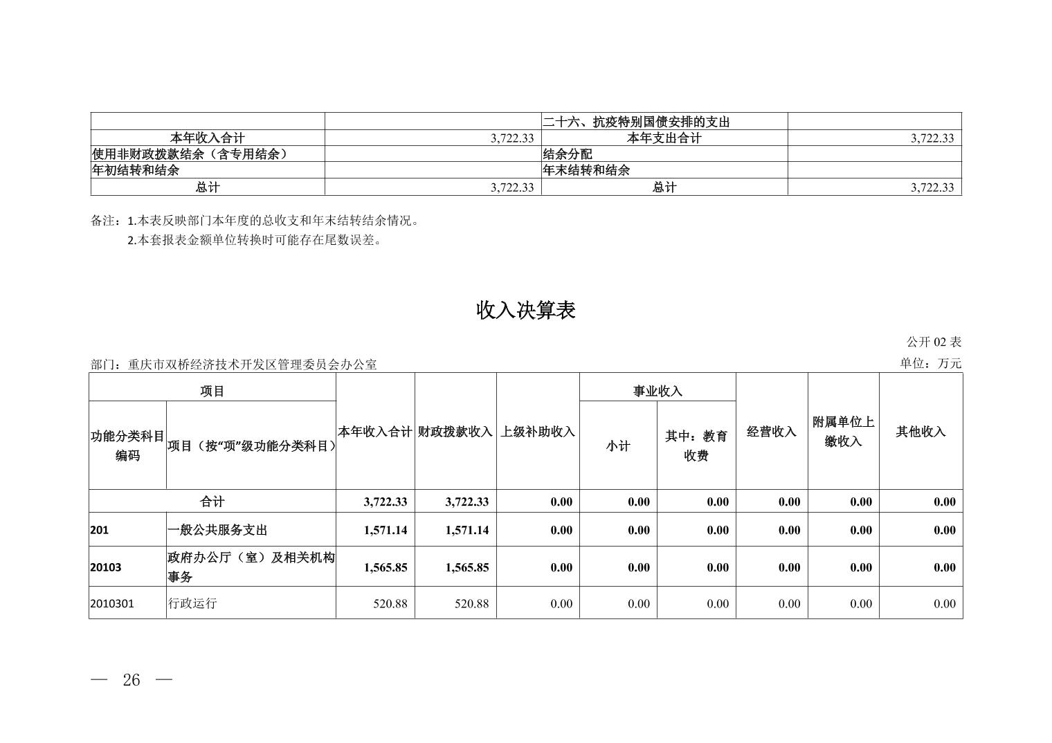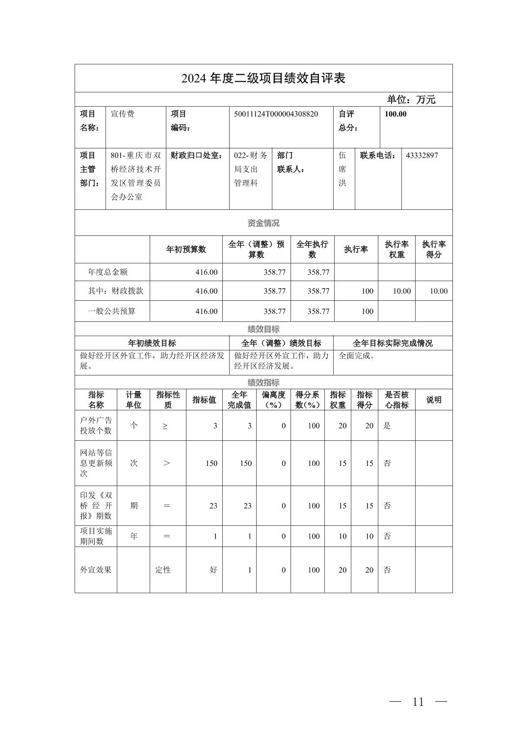重庆市双桥经济技术开发区管理委员会办公室 2024 年度决算公开说明