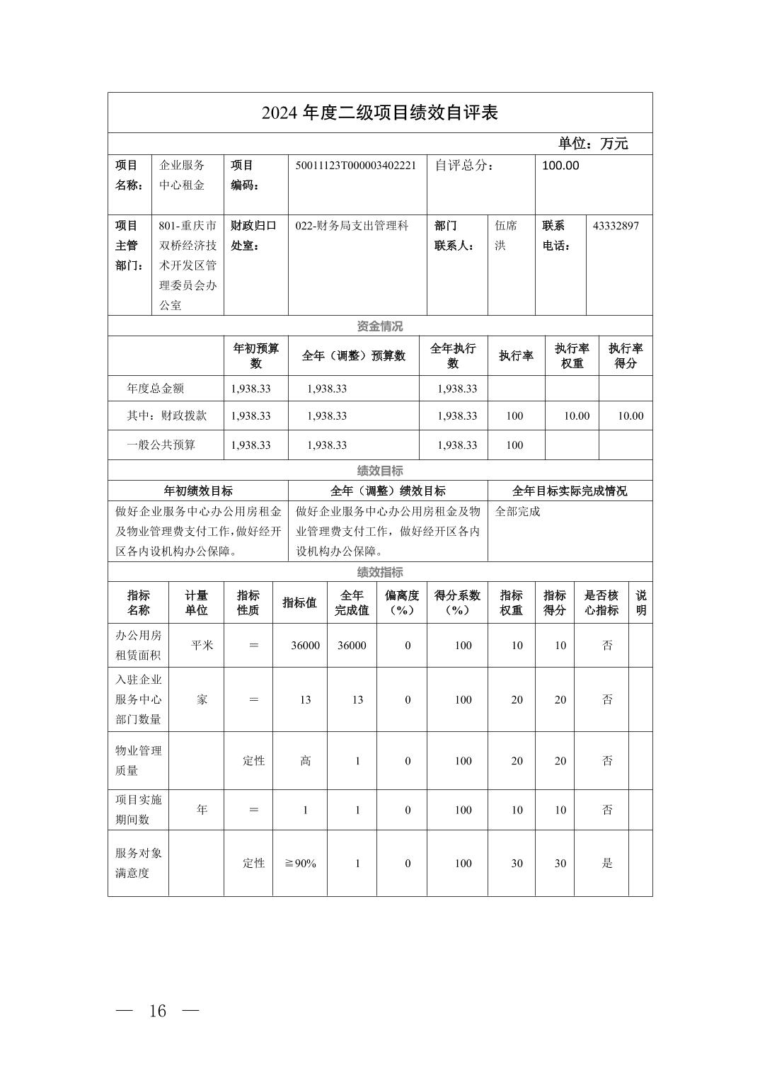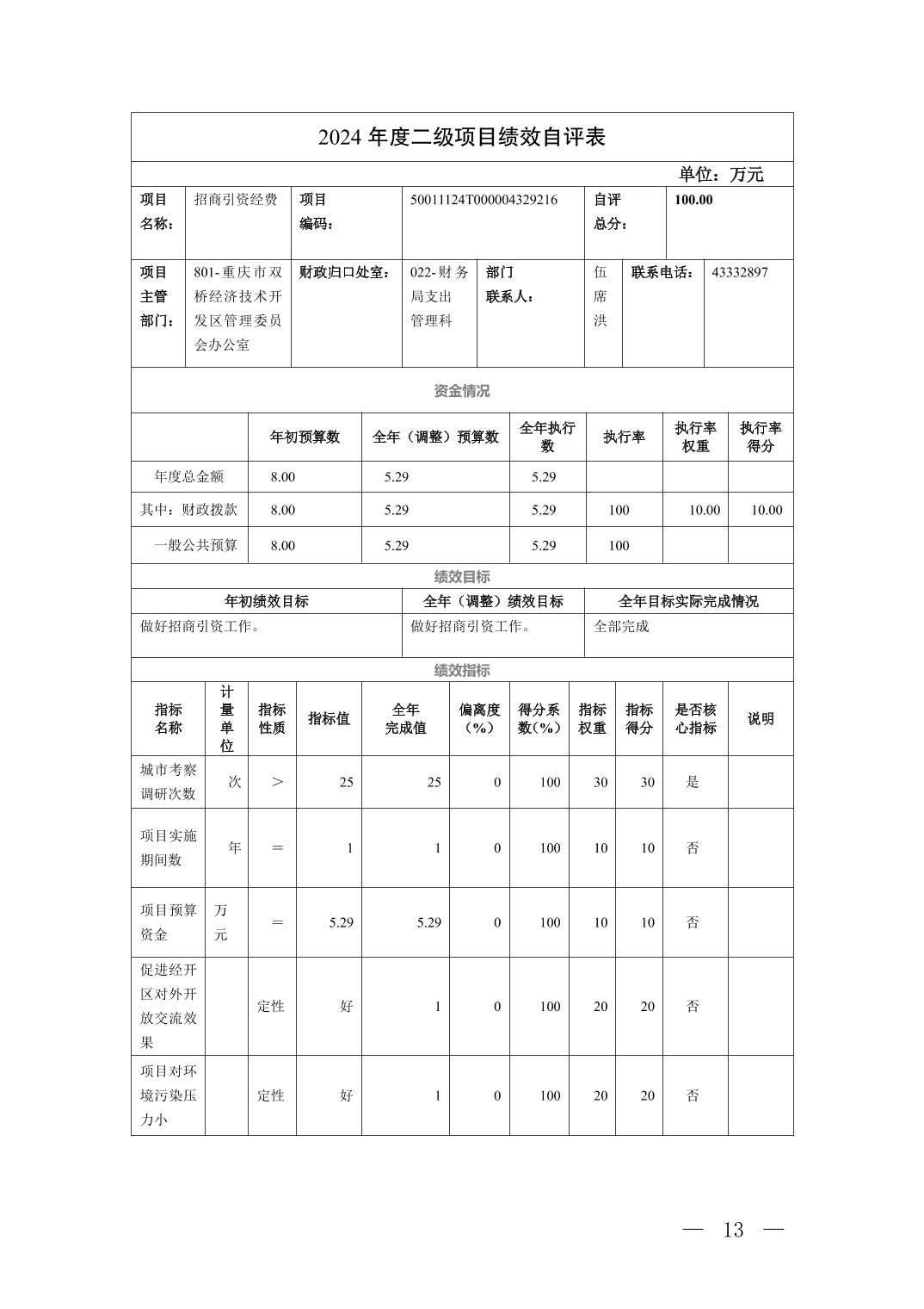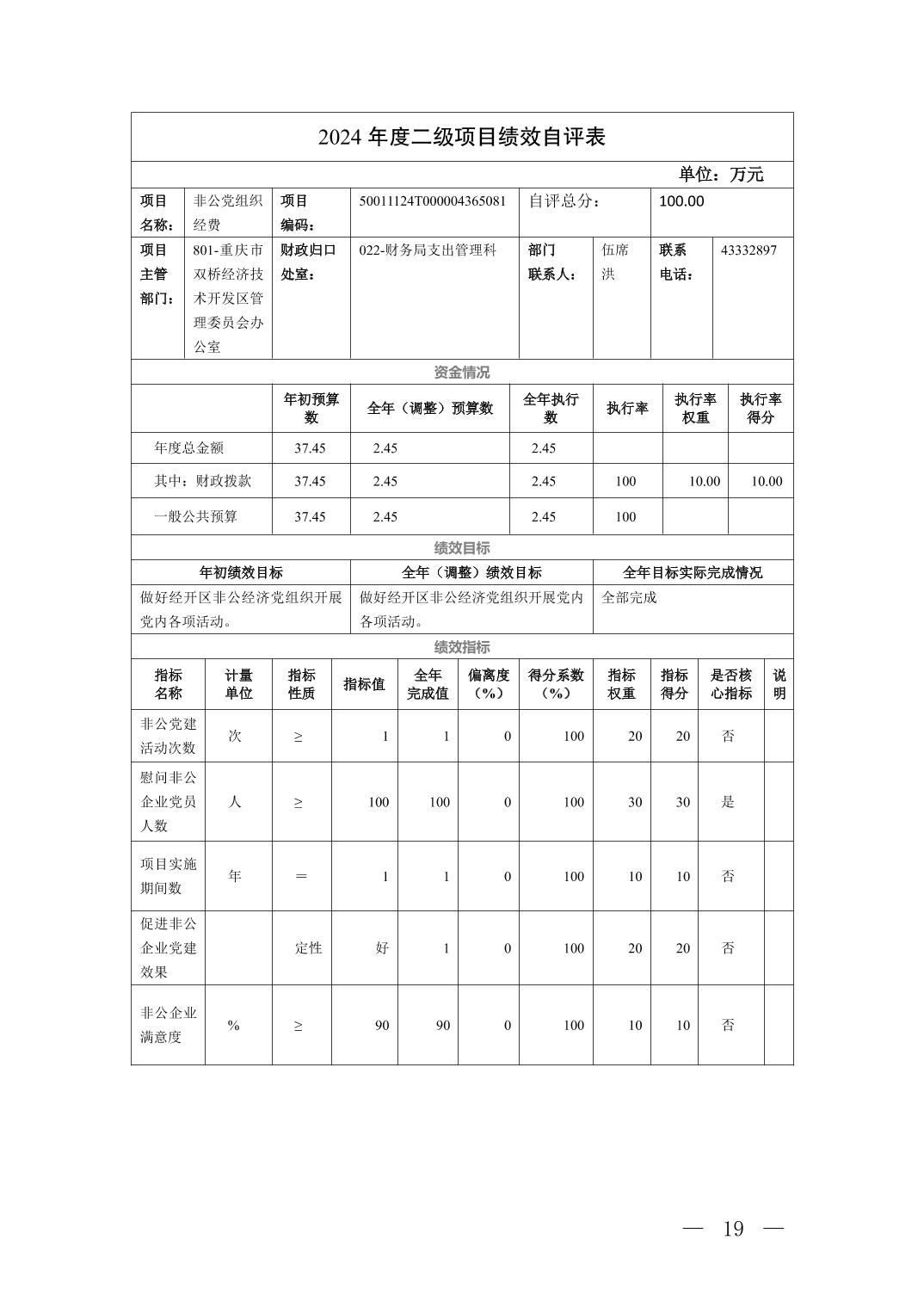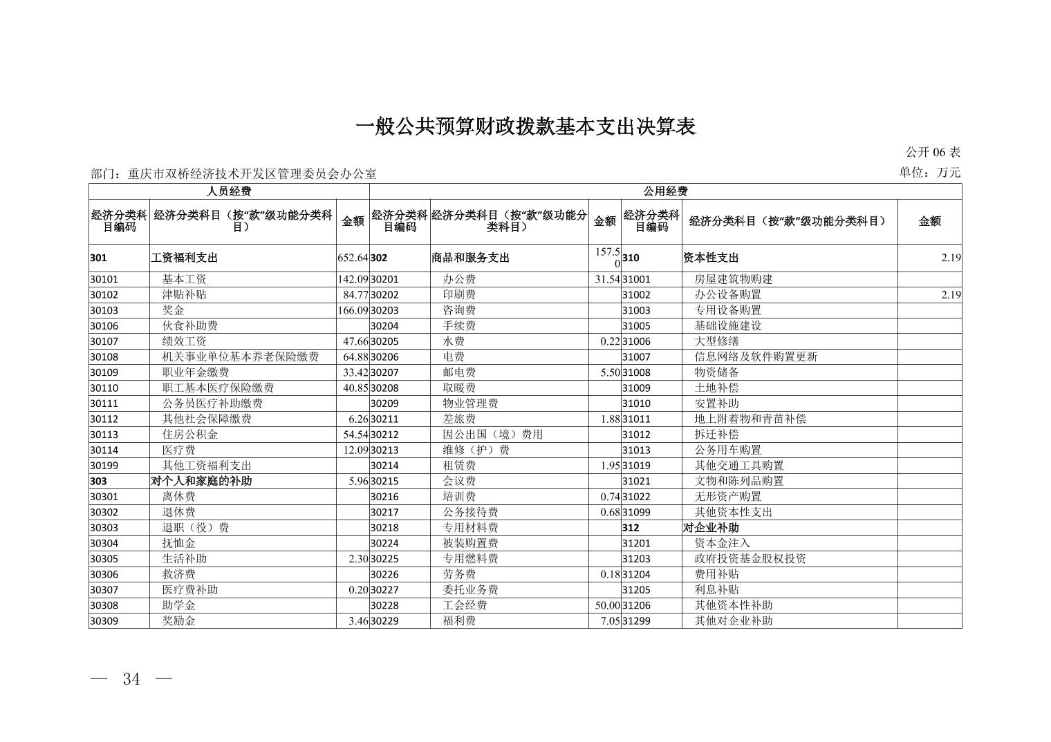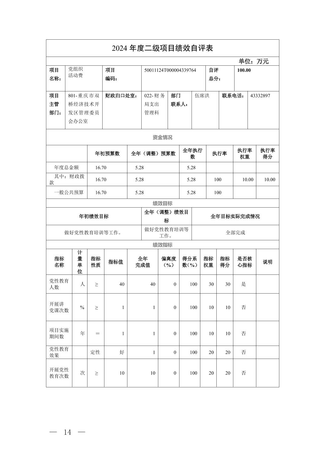 重庆市双桥经济技术开发区管理委员会办公室 2024 年度决算公开说明