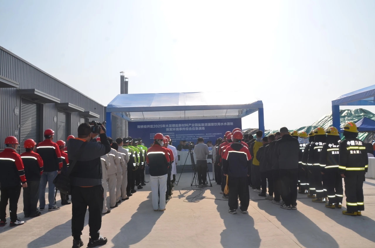 近日,经开区2025年大足锶盐新材料产业园盐酸泄漏暨饮用水水源地突发环境事件综合应急演练在重庆元泰新材料科技有限公司举行,旨在进一步强化经开区区域应急联动机制,检验突发环境事件应急预案及园区三级防控体系的科学性、实用性,锻炼提升各应急队伍快速反应、协同作战、应急处置的综合实战能力,助力双桥经开区高质量发展。