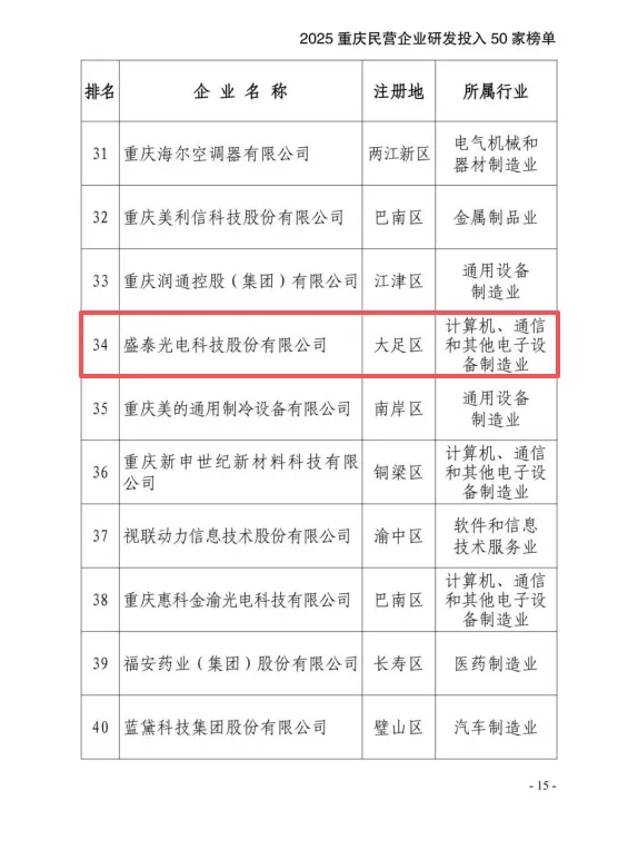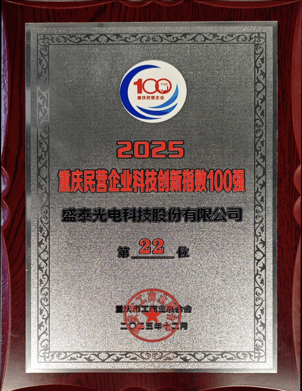 盛泰光电上榜“2025重庆民营企业科技创新指数100强”