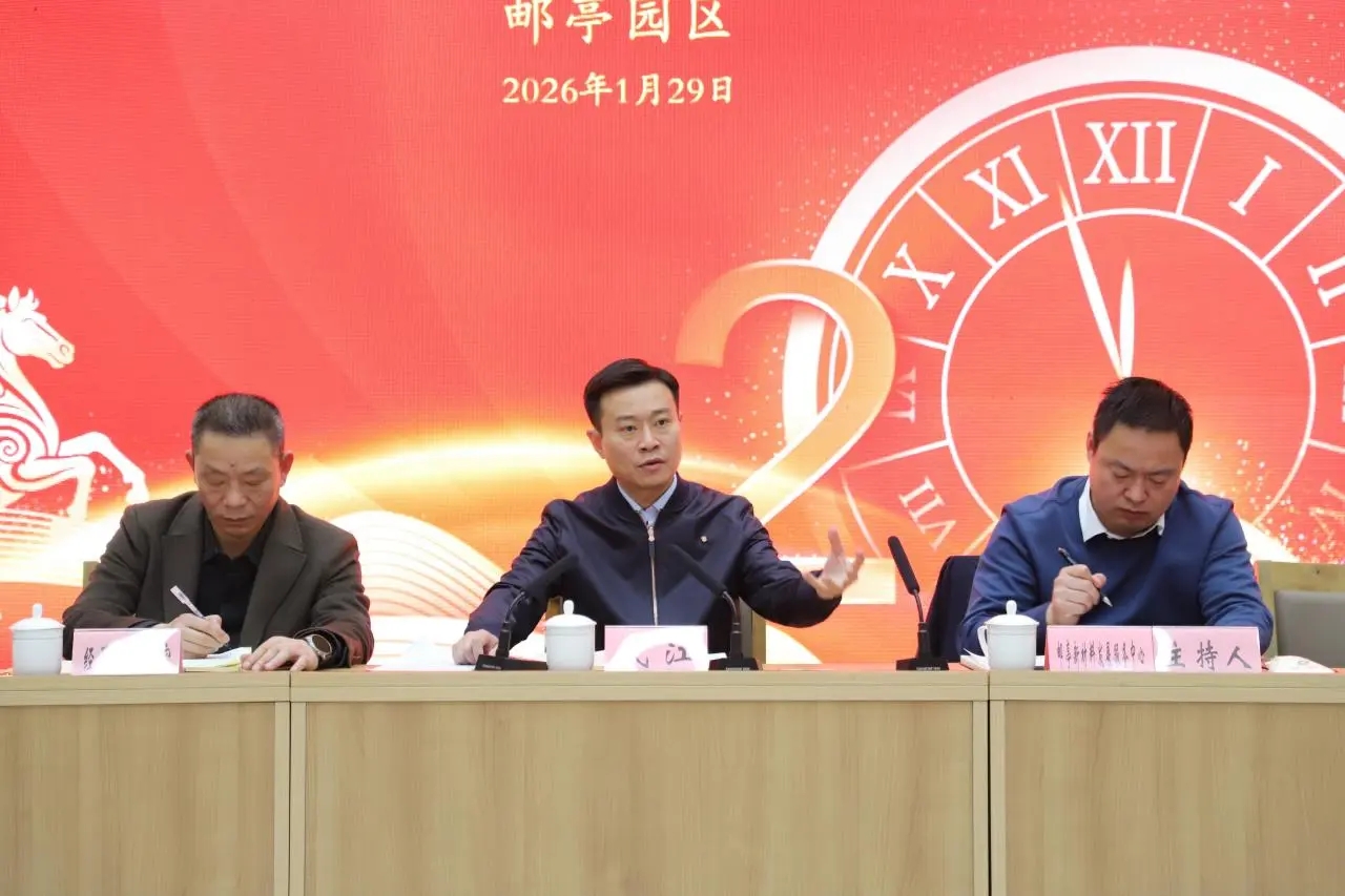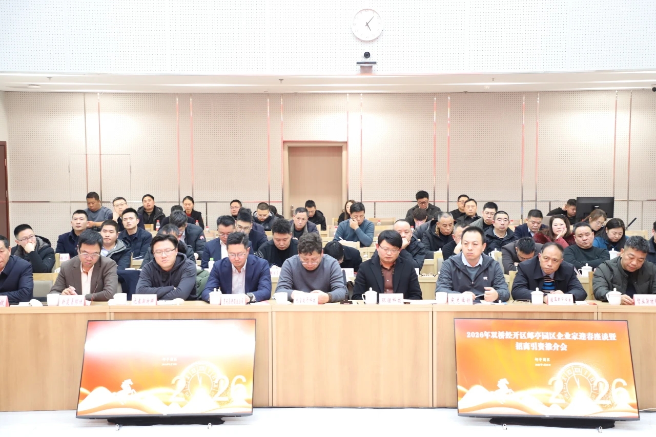 1月29日,邮亭园区2026年迎春座谈暨招商引资推介会在经开区企业服务中心举行。经开区相关部门与近百家企业代表欢聚一堂,共叙发展、共谋合作。经开区党工委委员、管委会副主任代江出席会议并讲话。