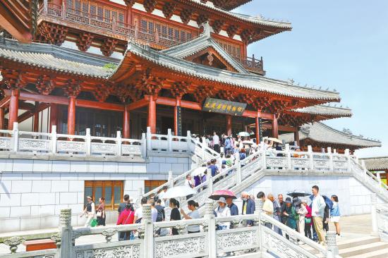 2023年4月30日,大足石刻景区迎来旅游高峰,前往大足石刻博物馆参观的游客络绎不绝。(新渝报资料图) 新渝报记者瞿波摄