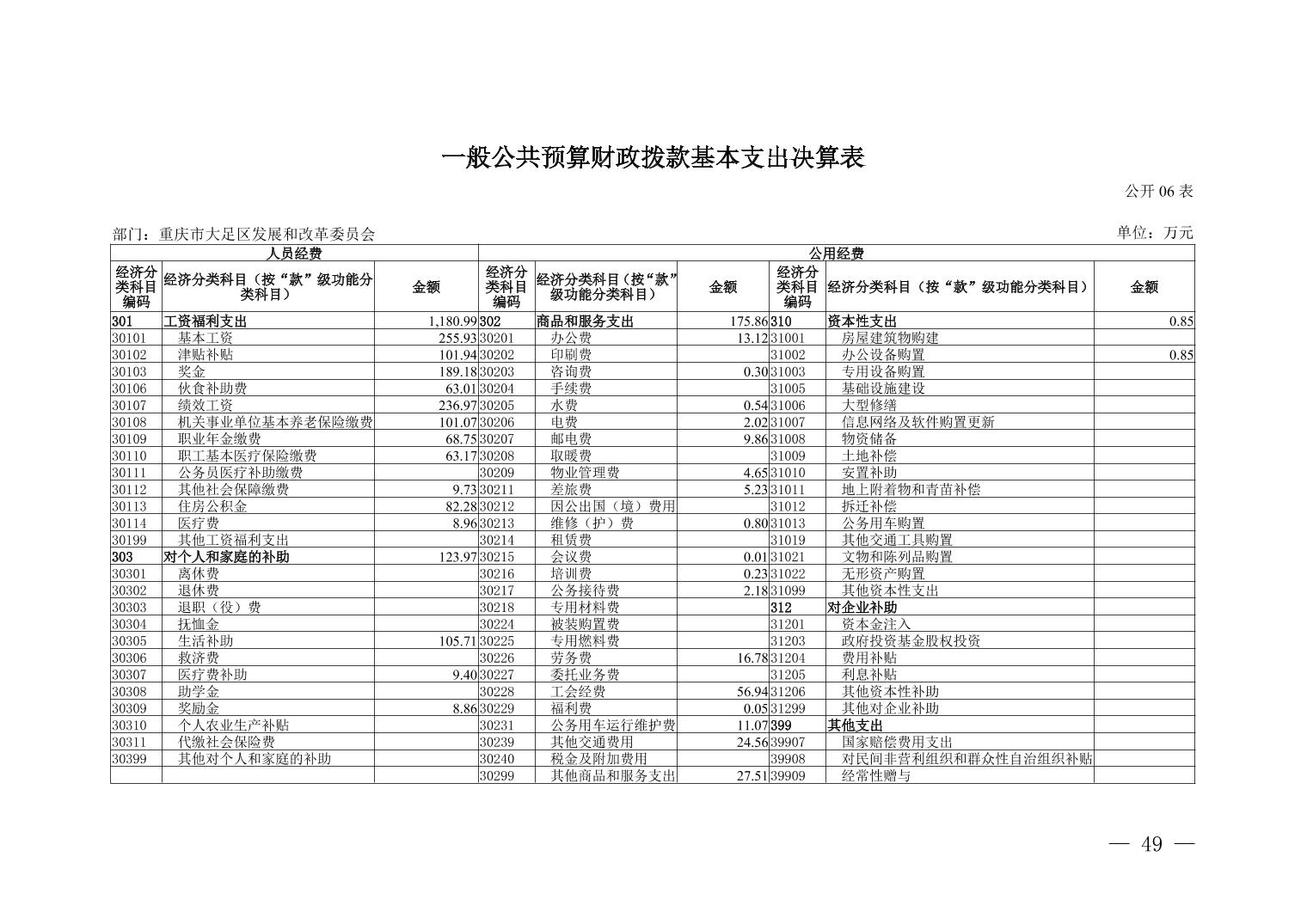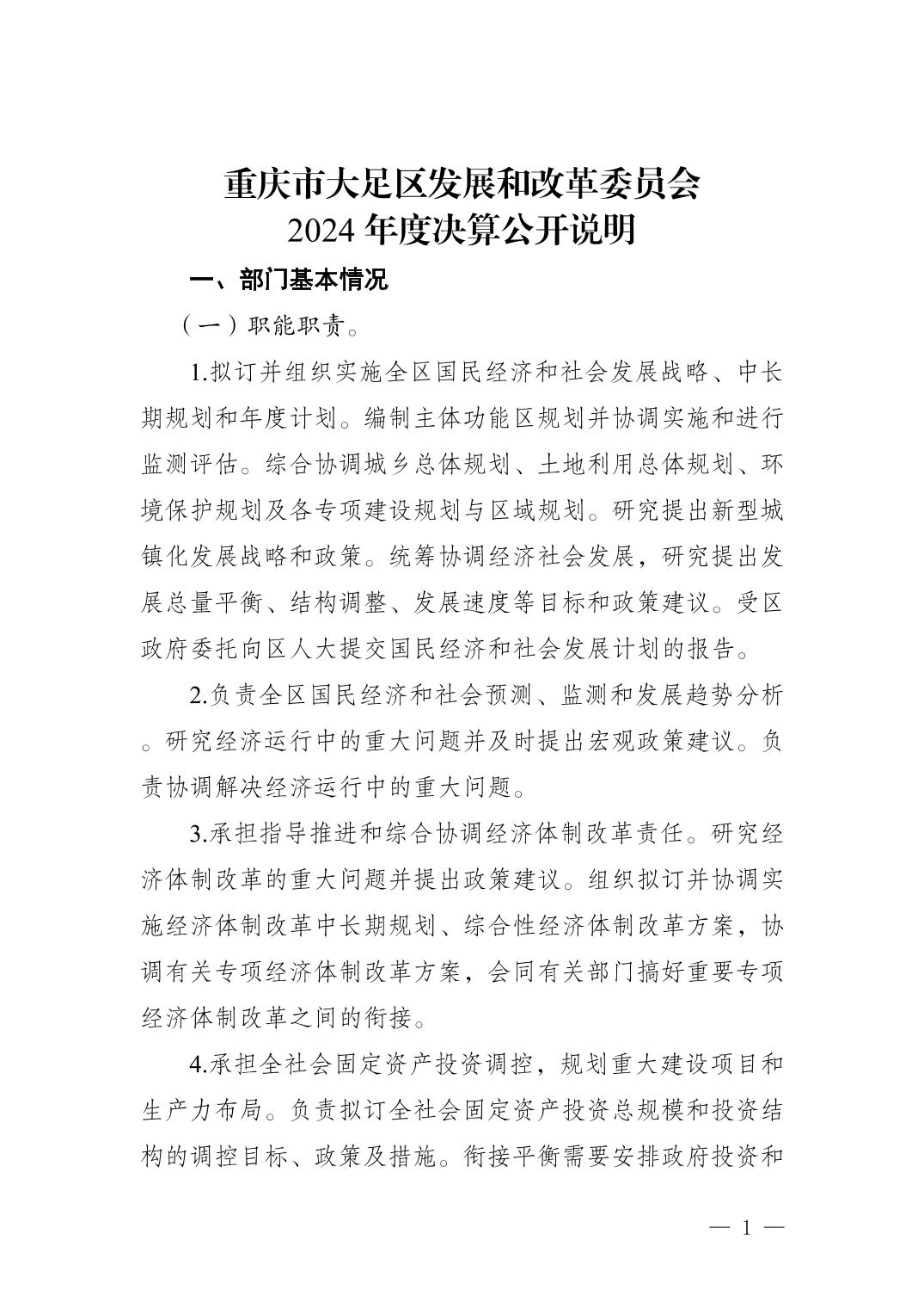 重庆市大足区发展和改革委员会(部门)2024年度决算公开说明