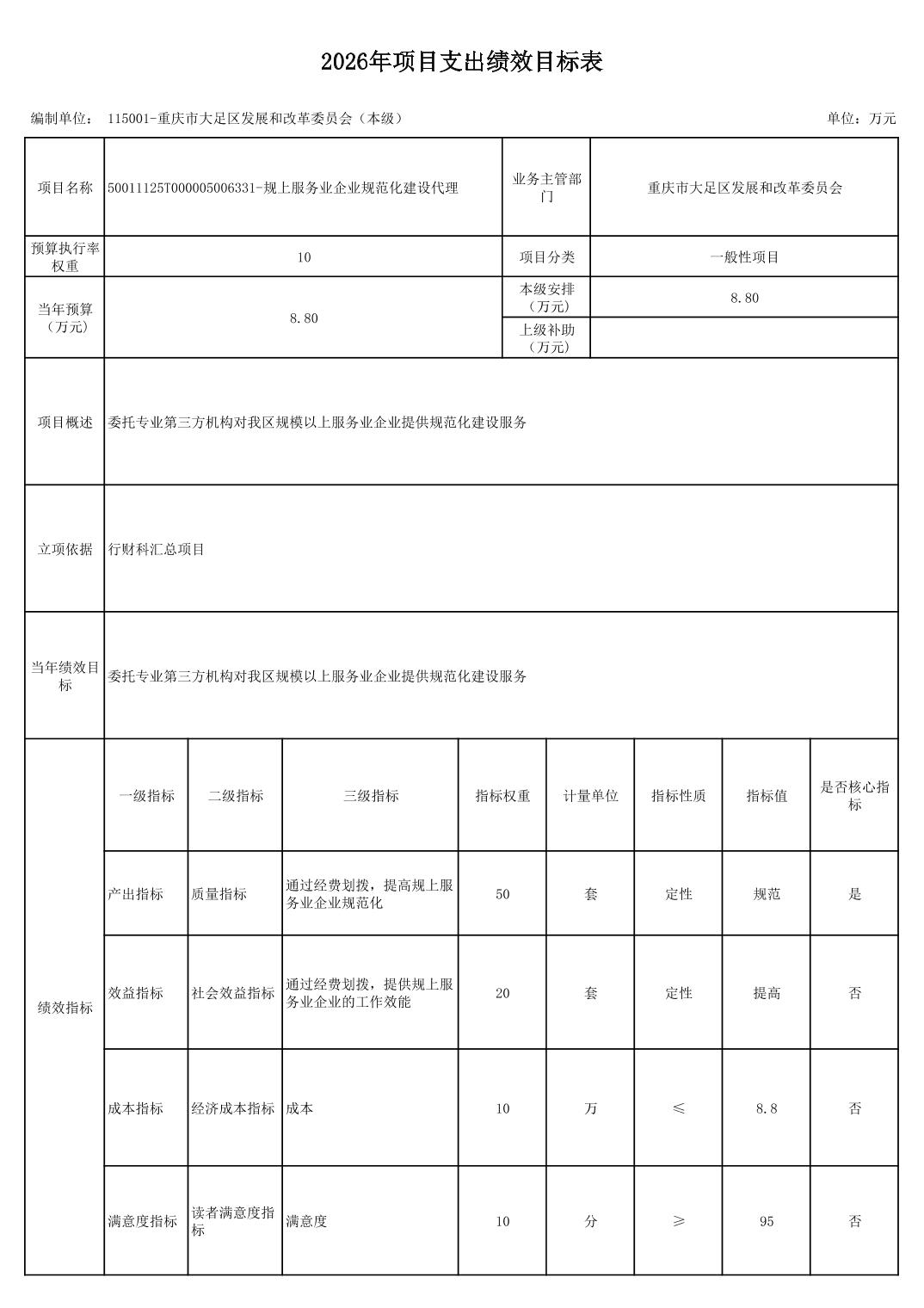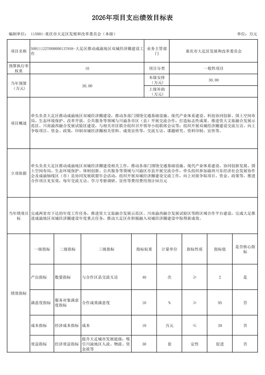 重庆市大足区发展和改革委员会2026年单位预算情况说明