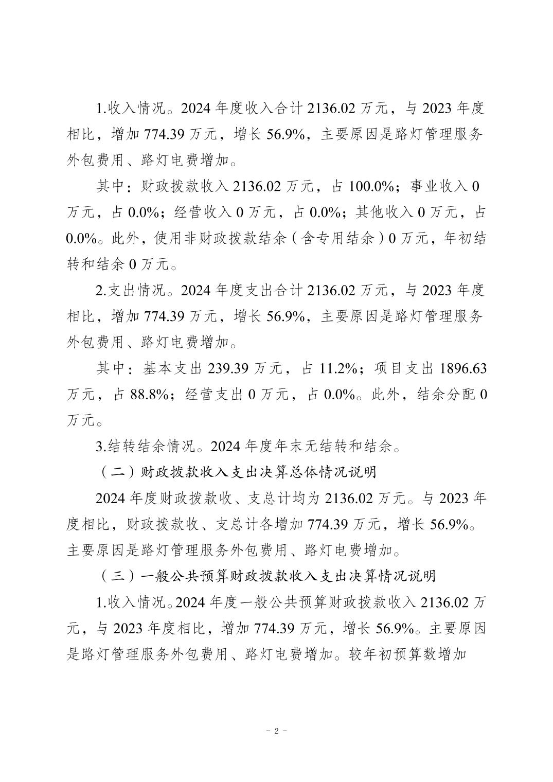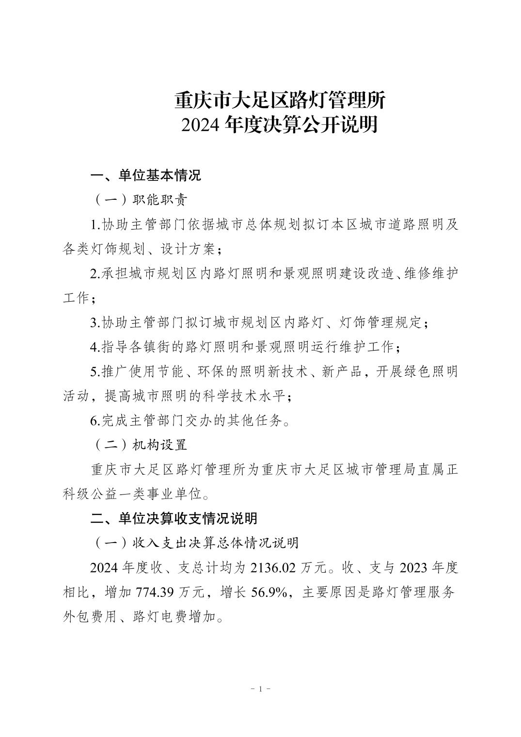 重庆市大足区路灯管理所2024年度决算公开说明