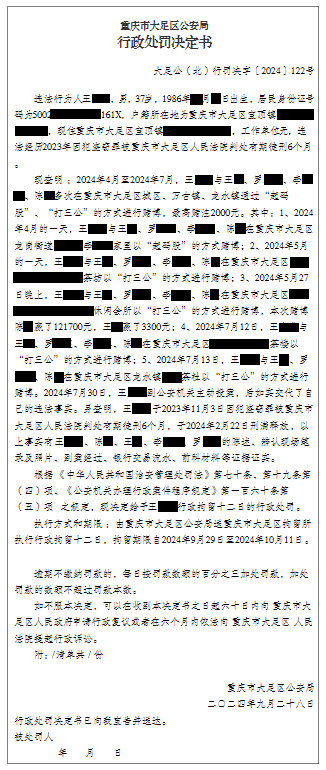 | [ 主题分类 ] | 公安 | [ 体裁分类 ] | 行政处罚 |