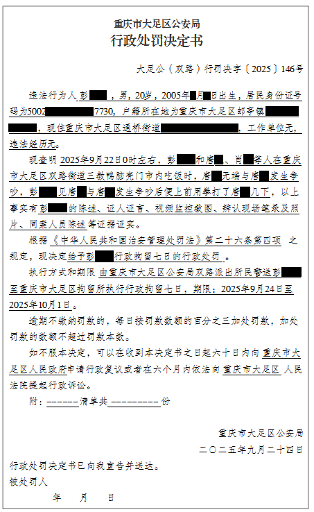 [ 主题分类 ] | 公安 | [ 体裁分类 ] | 行政处罚 |