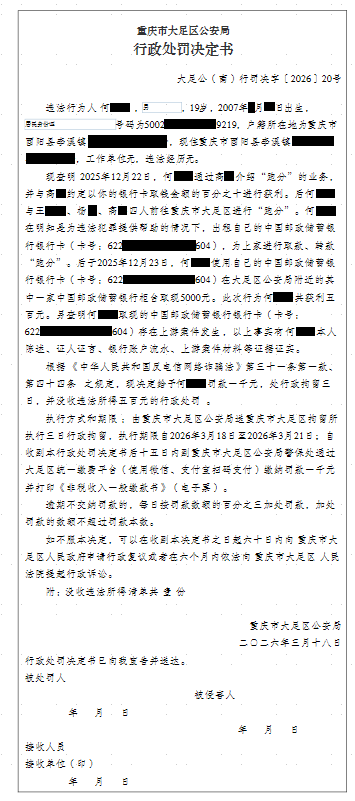 大足公(南)行罚决字〔2026〕20号
