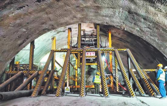 机械轰鸣,焊花飞溅……2月26日,在中梁山隧道施工现场,中铁十二局成渝中线重庆段站前1标分部经理祝俊甲手持探照灯,眉头紧蹙、目不斜视地紧盯掌子面岩壁,“隧道内一丝风吹草动都不可小觑,随时可能发生岩土沉降。”