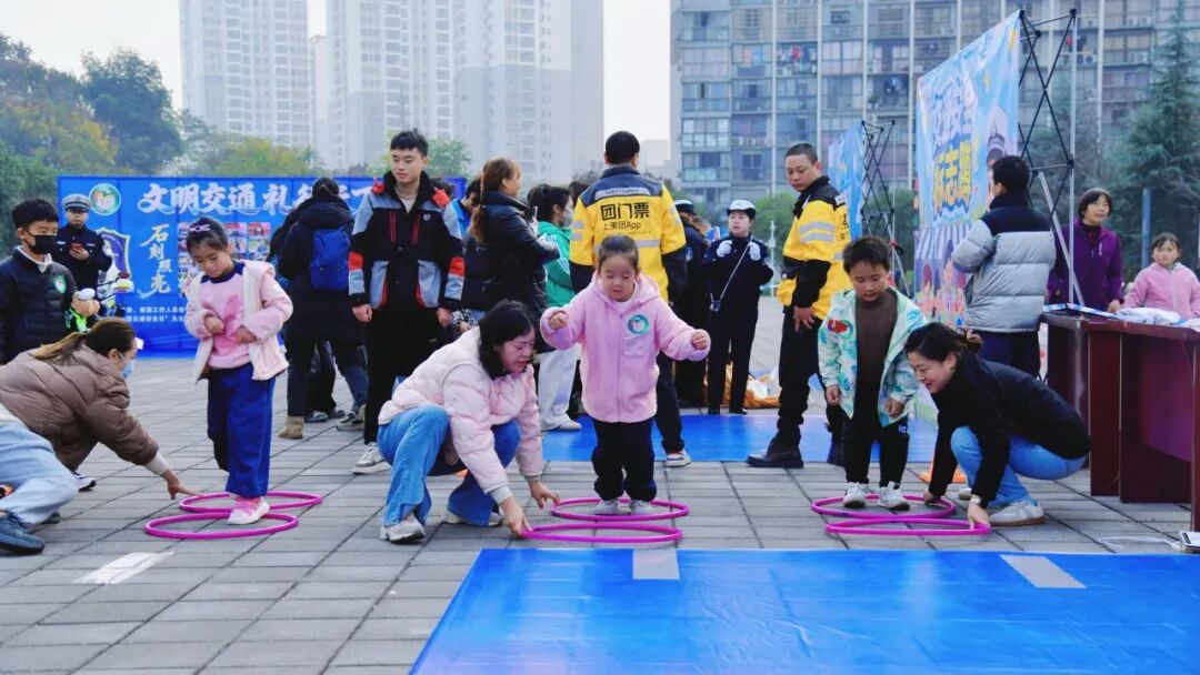 活动采取游园的形式开展,现场设置了交通知识我来答、交通危险我来认、交通安全“圈”起来、石刻照亮微光成炬、交通安全我来“箭”证、交通安全“接力”跳、交通安全“标志蹲”等7个宣传区域。