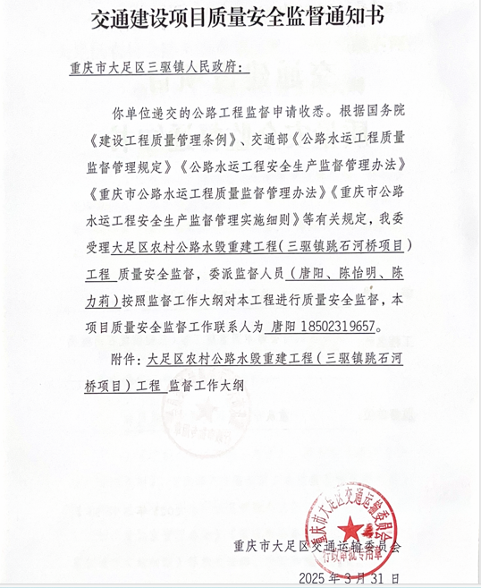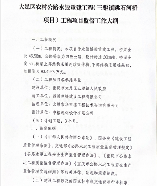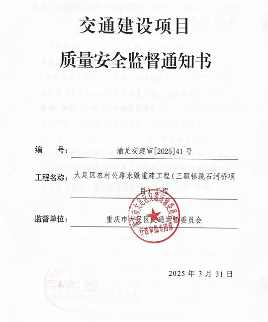 大足区农村公路水毁重建工程(三驱镇跳石河桥项目)工程