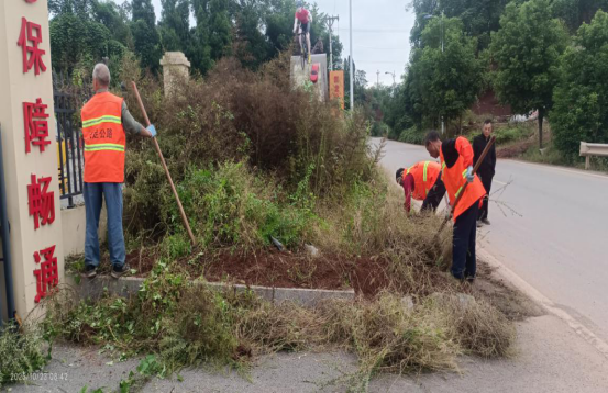 清理路边杂草,筑牢道路“安全防线”。作业过程中,养护工人携带镰刀、锄头等工具,秉持精细化养护理念,针对部分路段杂草根系较深、清理难度大的情况,通过“人工+机械”结合的方式,严格按照规范操作,确保除草作业高效、彻底。同时,对修剪后的杂草碎屑及时清运,确保不留死角、不留隐患,保持了路容路貌的整洁美观。
