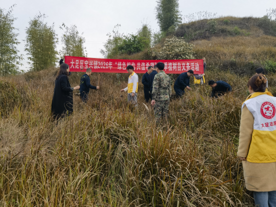 3月11-13日,大足区宝兴镇干群在旗团村棺材石坎下坡与棺石水库旁的坡头、山地组织开展了“绿色相约、共值希望”志愿植树活动现场。李光彬 供图