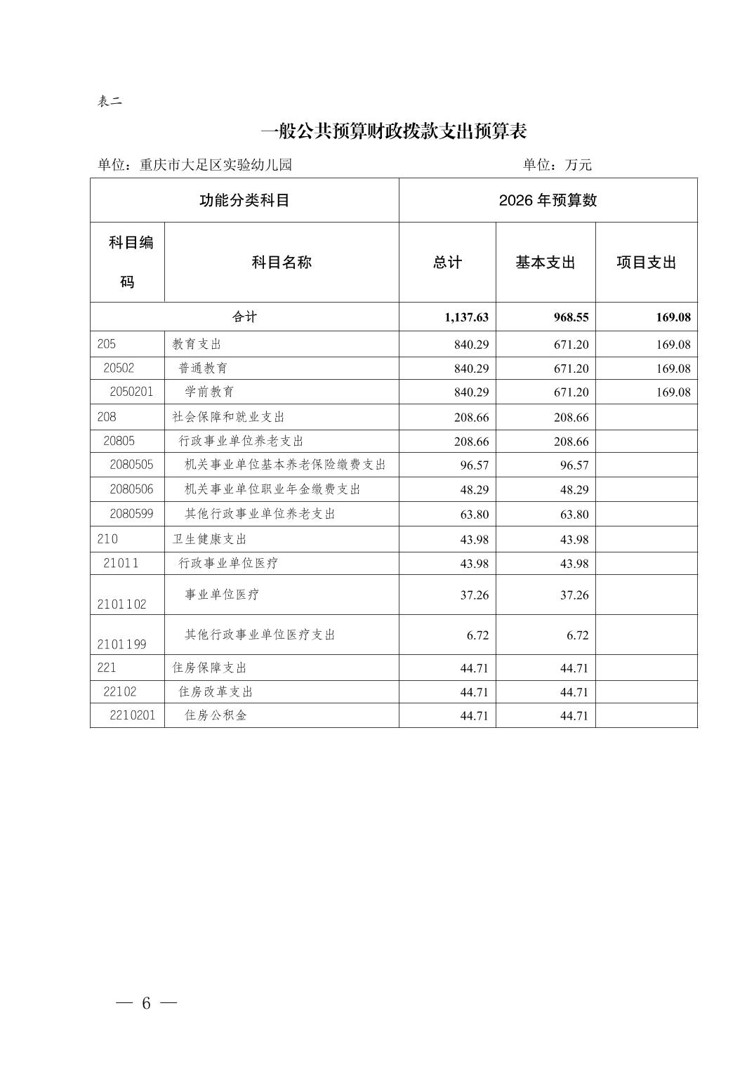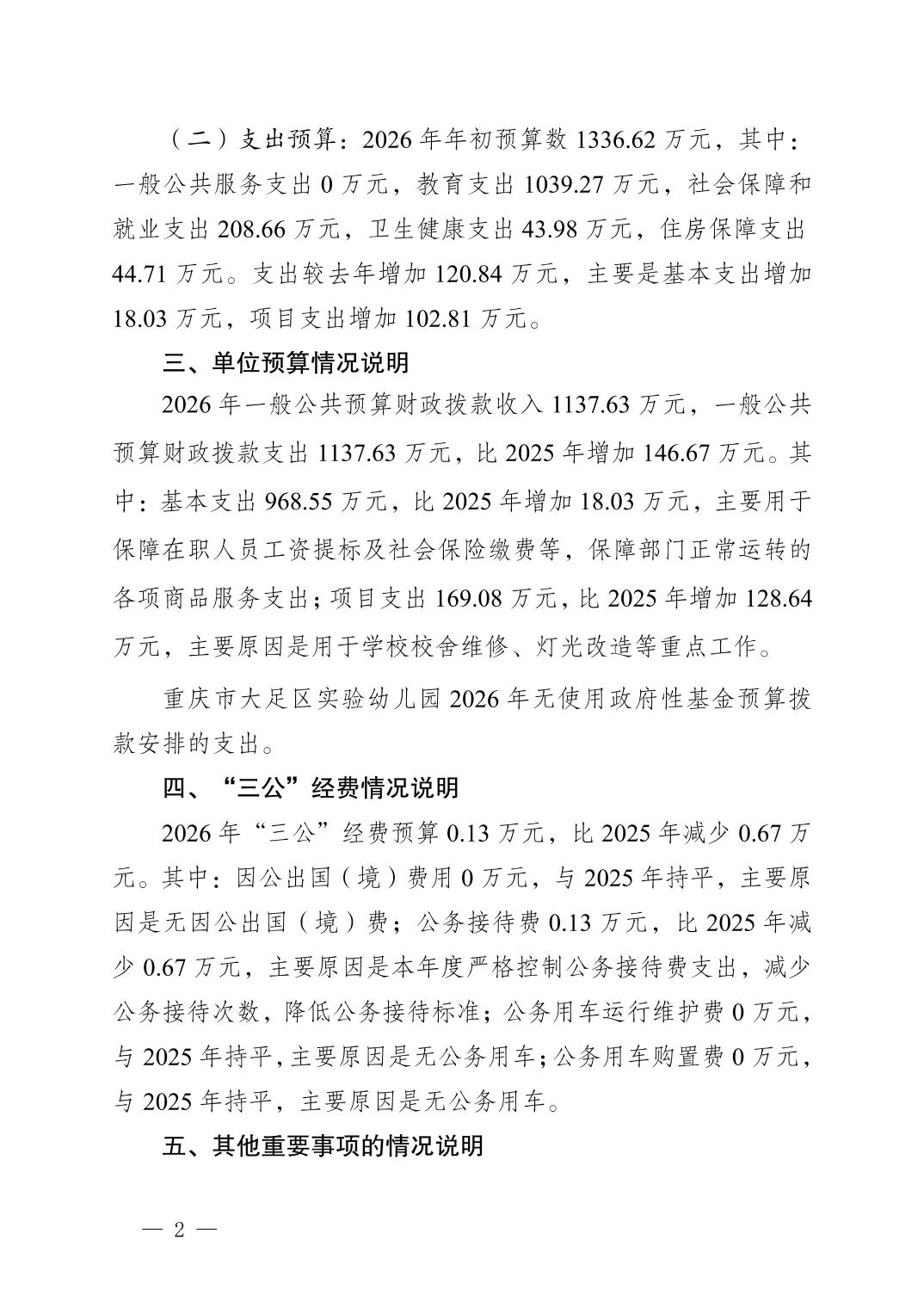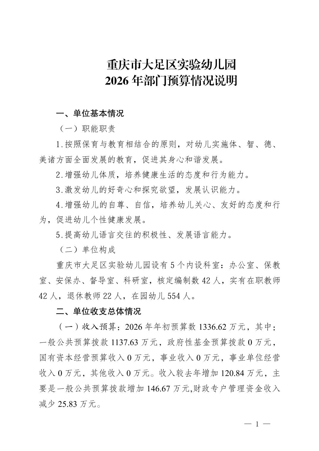 重庆市大足区实验幼儿园2026年部门预算情况说明