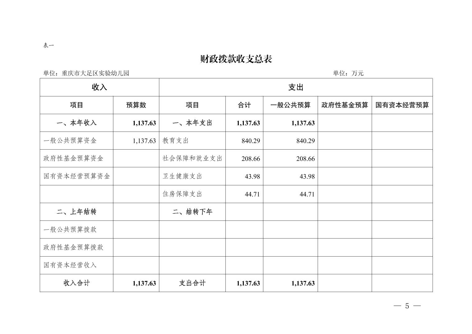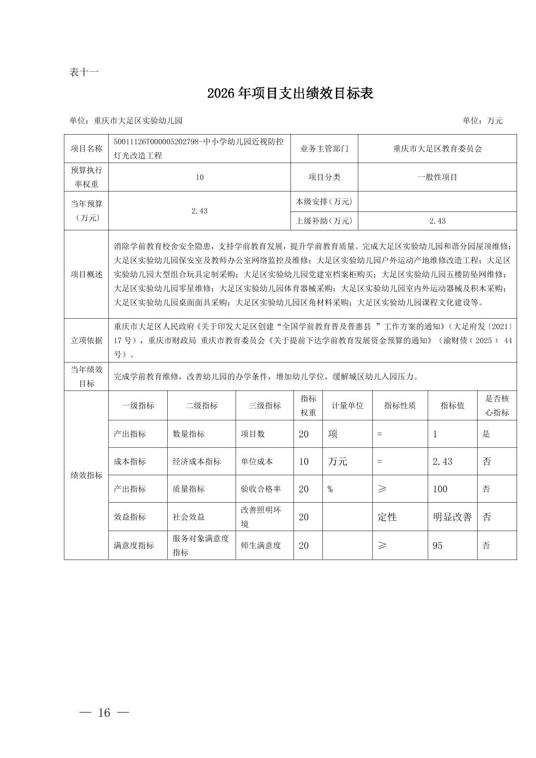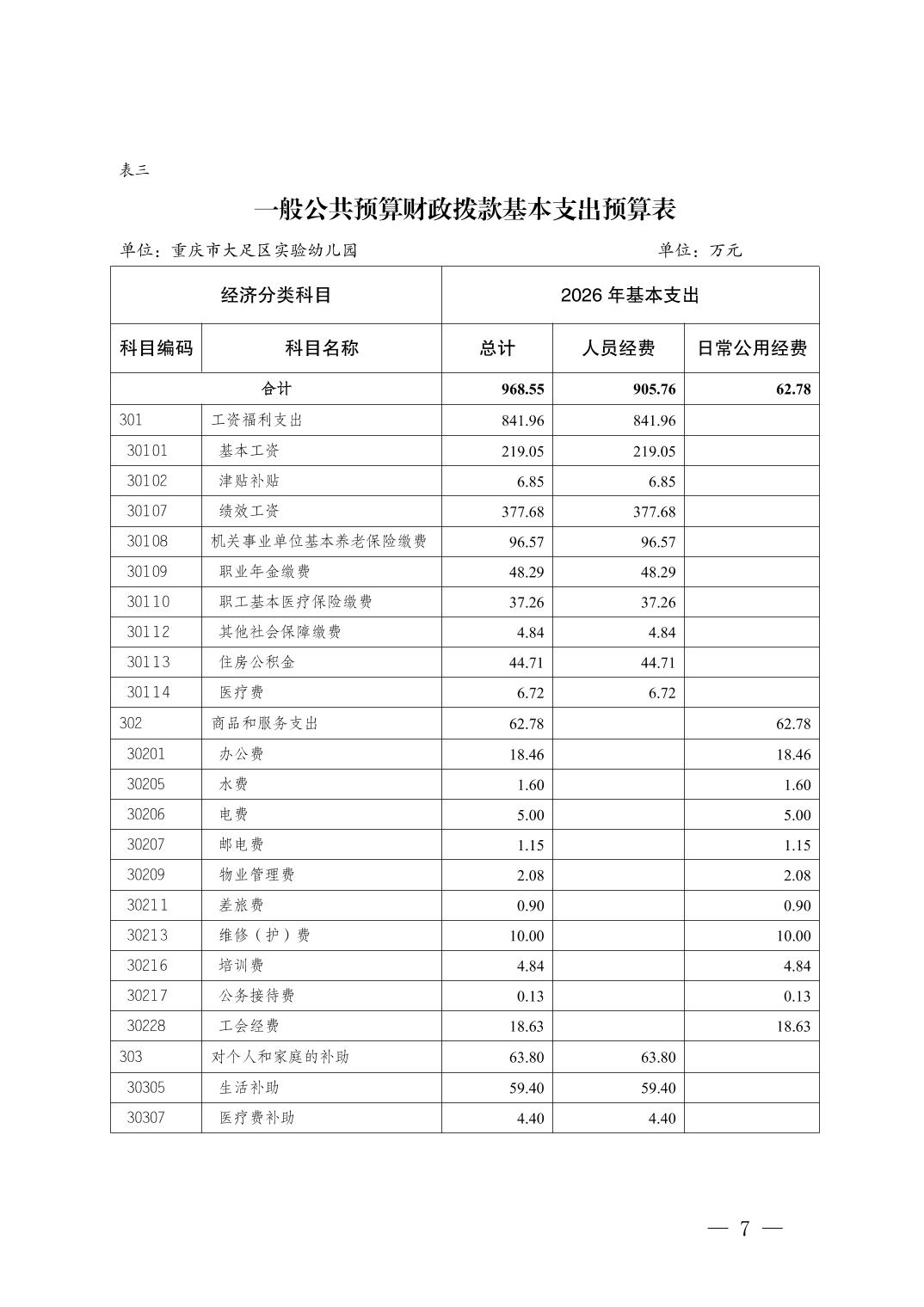 重庆市大足区实验幼儿园2026年部门预算情况说明