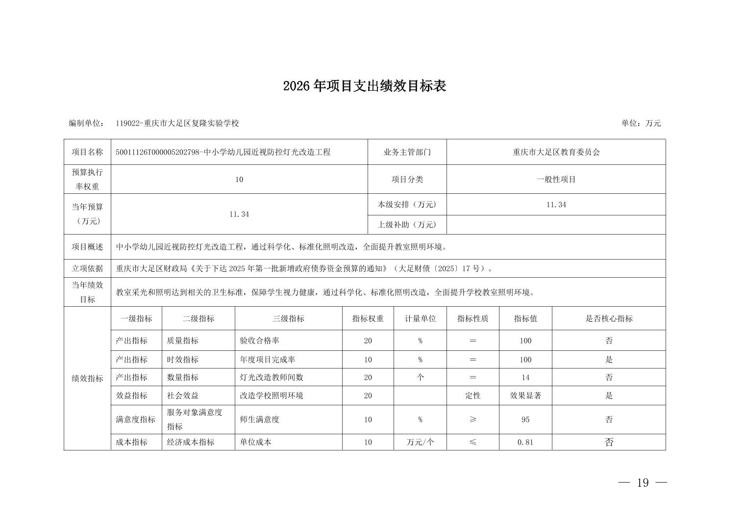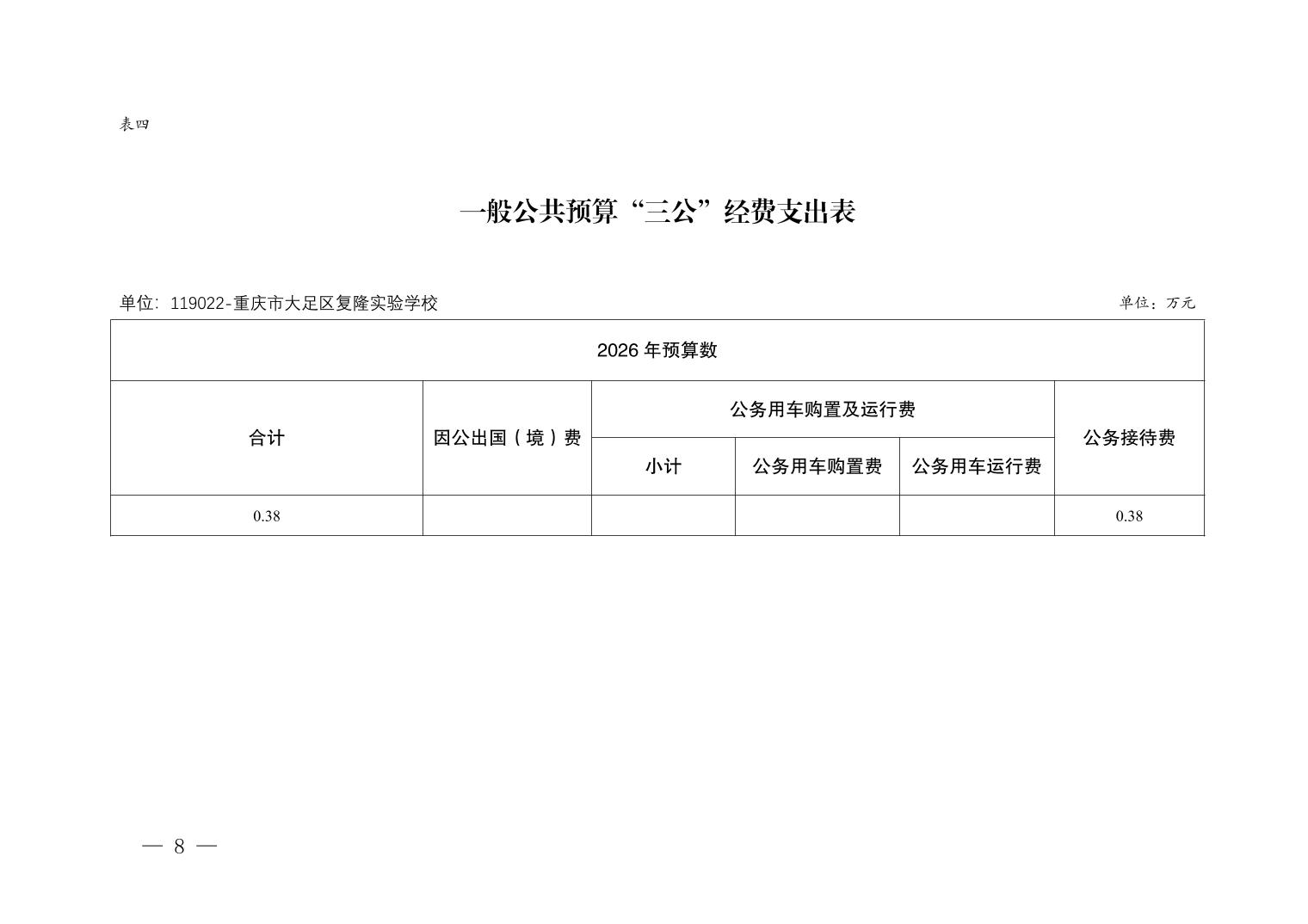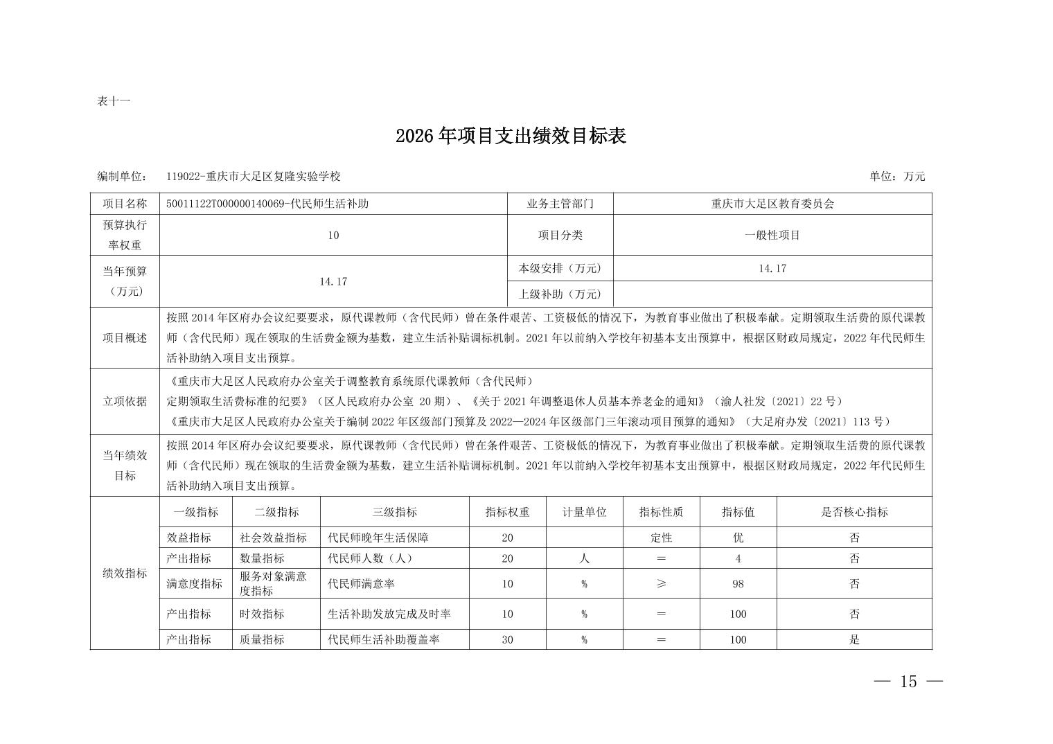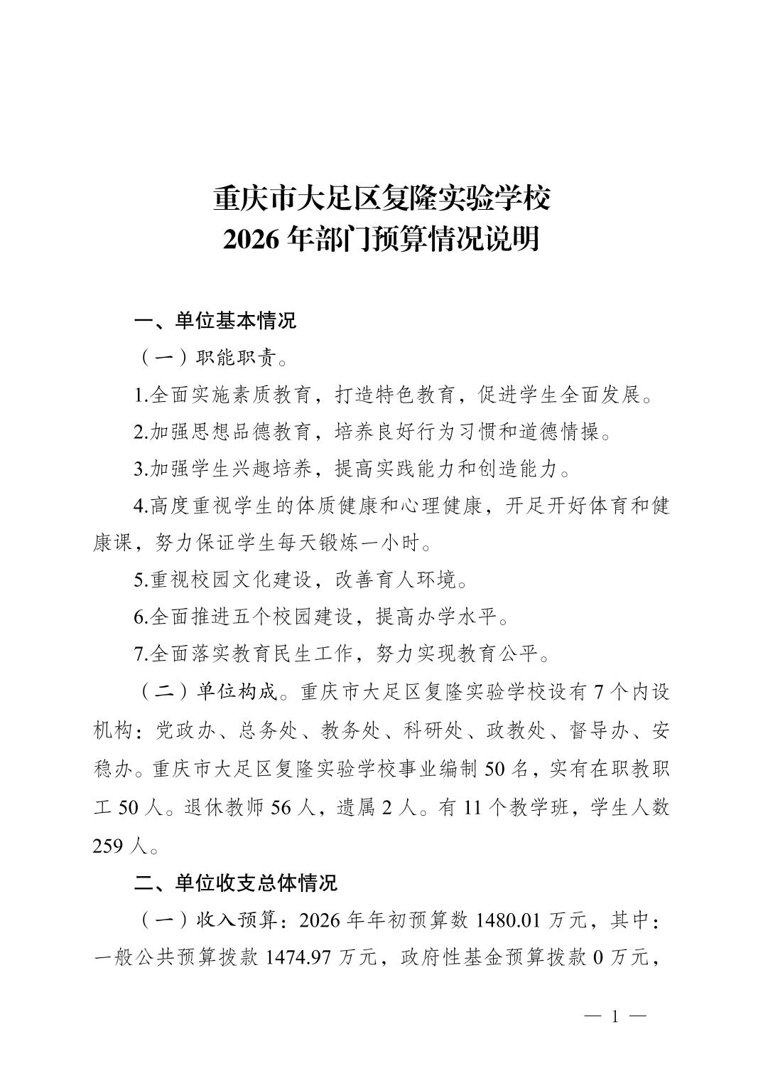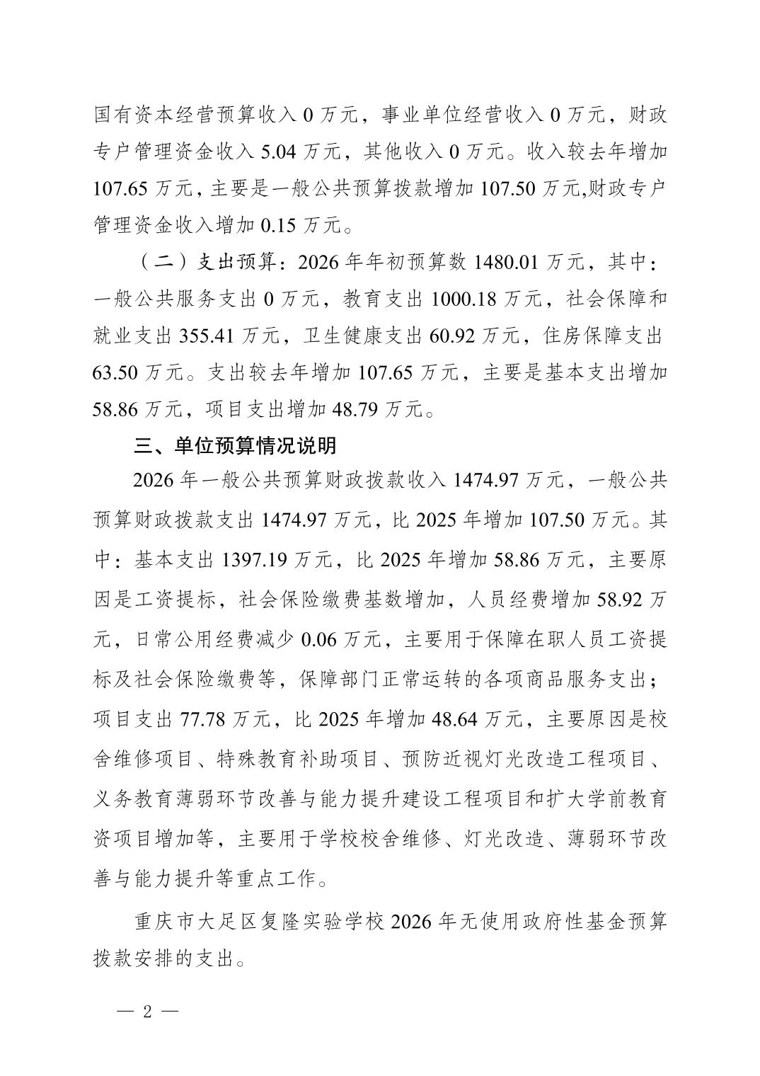 重庆市大足区复隆实验学校2026年部门预算情况说明