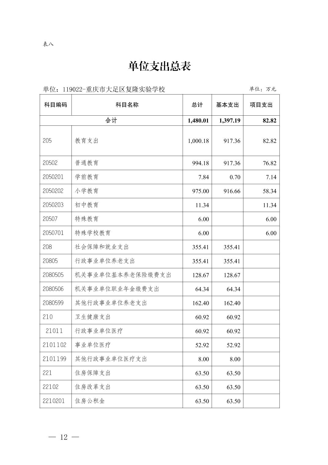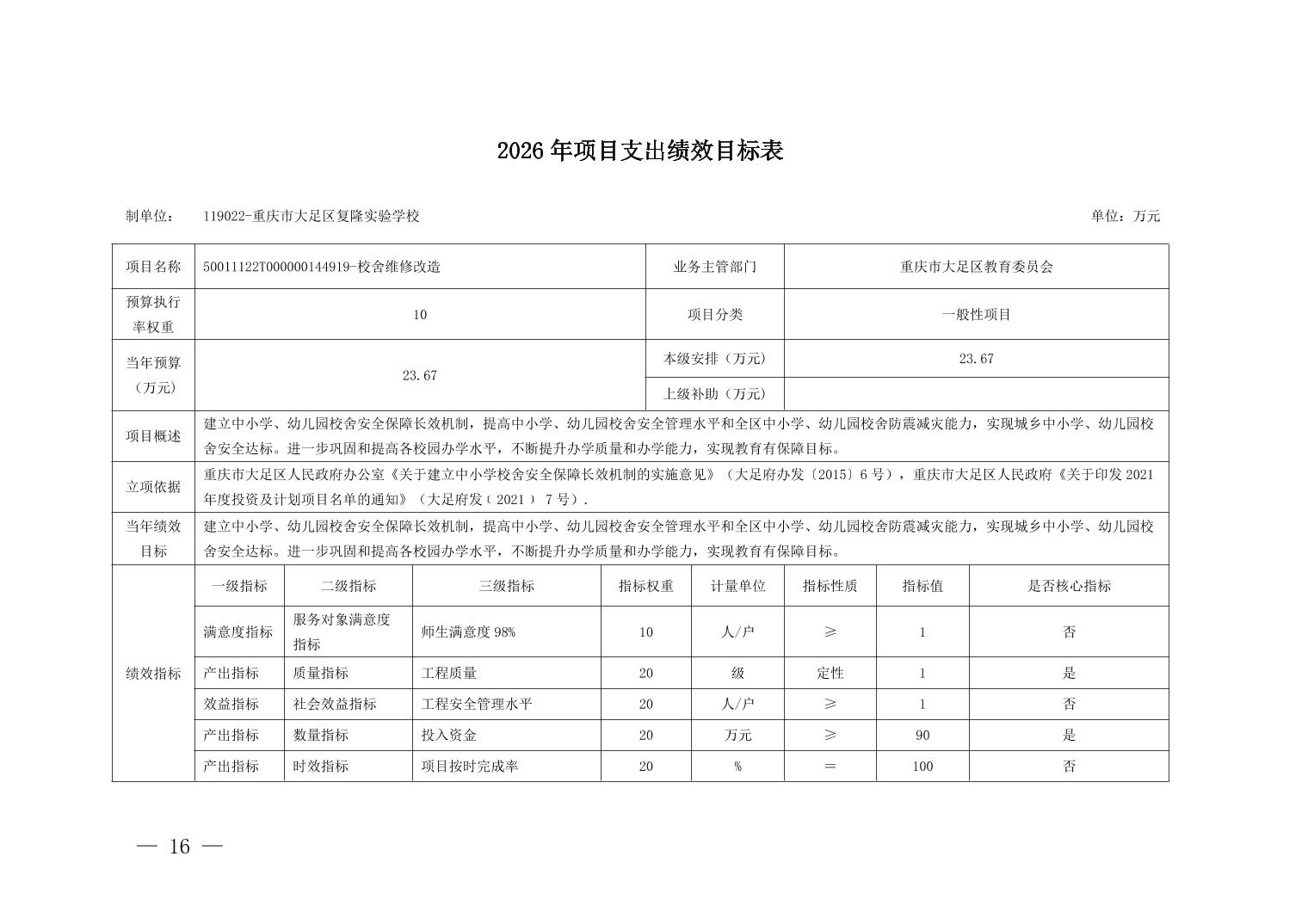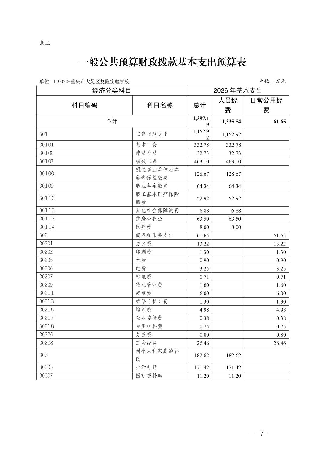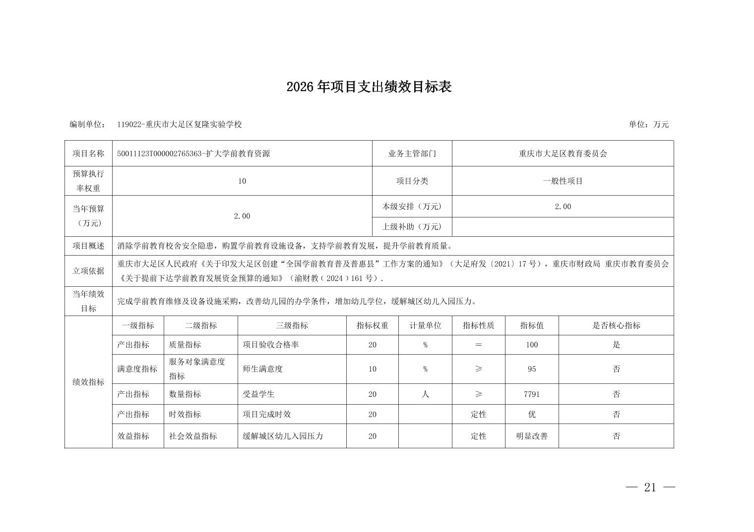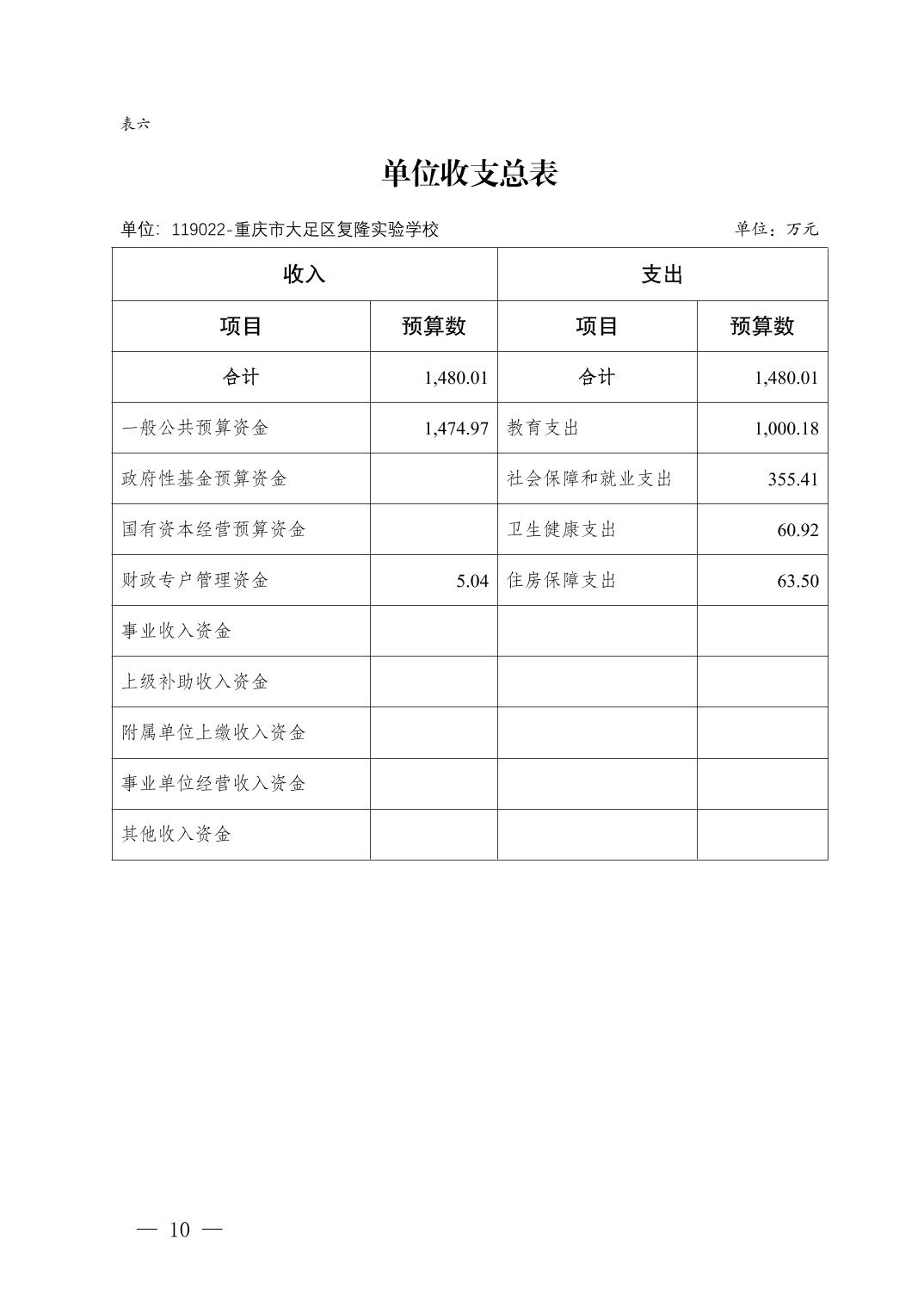 重庆市大足区复隆实验学校2026年部门预算情况说明