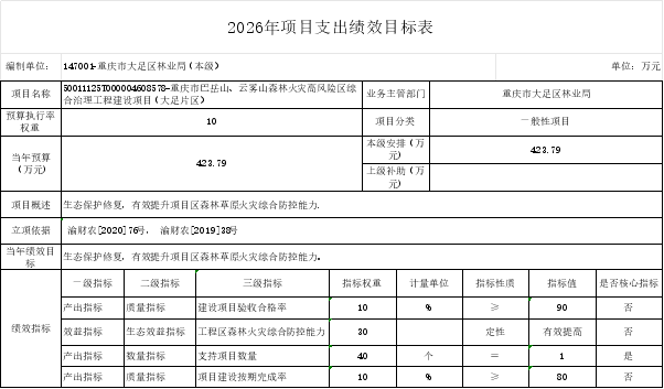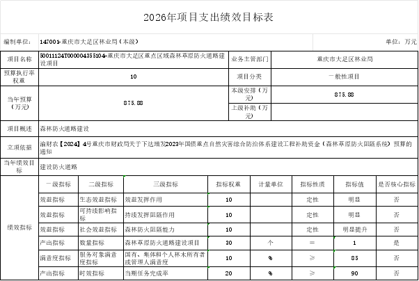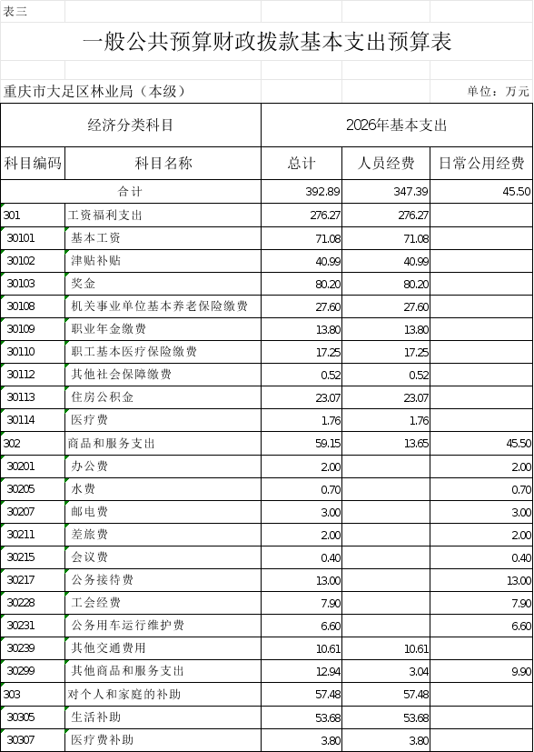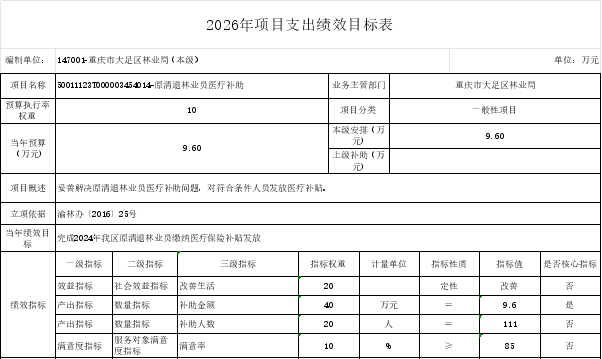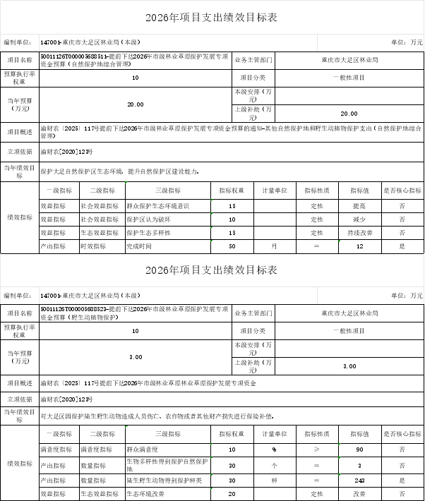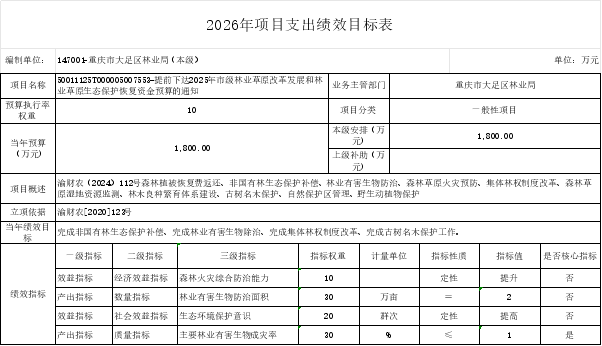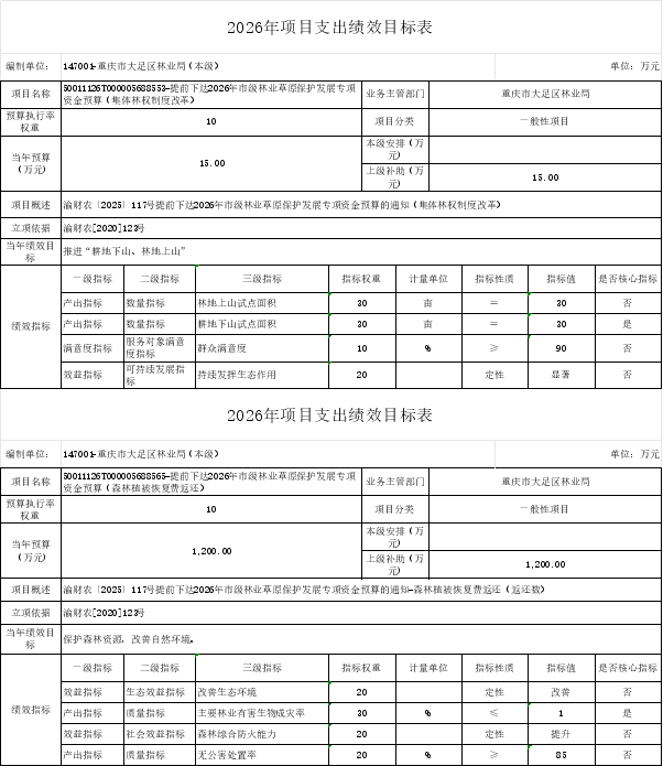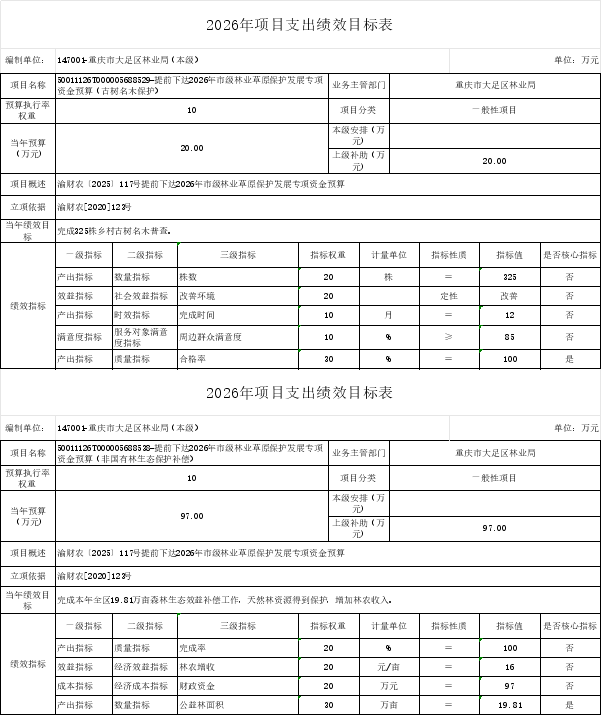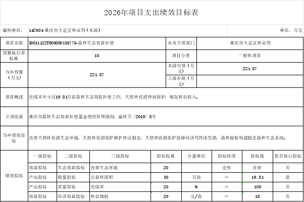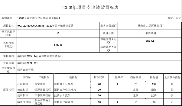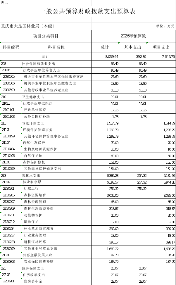 重庆市大足区林业局(本级)2026年部门预算情况说明