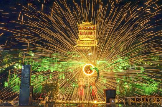 第五站:到昌州古城品非遗美食、看非遗展演;到香国公园妙善湖沉浸式体验夜龙舟与非遗舞龙的创新融合表演;