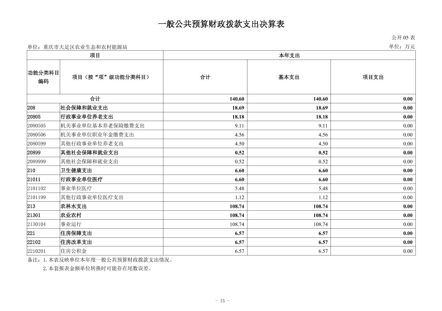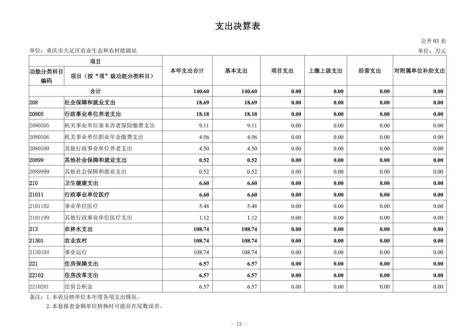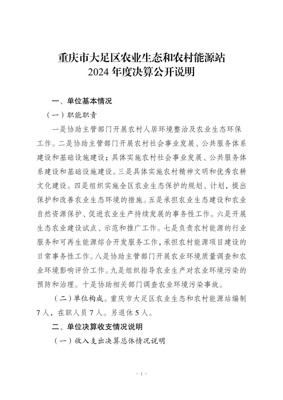 重庆市大足区农业生态和农村能源站2024年决算公开说明