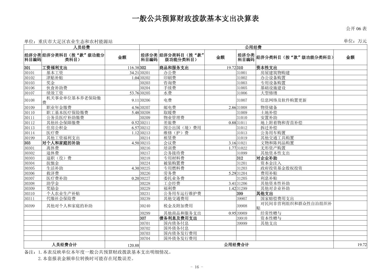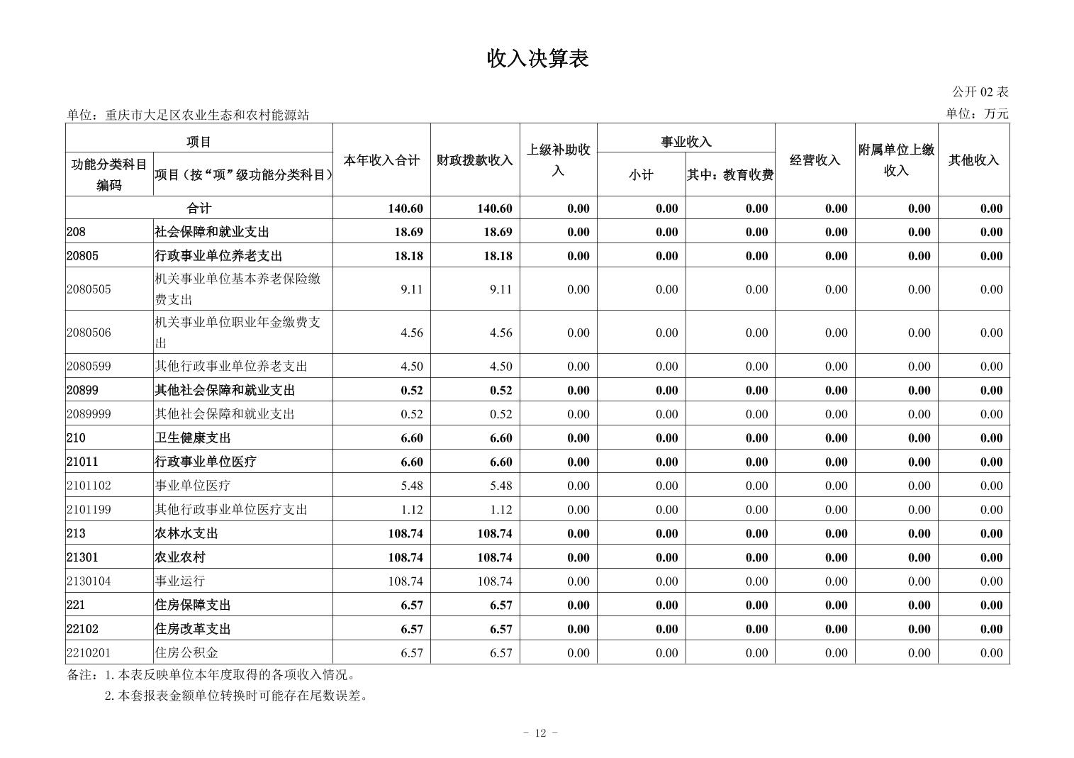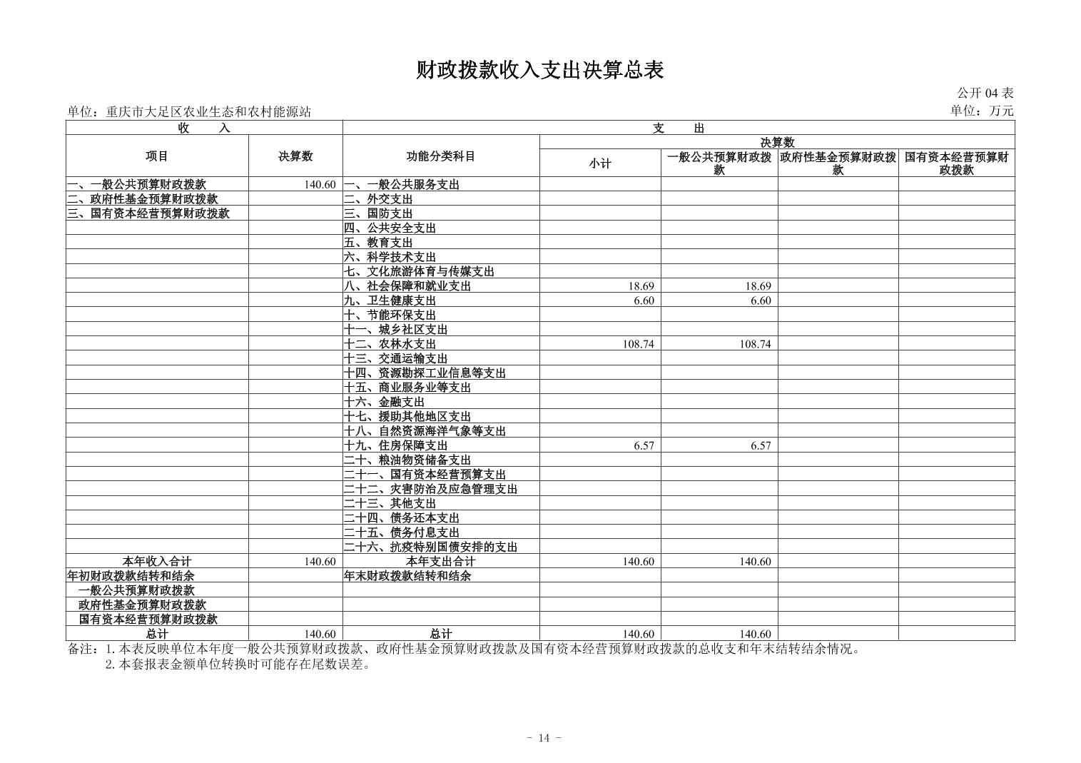 重庆市大足区农业生态和农村能源站2024年决算公开说明
