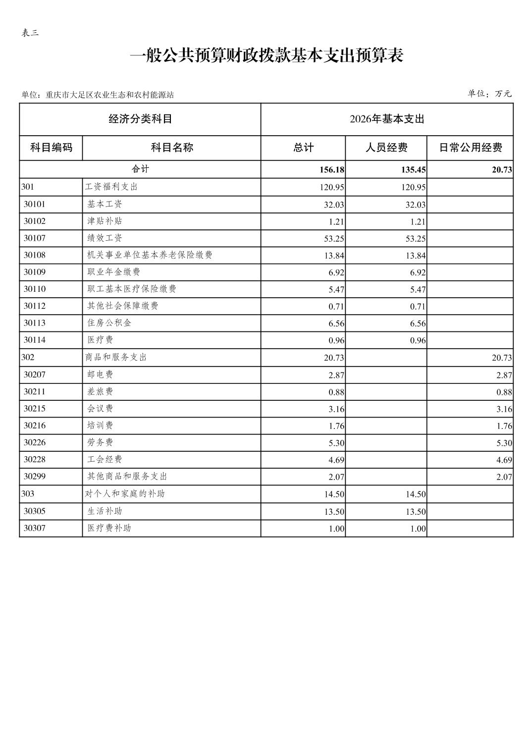 重庆市大足区农业生态和农村能源站2026年部门预算情况说明