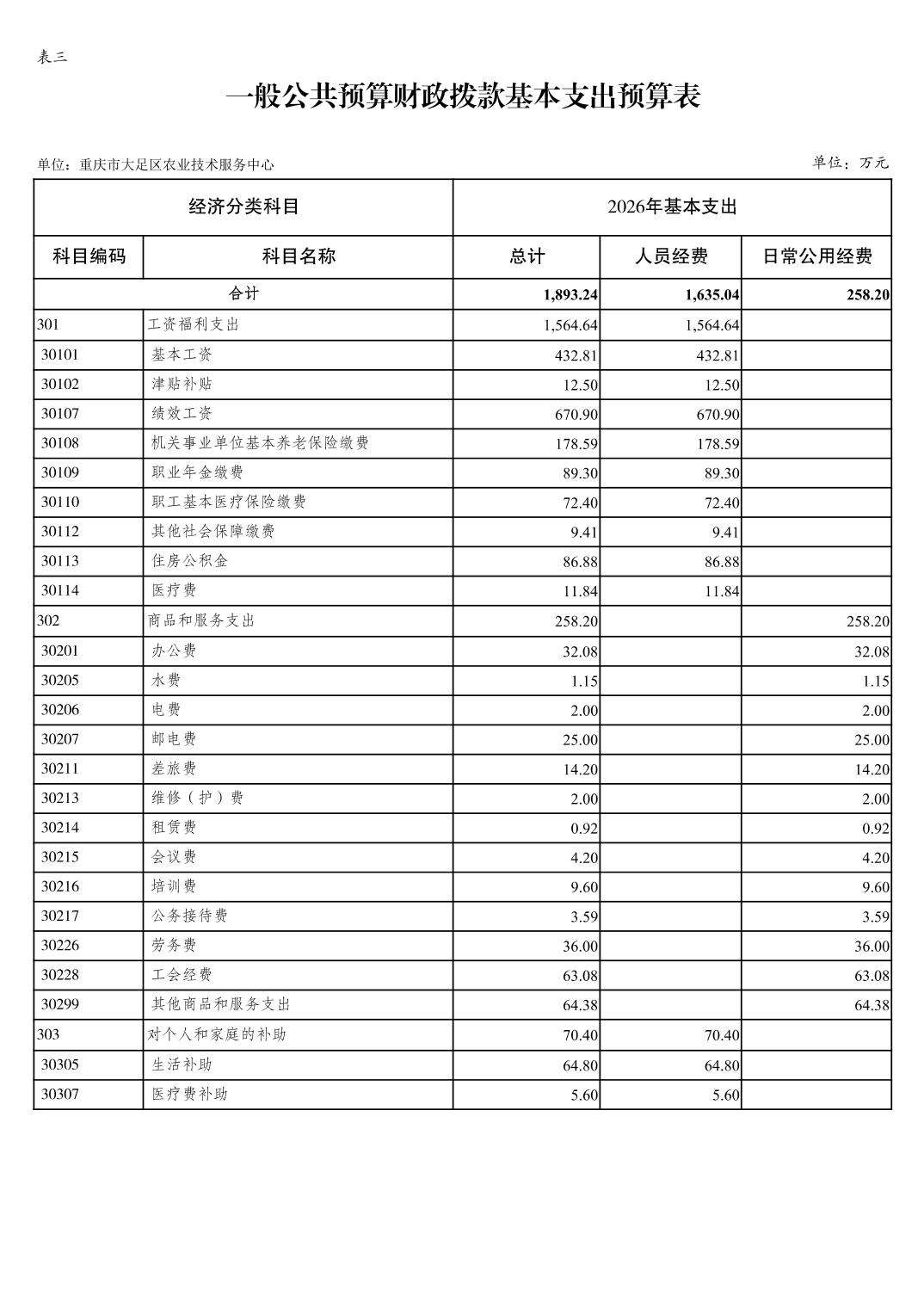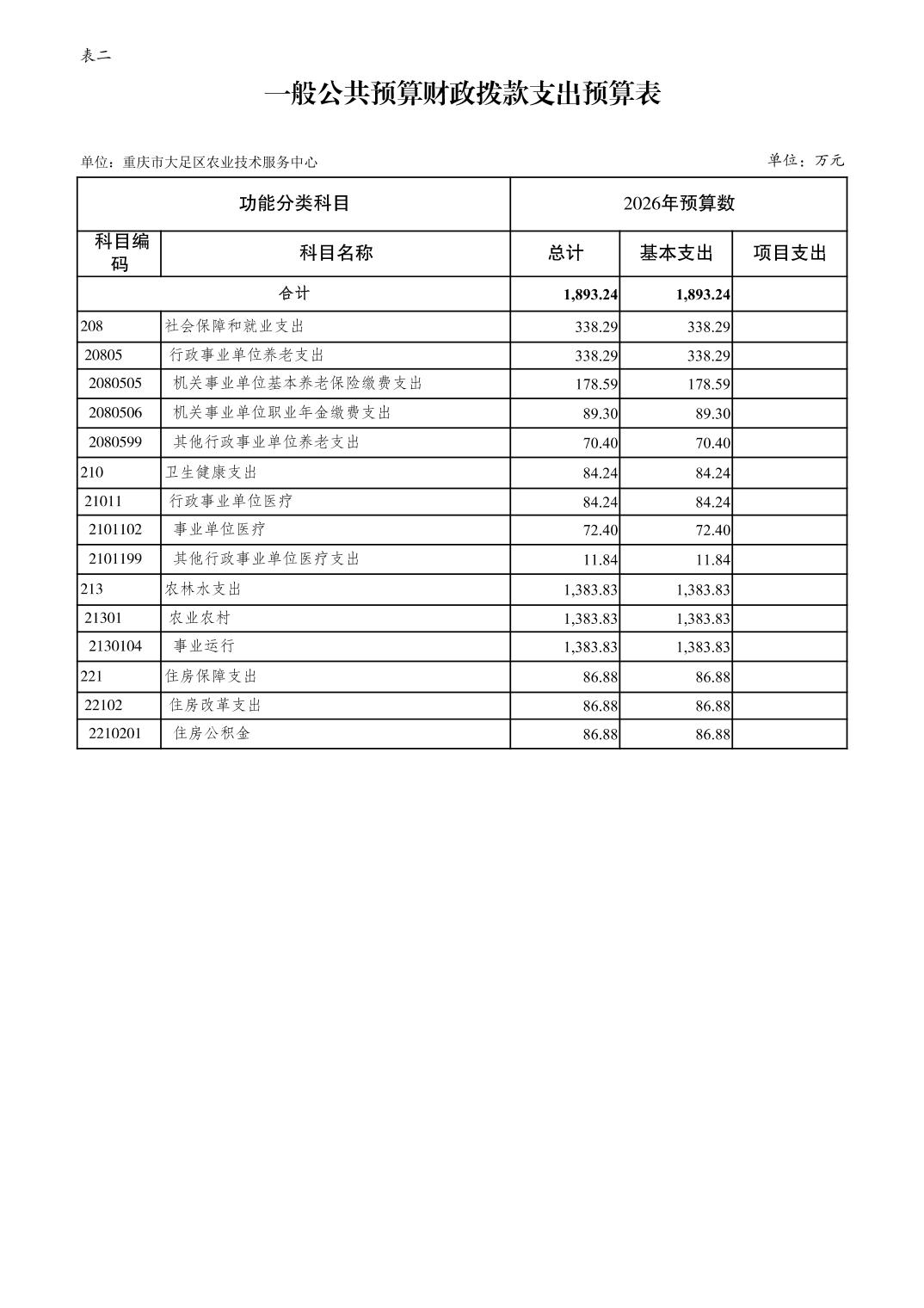 重庆市大足区农业技术服务中心2026年部门预算情况说明