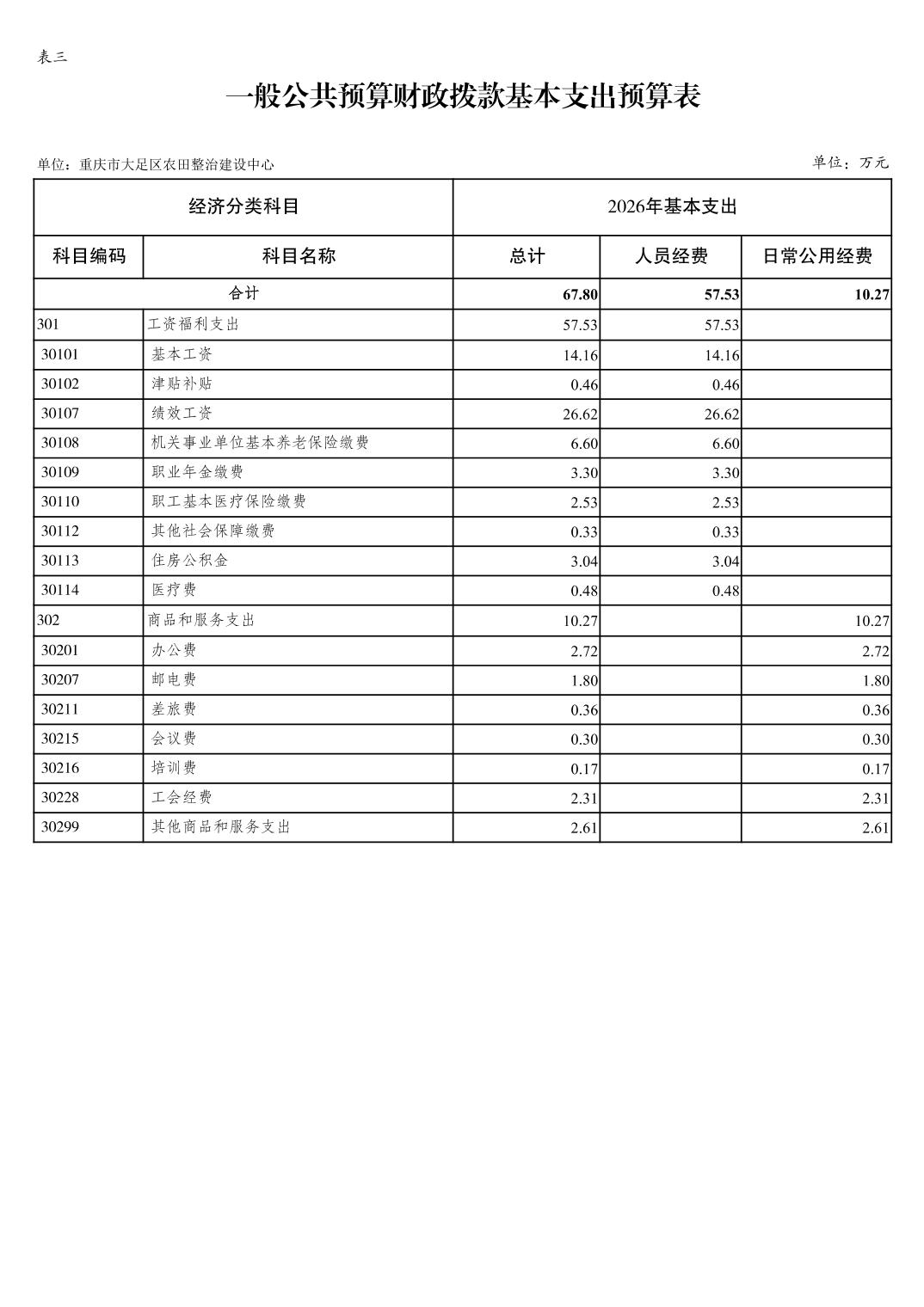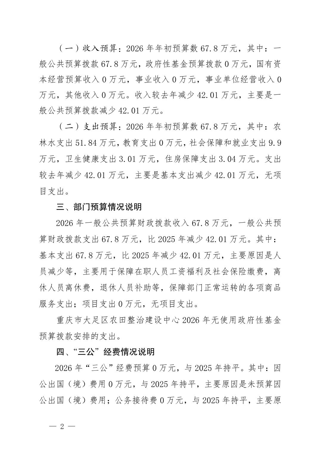 重庆市大足区农田整治建设中心2026年部门预算情况说明