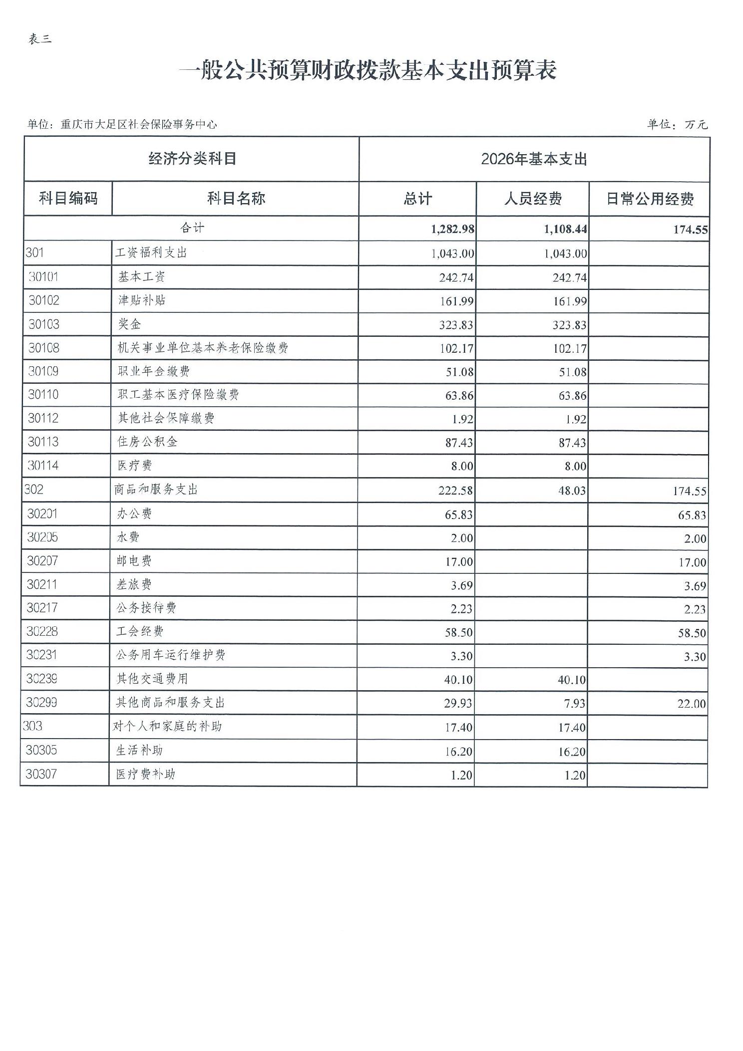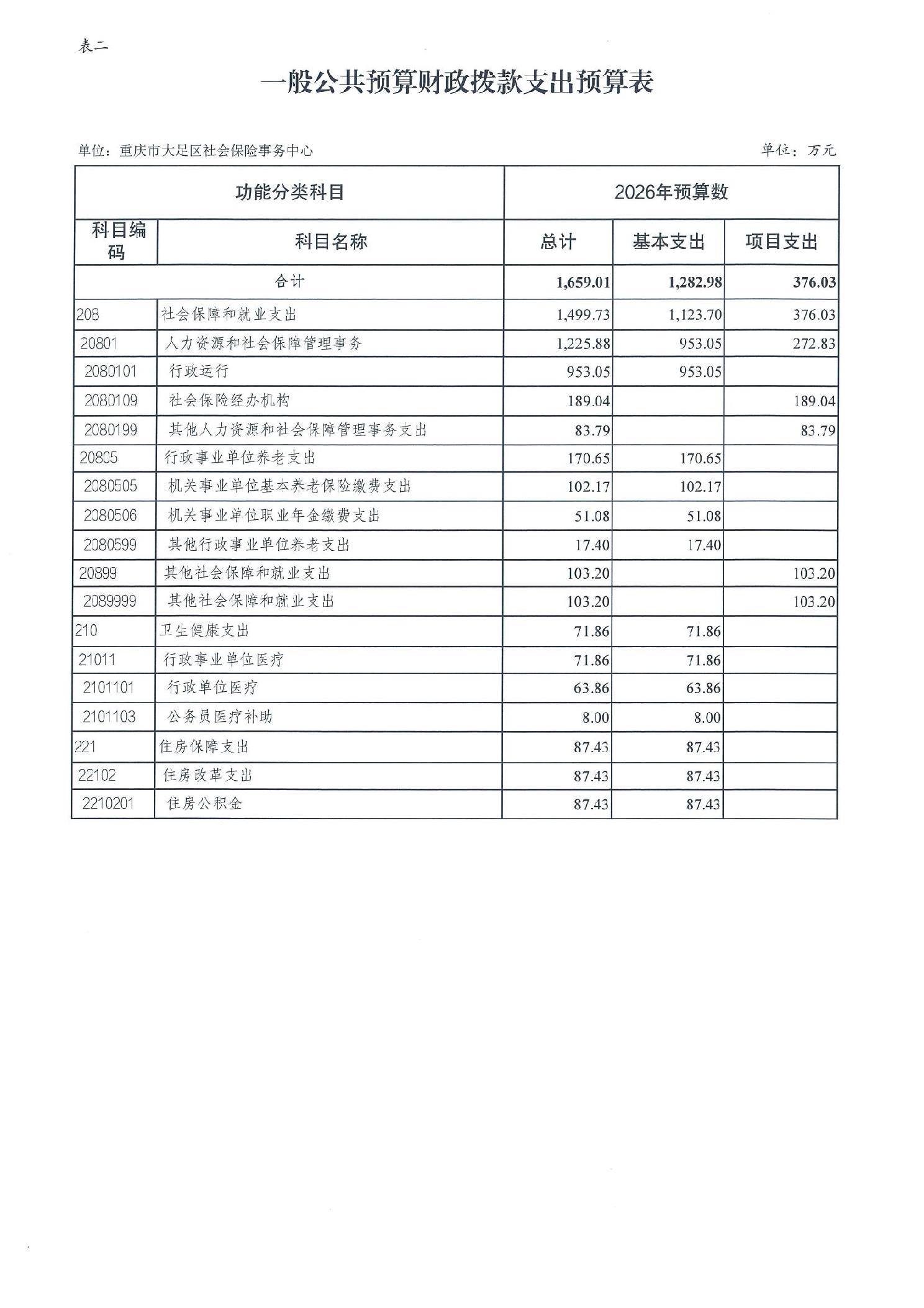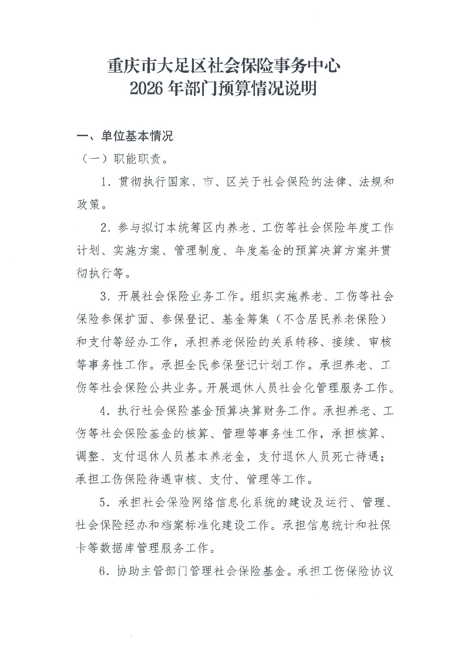 重庆市大足区社会保险事务中心2026年部门预算情况说明