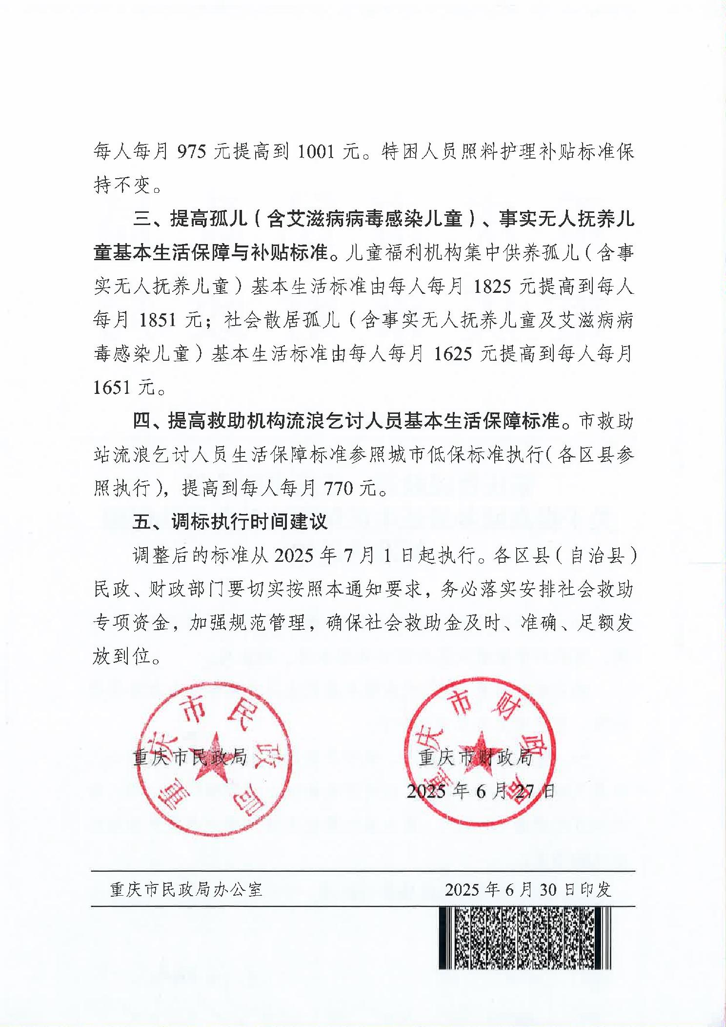 重庆市民政局 重庆市财政局关于提高城乡最低生活保障等社会救助保障标准的通知