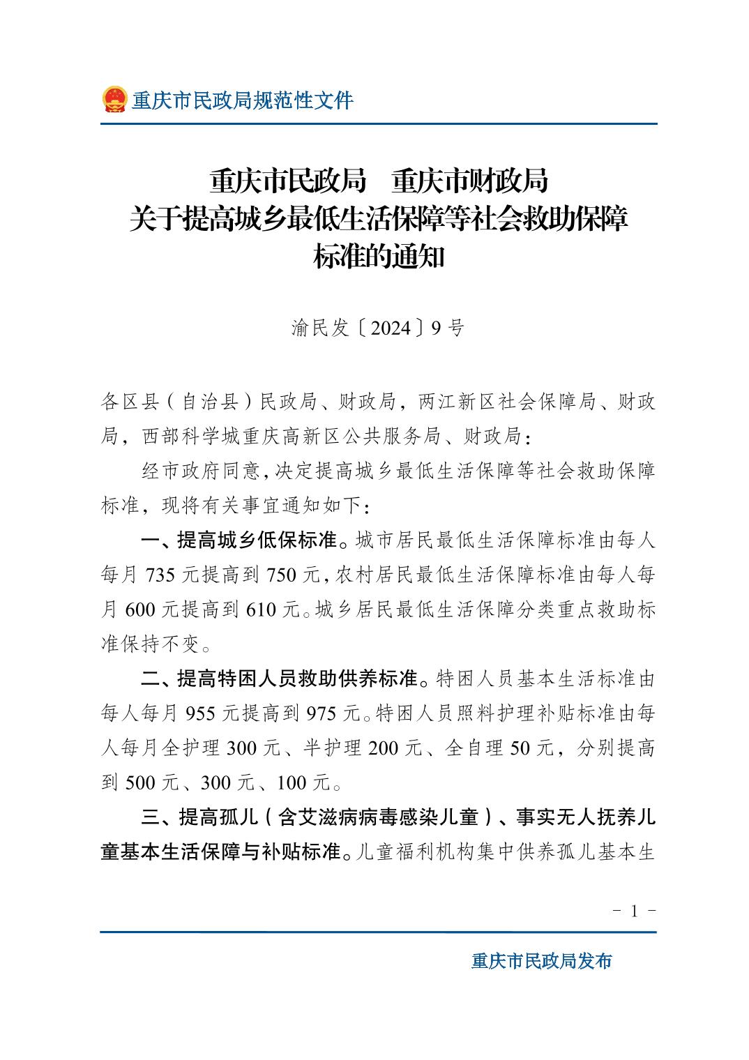 重庆市民政局 重庆市财政局关于提高城乡最低生活保障等社会救助保障标准的通知