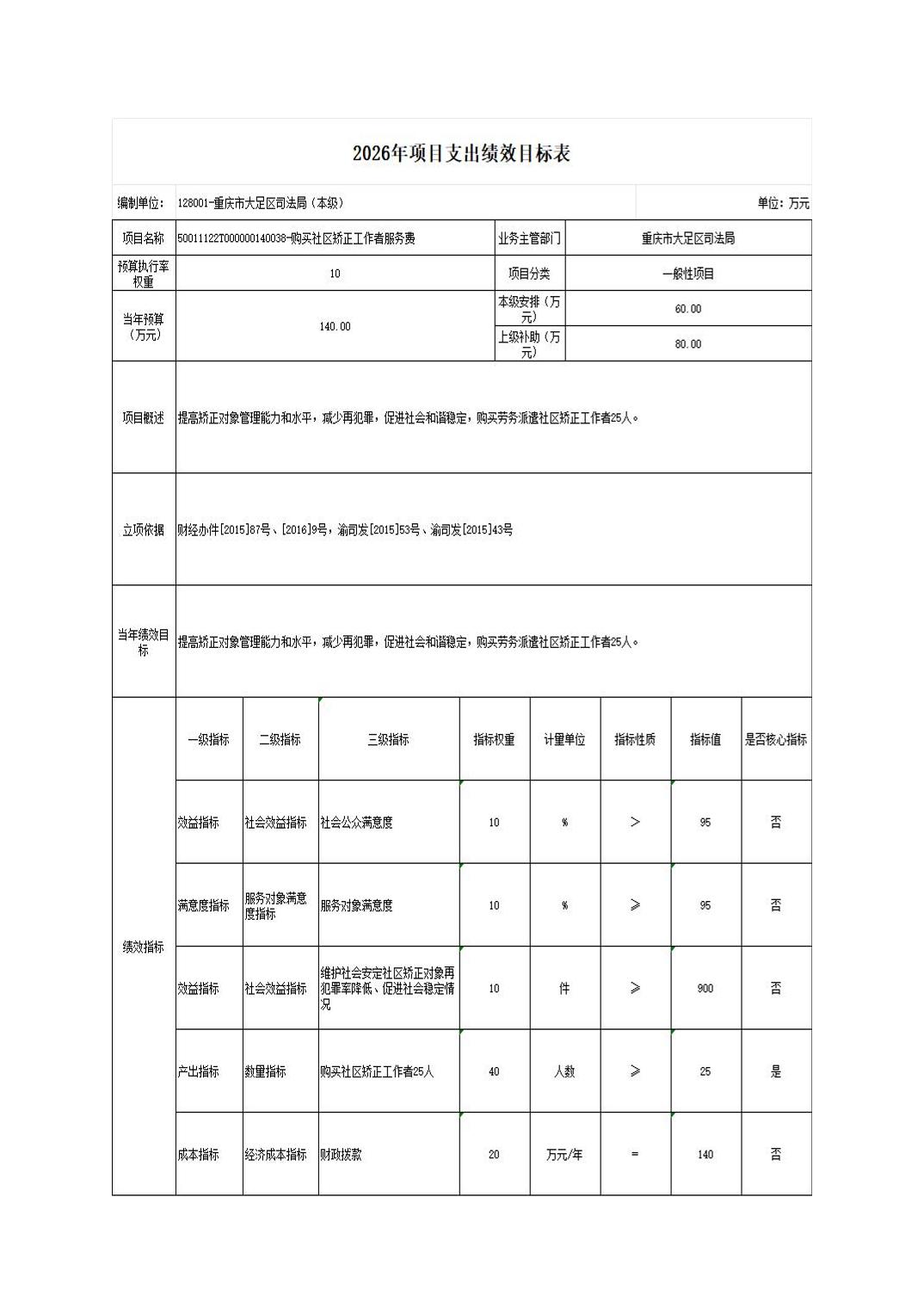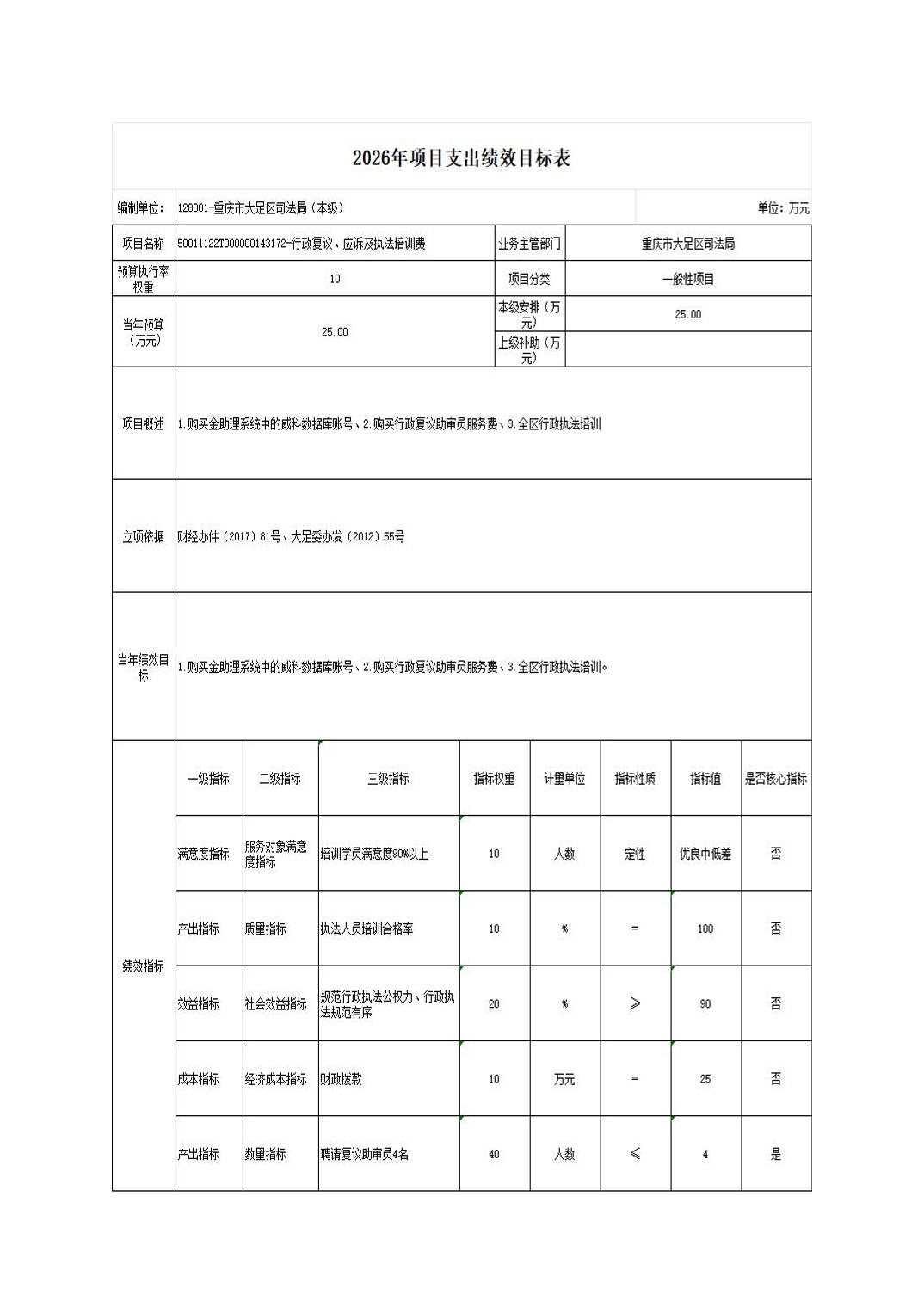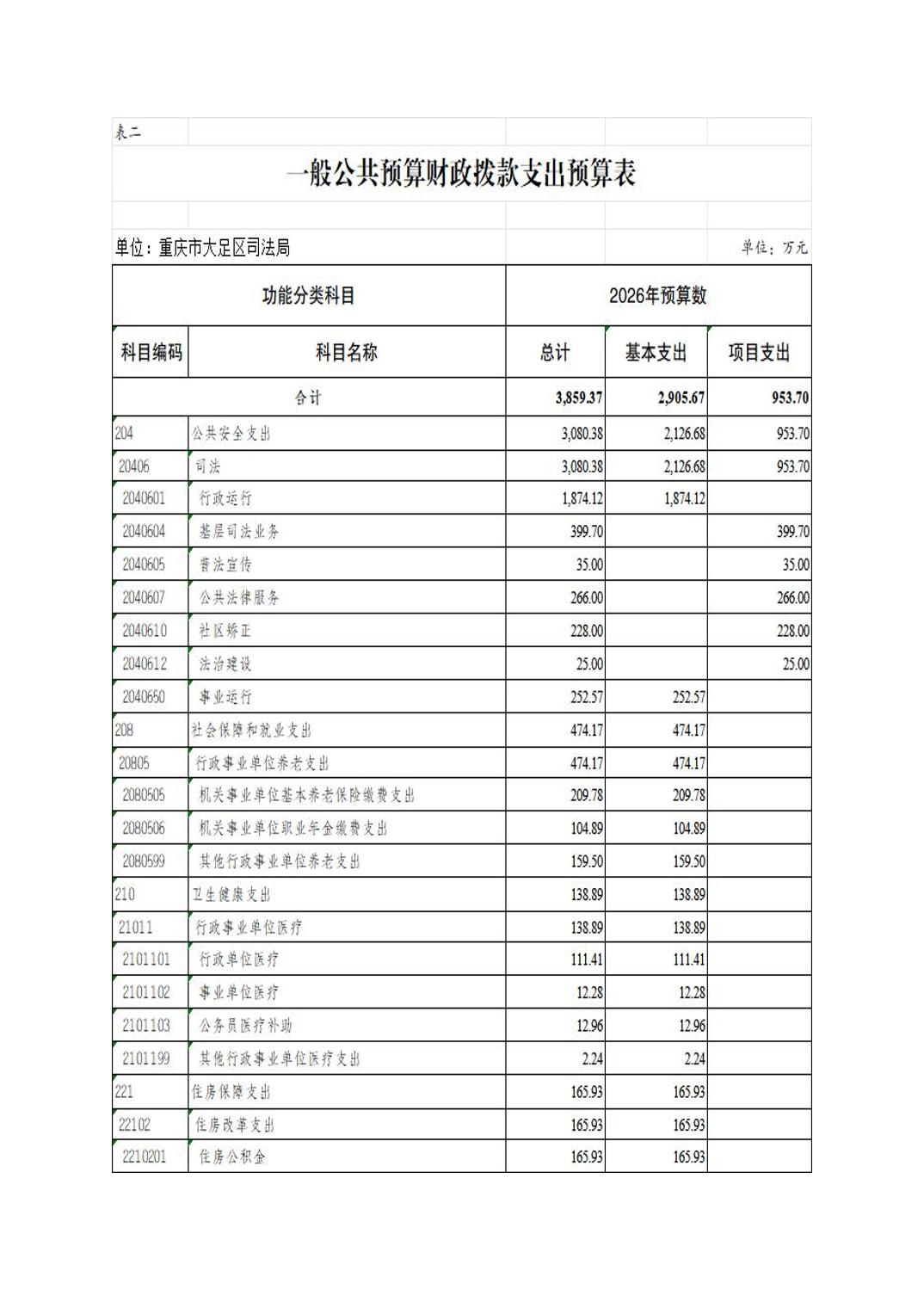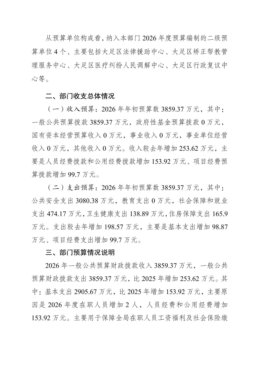 重庆市大足区司法局 2026年部门预算情况说明