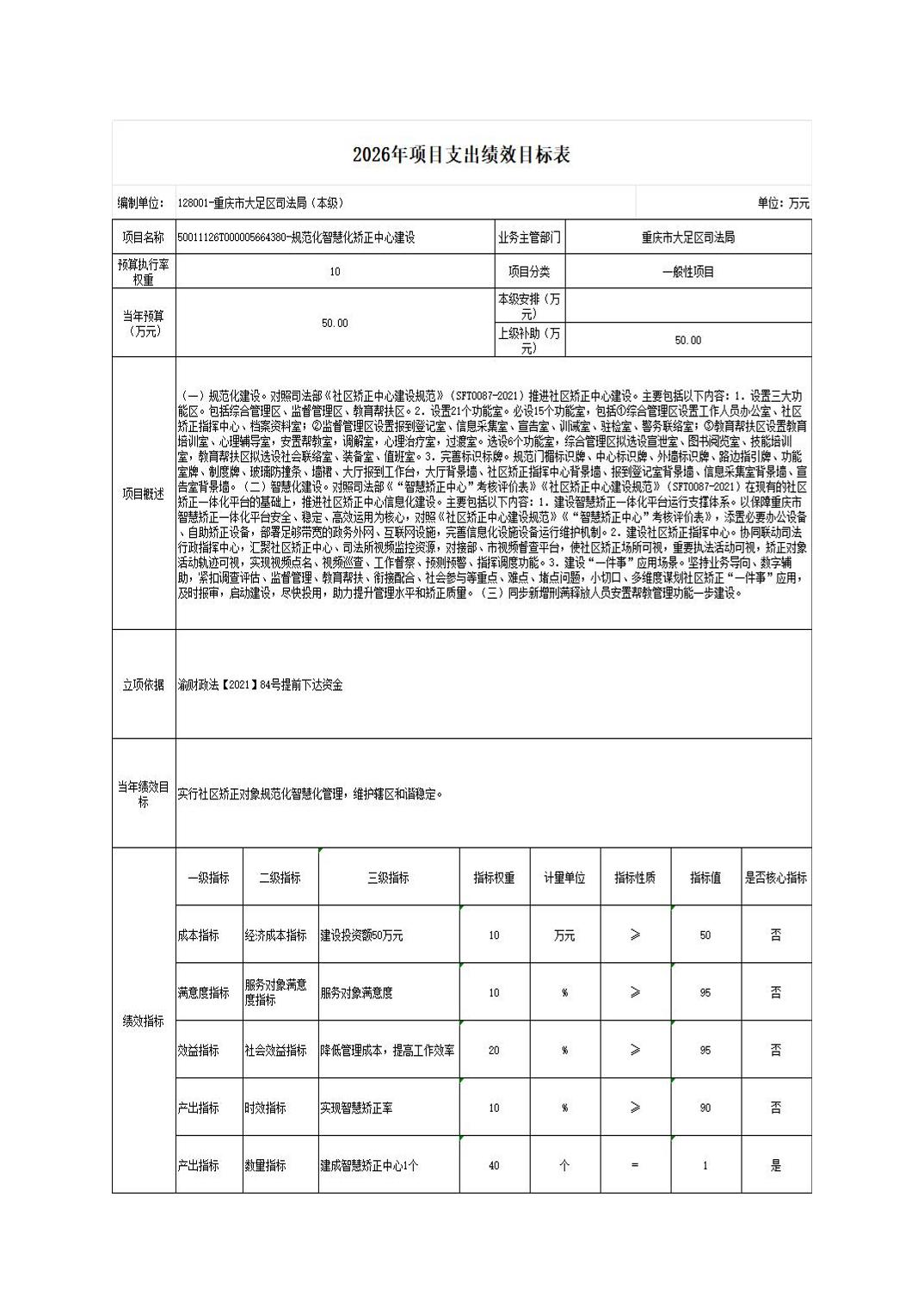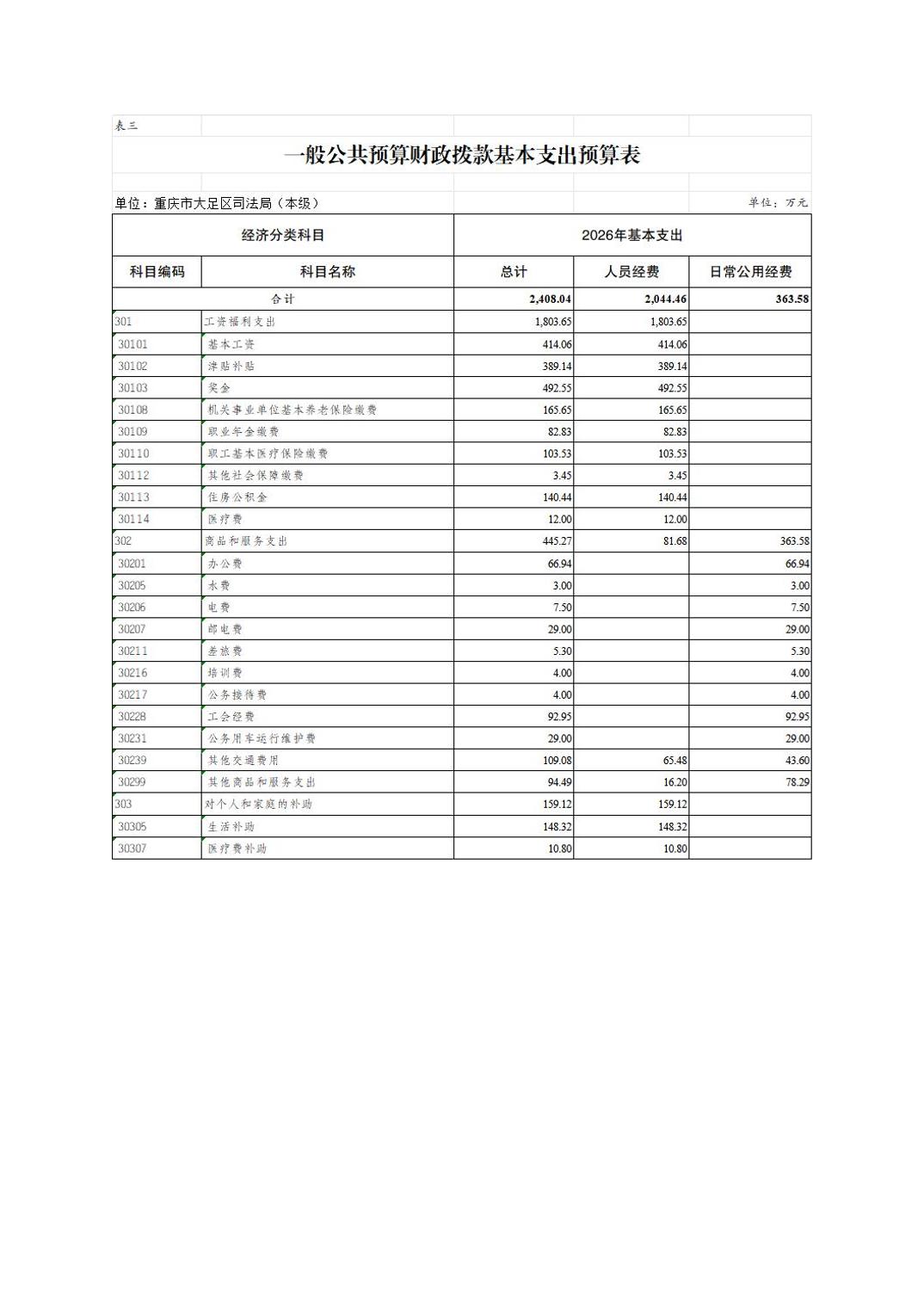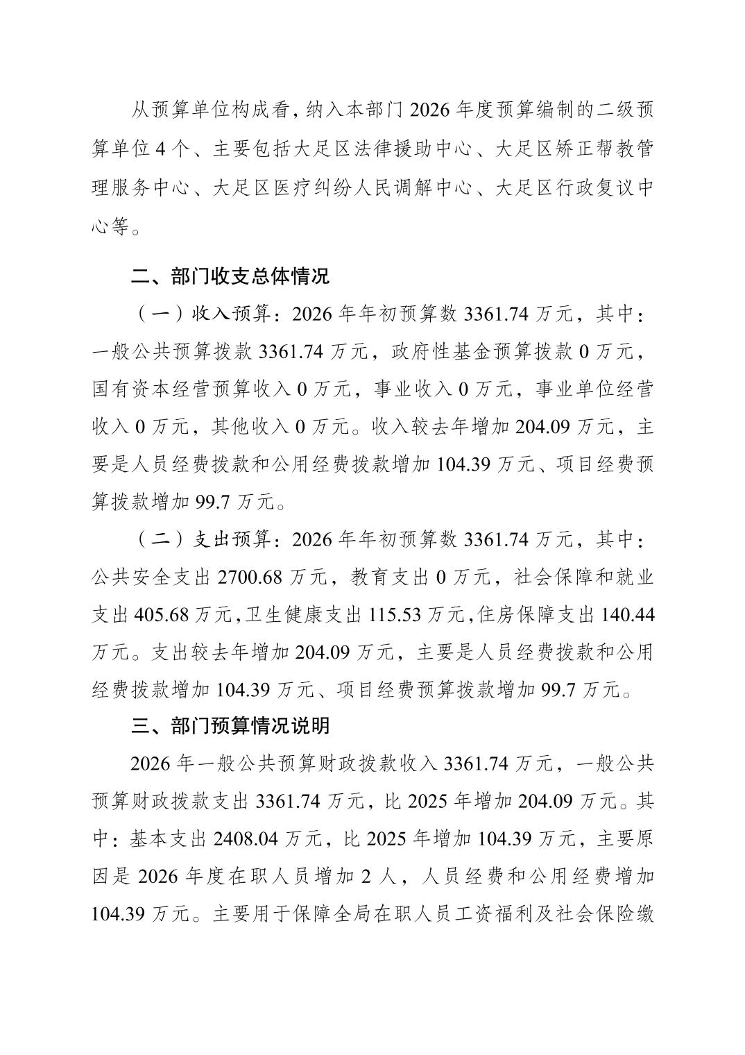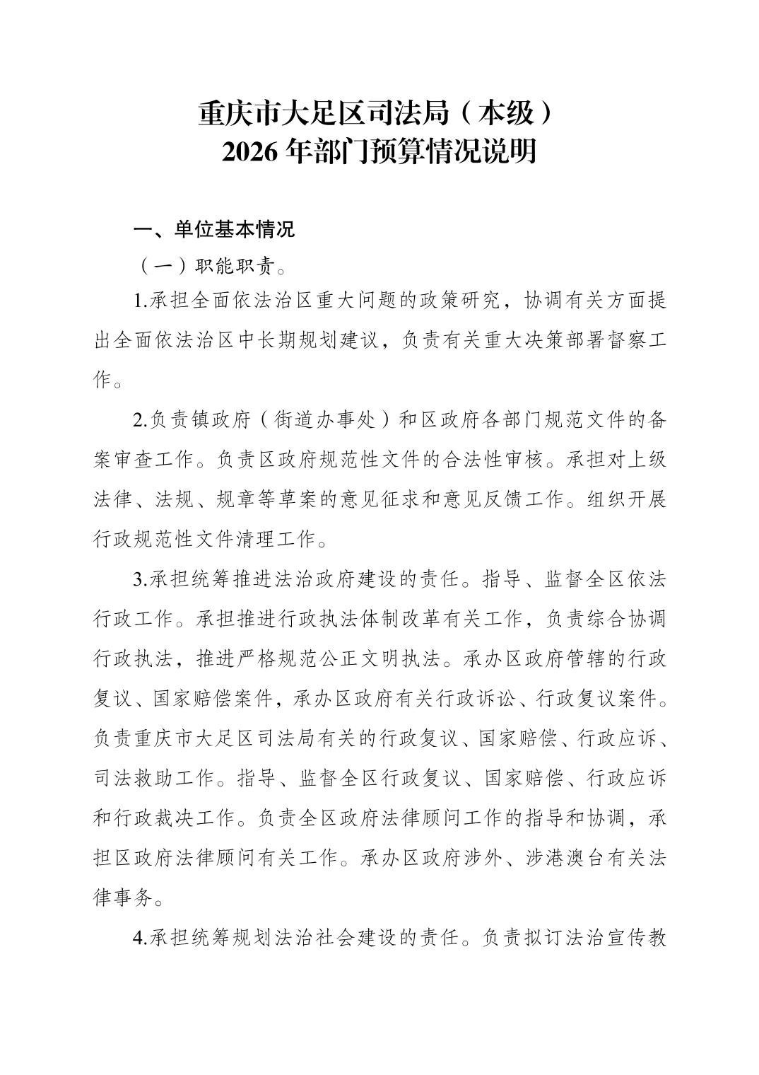 重庆市大足区司法局(本级) 2026年部门预算情况说明