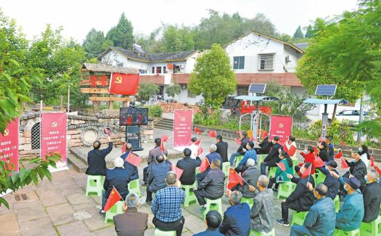 在大足区中敖镇观寺村,埂生基生态农业有限公司支部书记刁中学在田坎上带领着产业工人在手机上观看党的二十大直播盛况。刁中学说:“党的二十大报告中提出‘坚持农业农村优先发展’,为基层全面推进乡村振兴提供了遵循,坚定了信心。作为非公党支部书记,必须理清思路,找准抓手,把群众利益、人民幸福作为出发点和立足点,一项一项去落实,一点一滴去推进。立足镇情村情实际,既要抓住外部机遇,又要激发内生动力,聚焦产业转型、基层治理,积极谋划推进村企结对、村村融合的集体经济发展模式,坚定不移推进乡村振兴,坚持不懈提高人民群众的幸福感和获得感,努力蹚出一条具有观寺特色的乡村振兴新路子。”