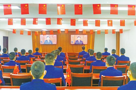 10月16日,大足区消防救援支队,官兵集中收看党的二十大直播盛况。