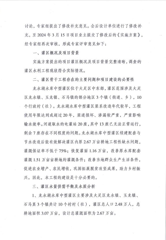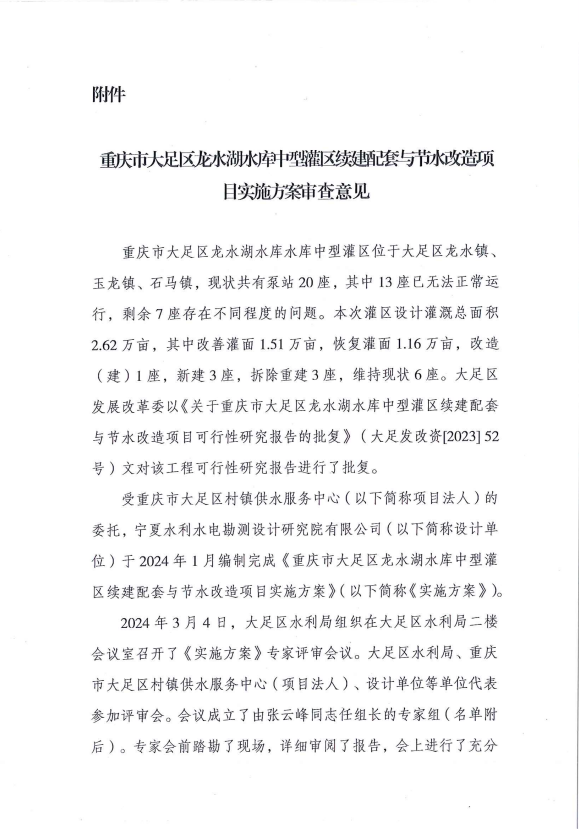 关于重庆市大足区龙水湖水库中型灌区
