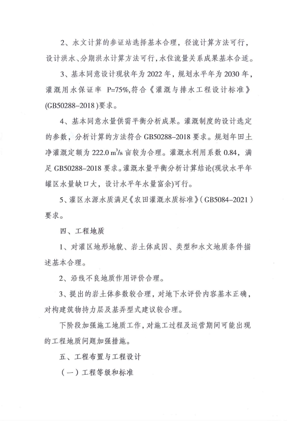 灌溉管道:灌溉管道级别为5级,设计洪水标准取10年一遇。