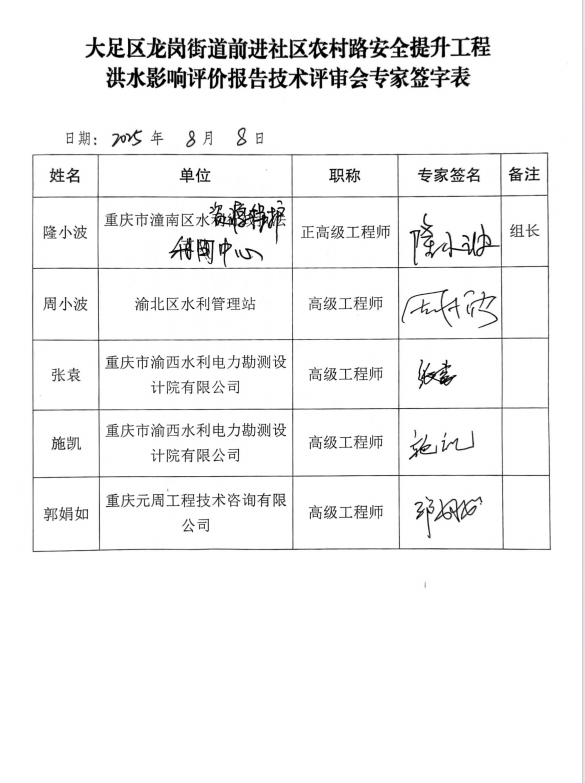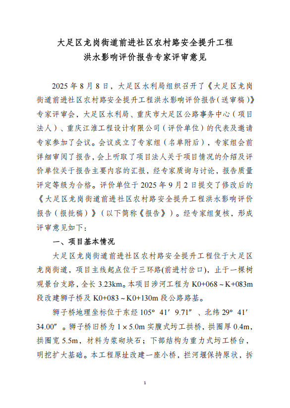 附件:1.大足区龙岗街道前进社区农村路安全提升工程洪水影响评价报告专家评审意见