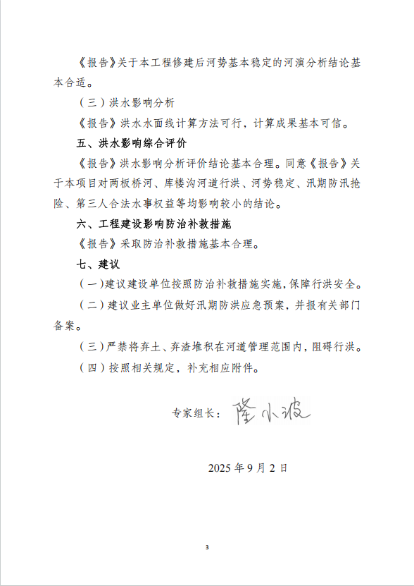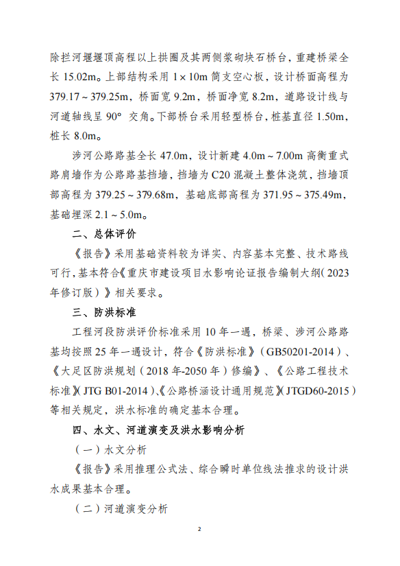 二、原则同意涉河建设方案的洪水影响评价结论