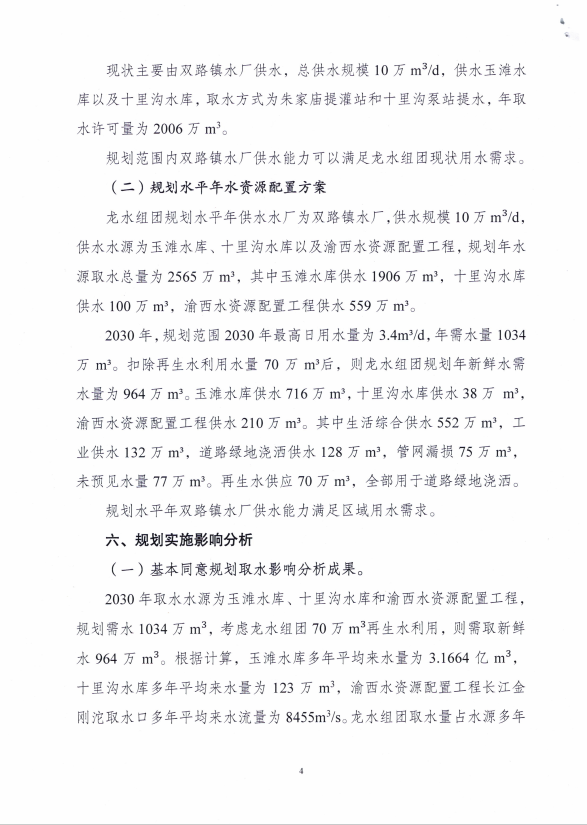 关于重庆大足高新技术产业开发区(龙水组团)规划水资源论证报告的批复